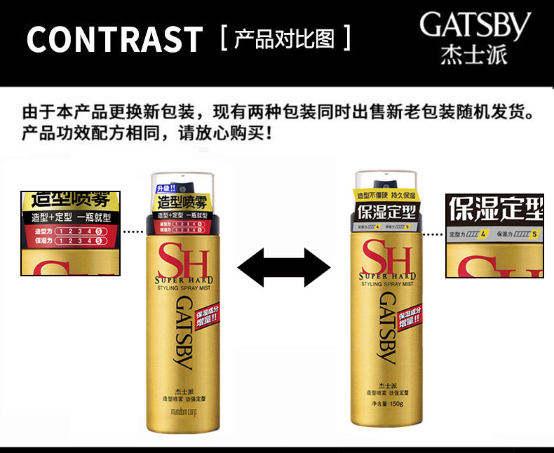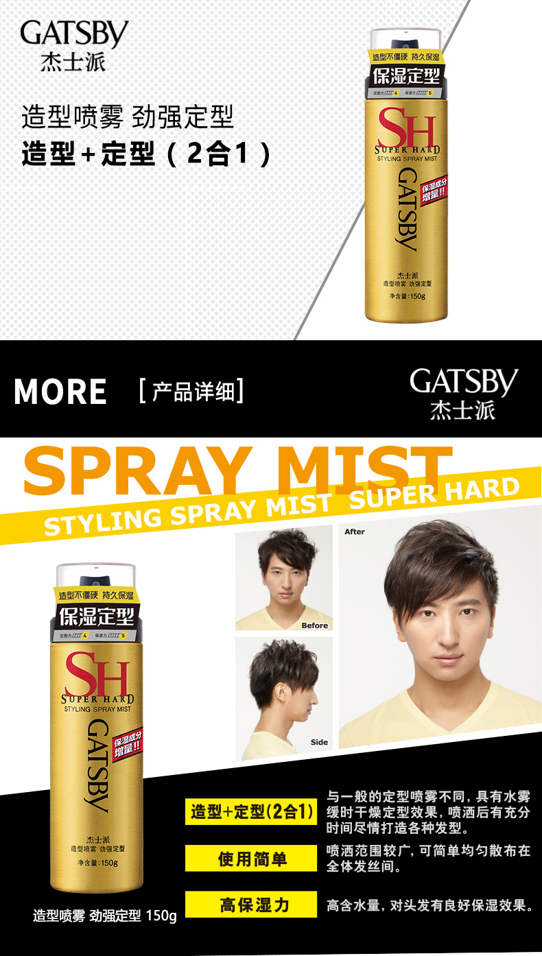杰士派造型喷雾劲强定型可配发蜡干胶发胶啫喱水男士蓬松持久保湿(新老包装随机)