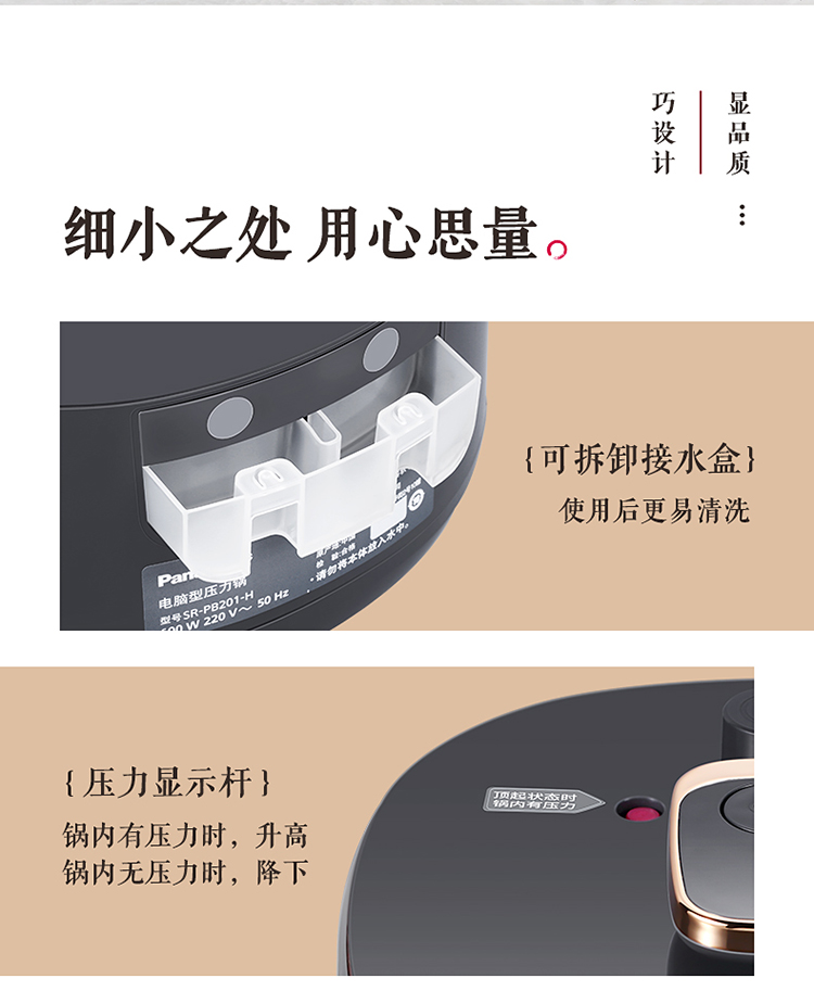 松下(Panasonic)2L电压力锅 迷你电压力锅 高压锅 电压锅 电饭锅 24小时预约 可拆洗内外盖 SR-PB201-H