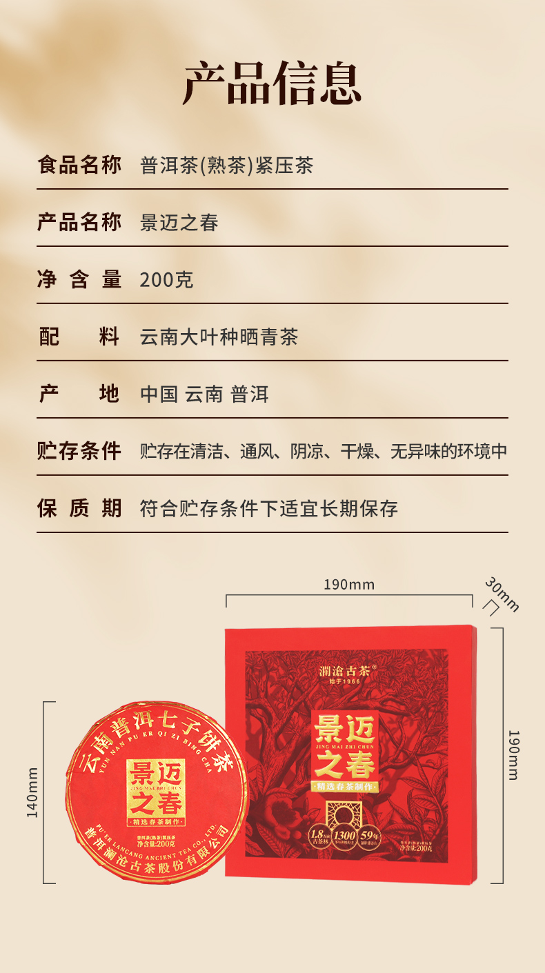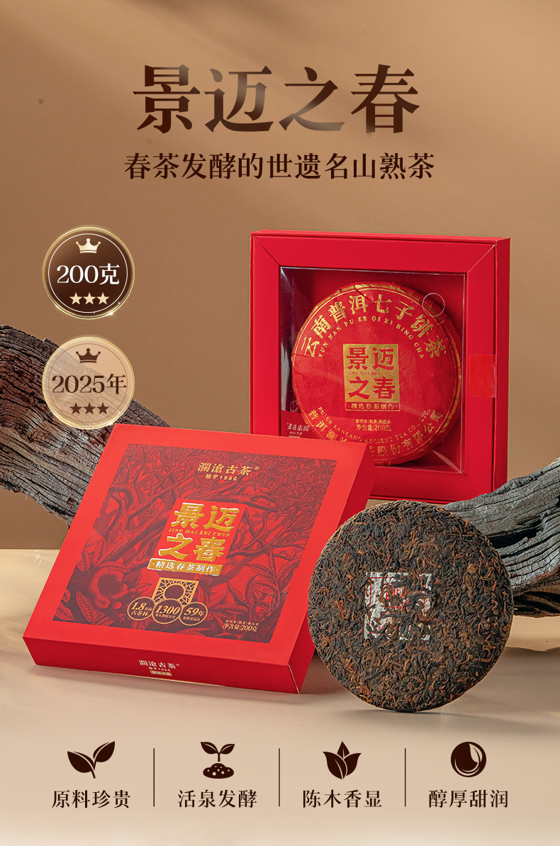 澜沧古茶2025年景迈之春云南普洱茶熟茶饼茶200g