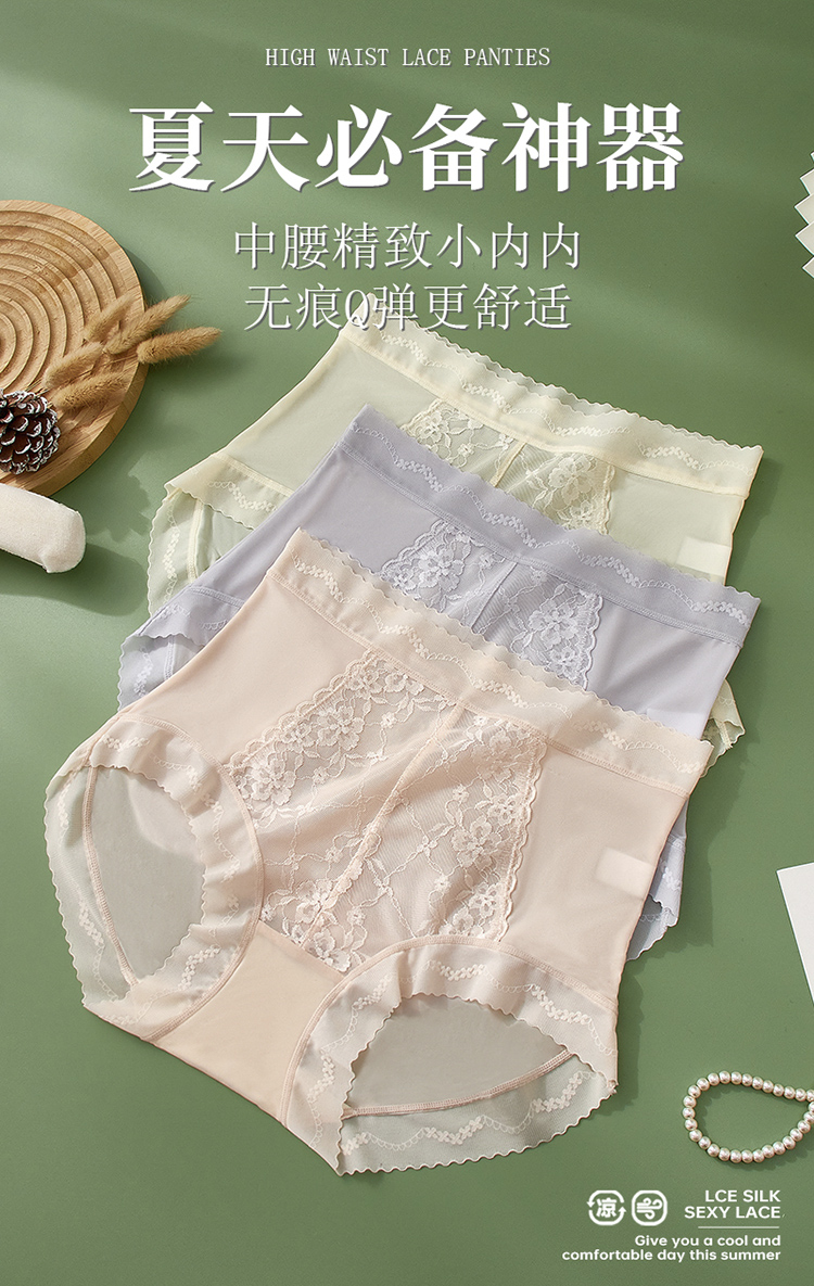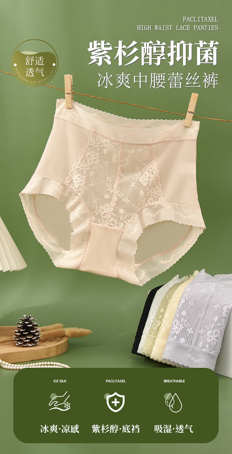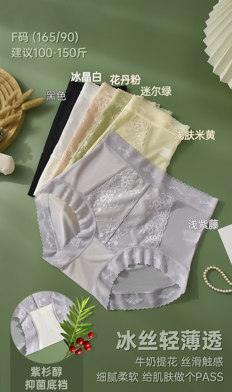 【99元3条,下单数量拍3!】皇家丽美7A级紫衫醇抑菌内裤冰丝轻薄中腰蕾丝裤无痕Q弹更舒适底裤DKM1390