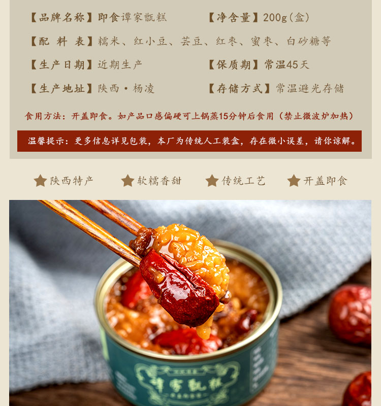 西安甑糕200g即食红枣甄糕点糯米小吃网红零食多口味罐装