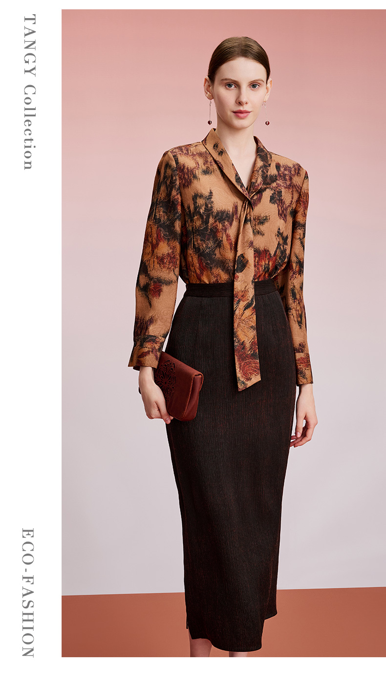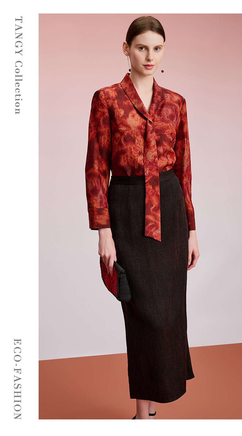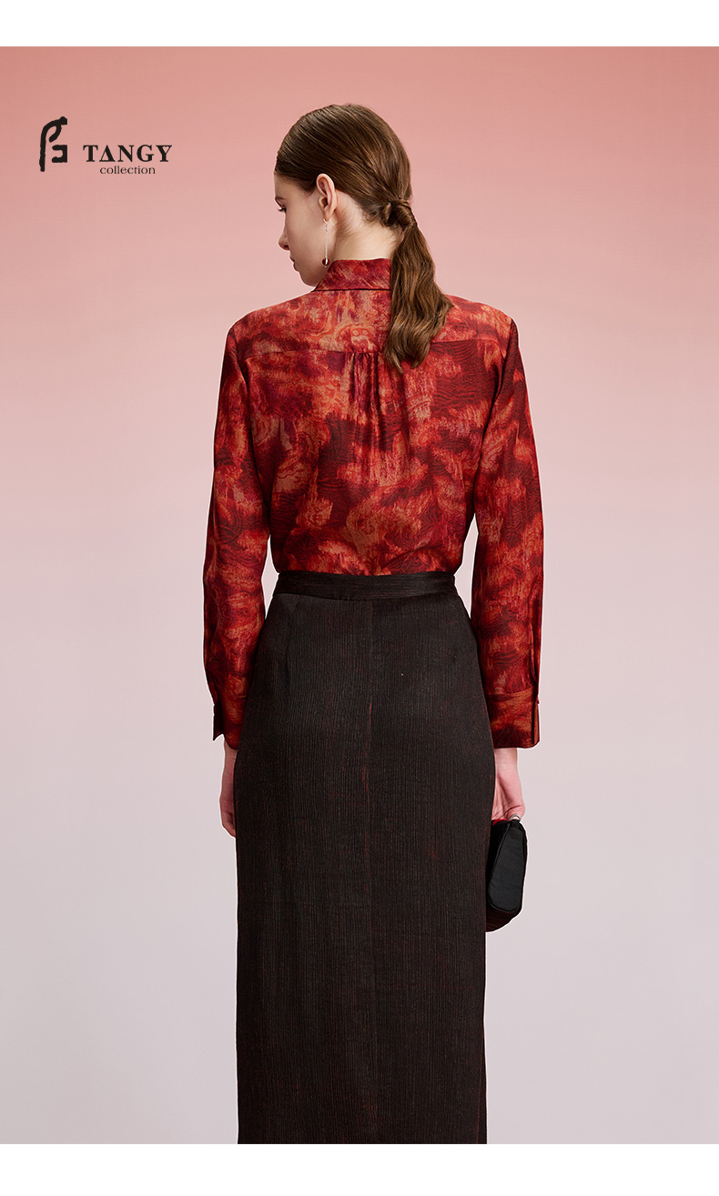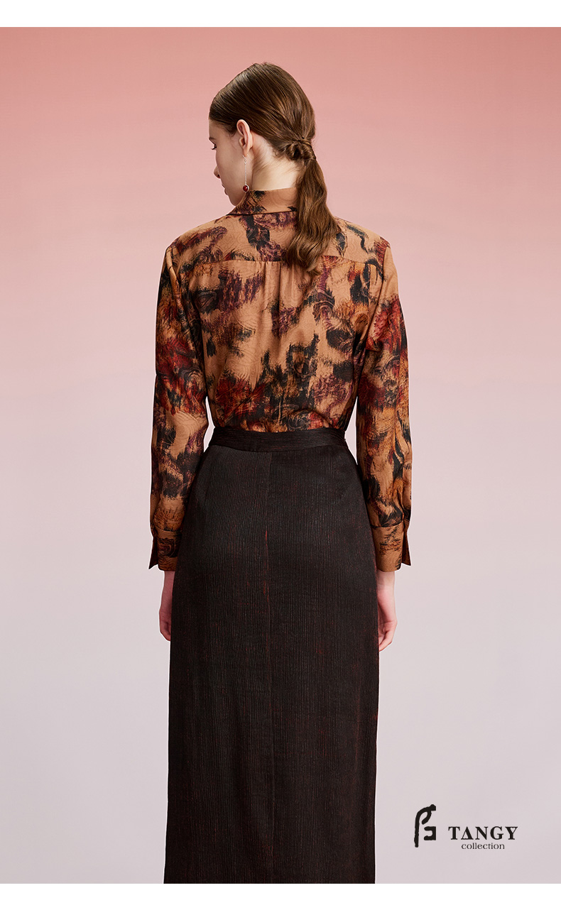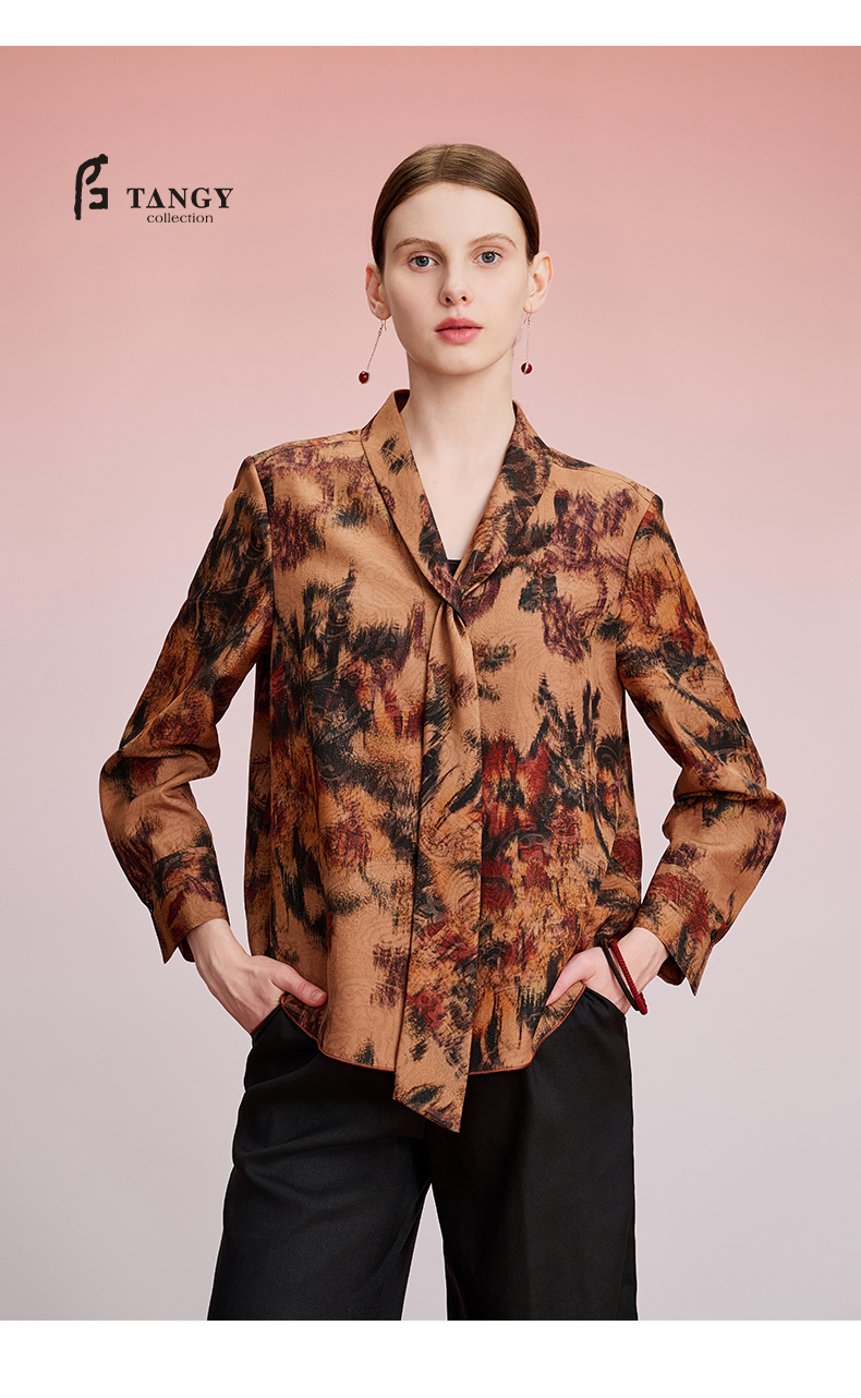 TANGY Collection/天意精品2024秋季新品中国风印花女士衬衣