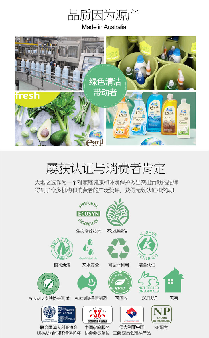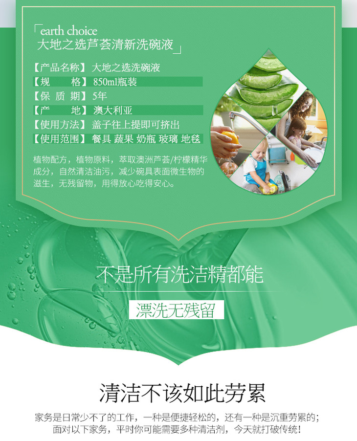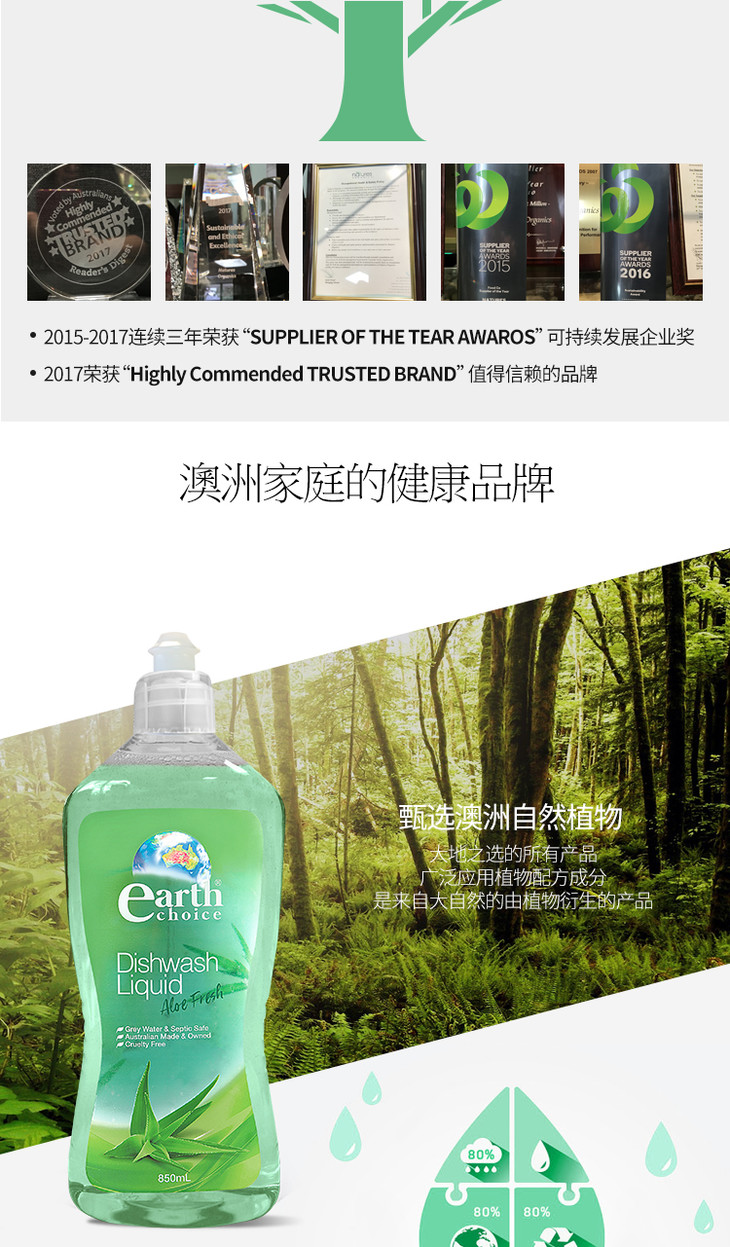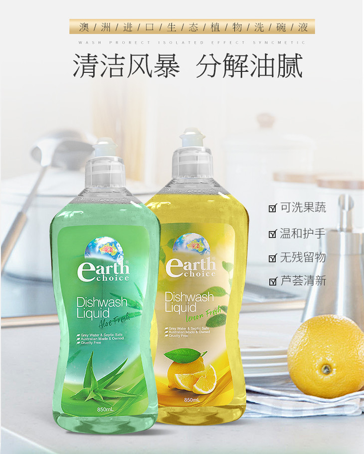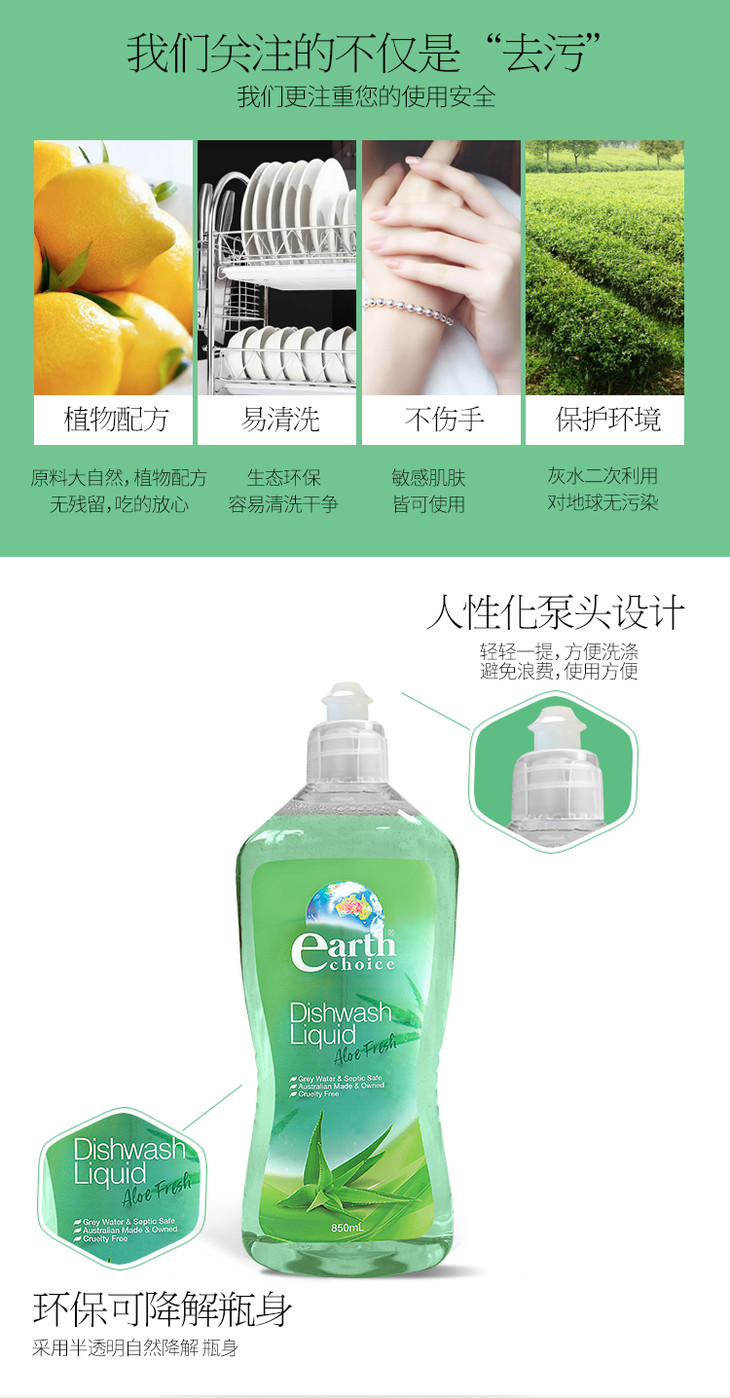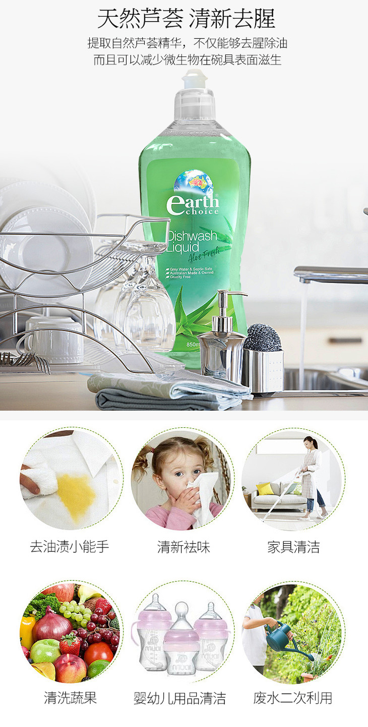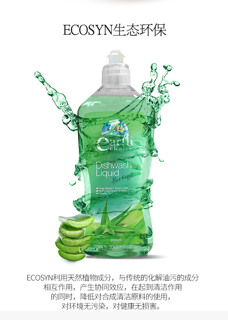 【洗碗液去腥利器】来自澳洲原装进口大地之选(earthchoice)芦荟洗碗液850ml