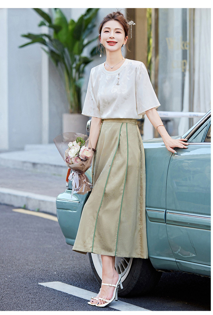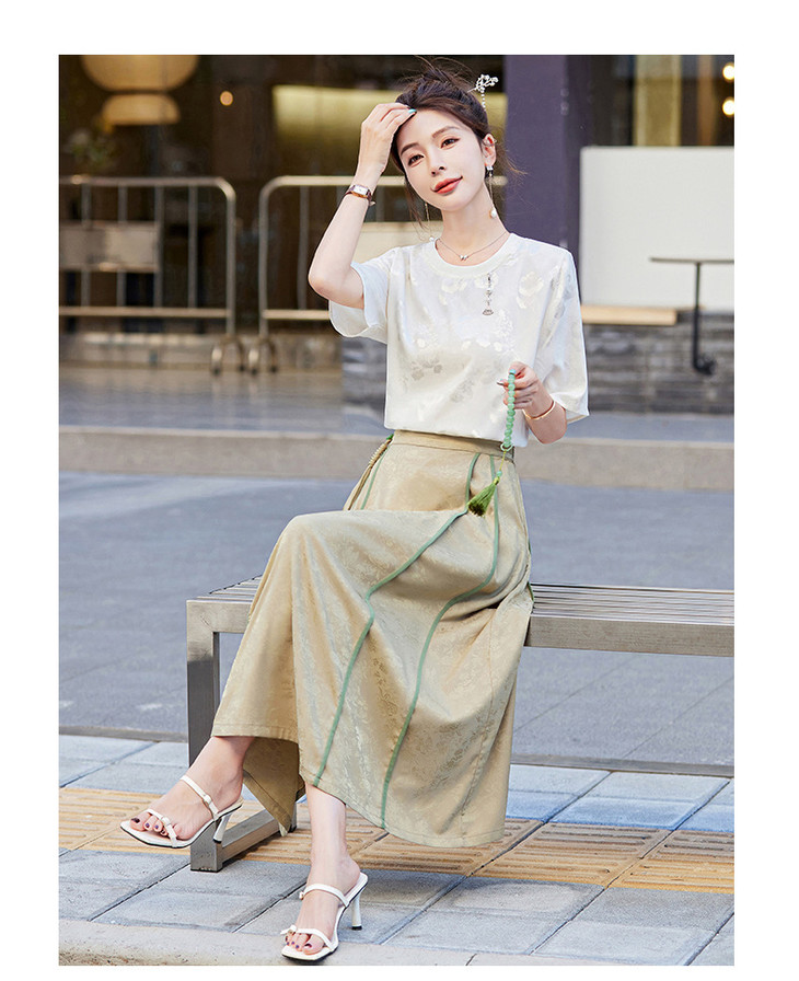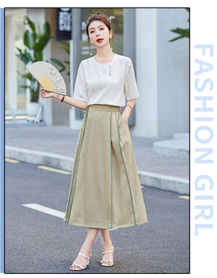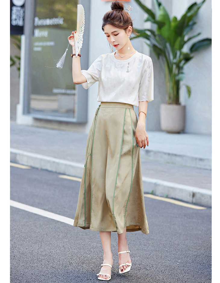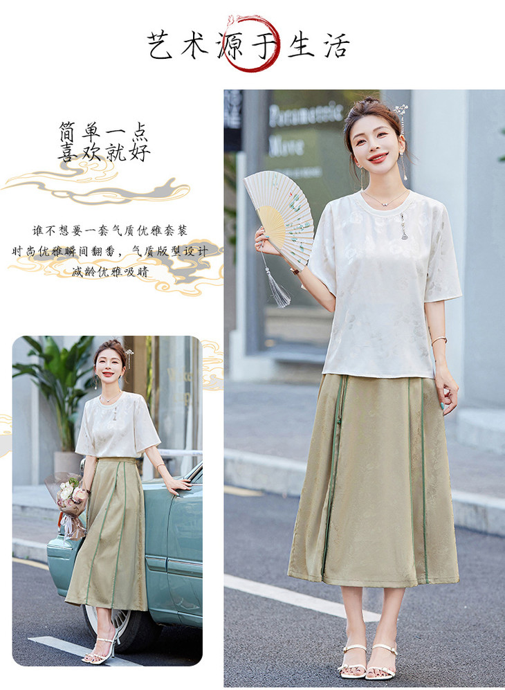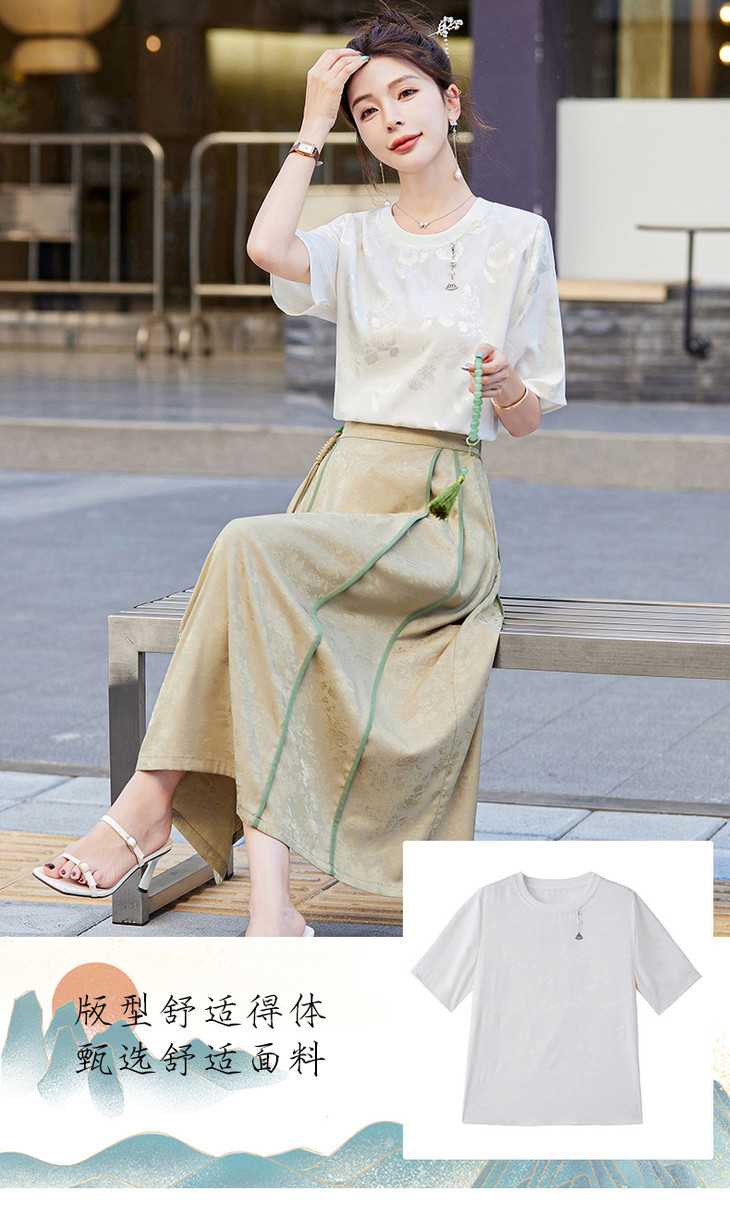 2024夏季国风马面裙套装盘扣两件套T恤上衣新中式两件套XYSPL66