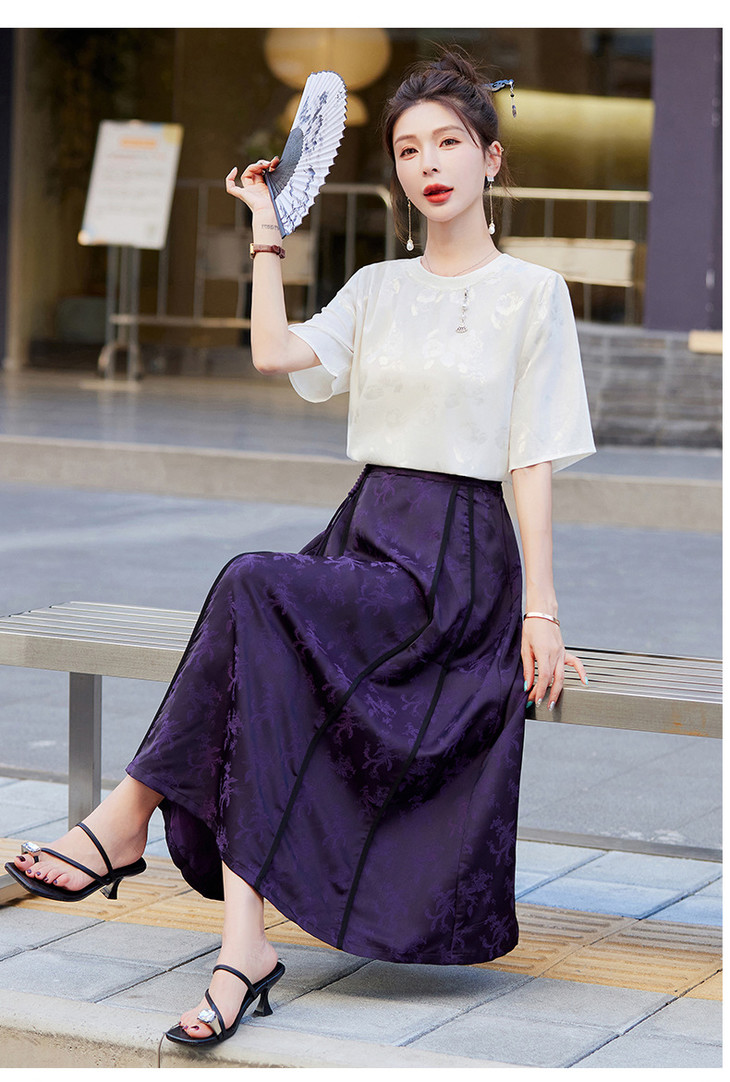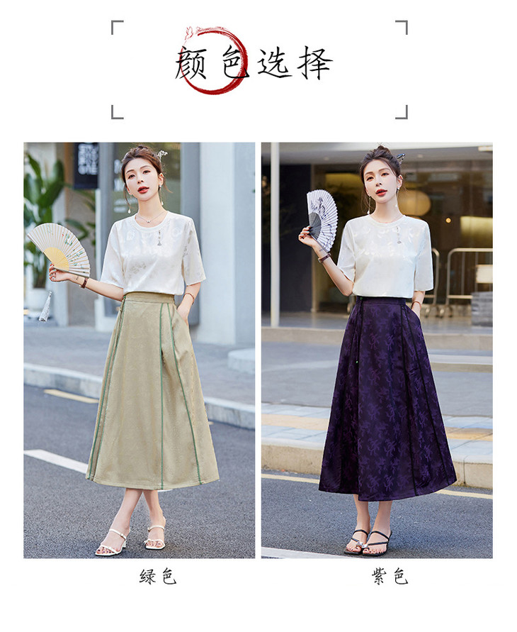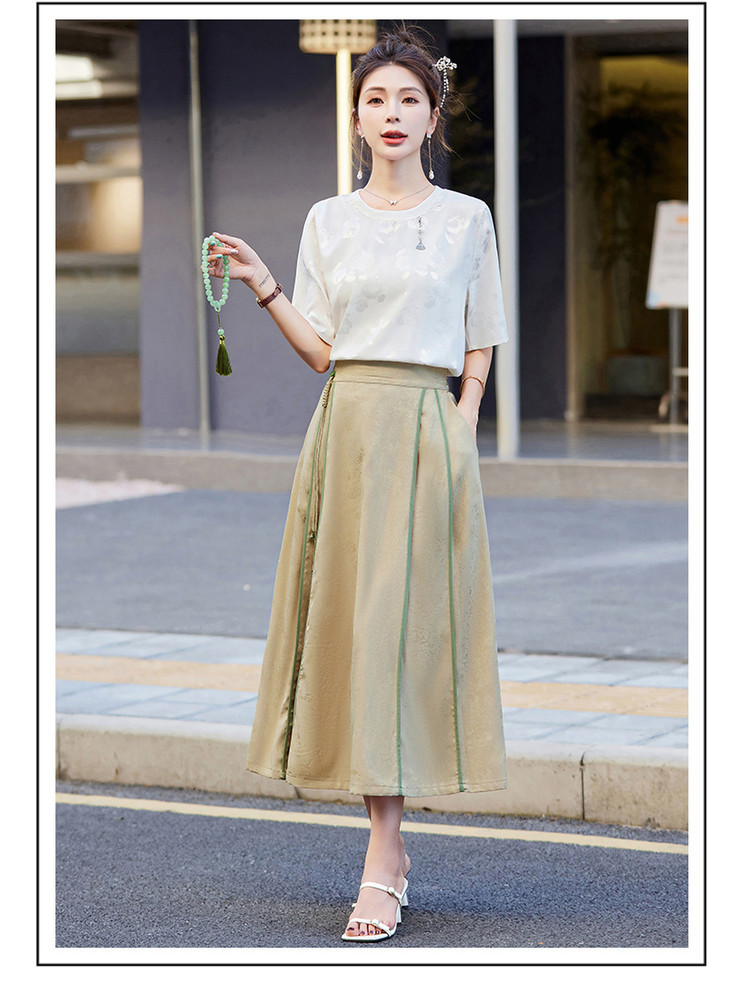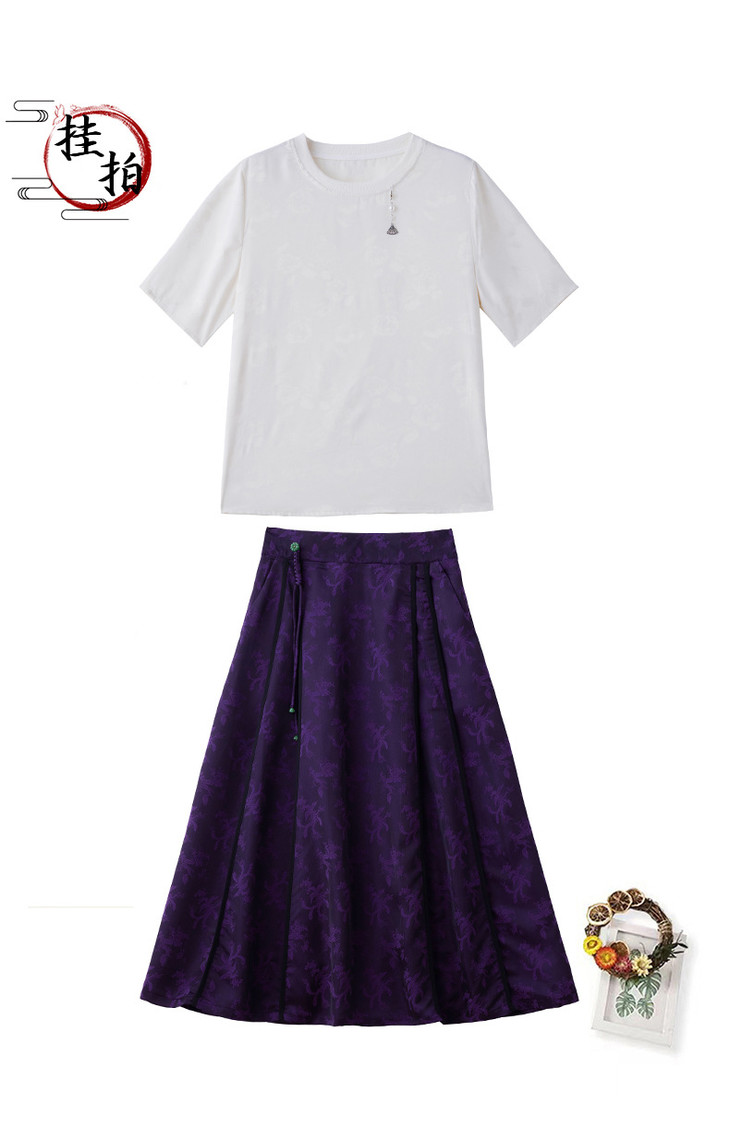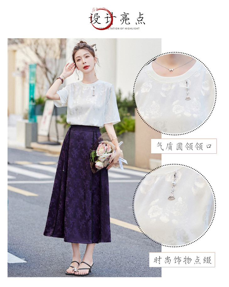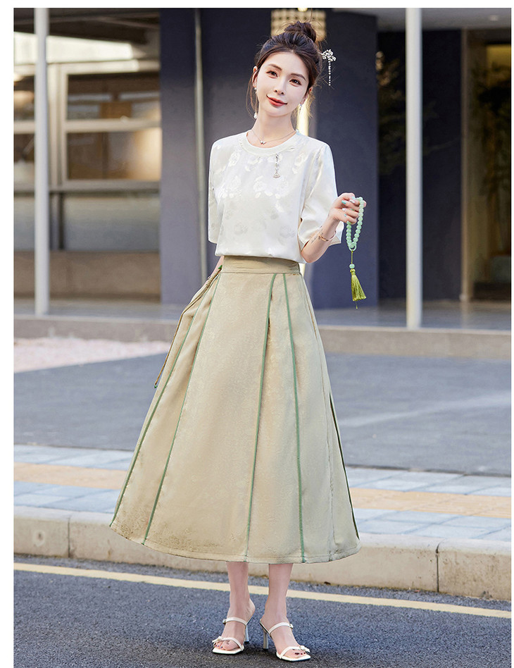 2024夏季国风马面裙套装盘扣两件套T恤上衣新中式两件套XYSPL66