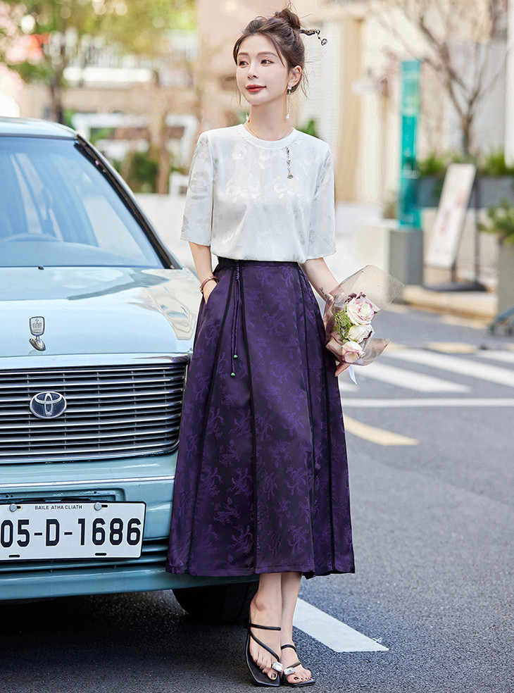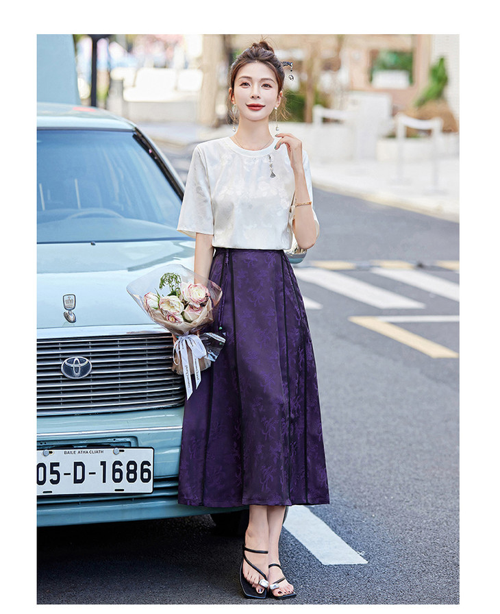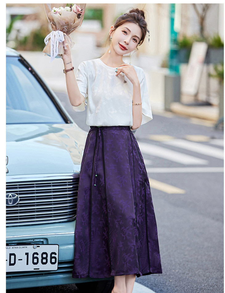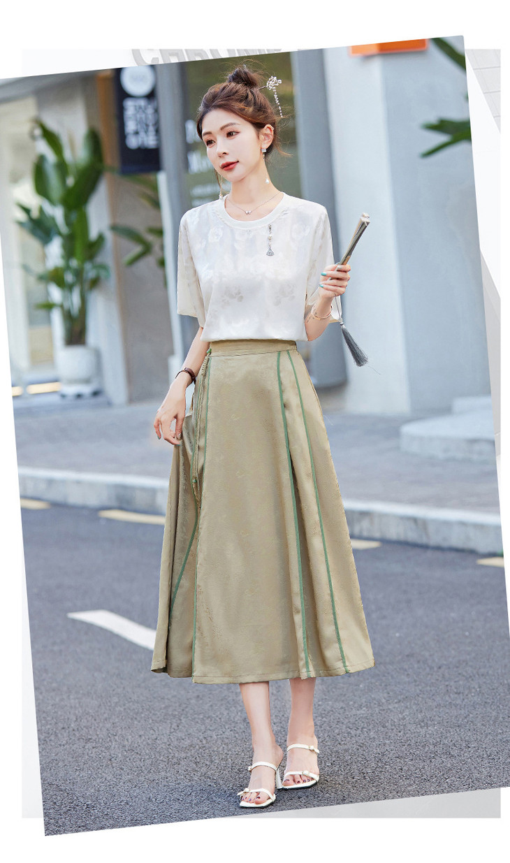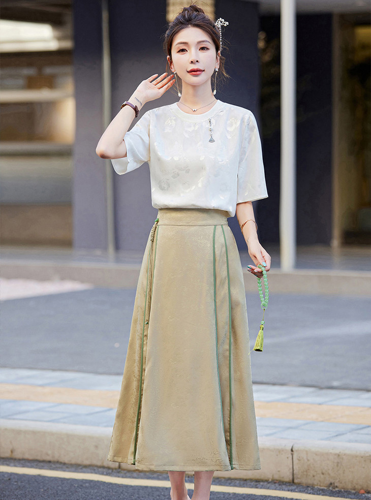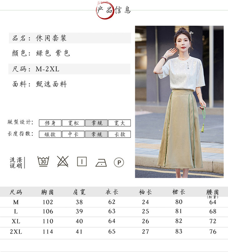 2024夏季国风马面裙套装盘扣两件套T恤上衣新中式两件套XYSPL66