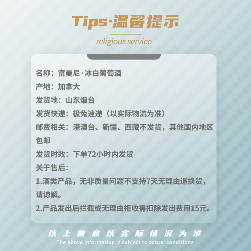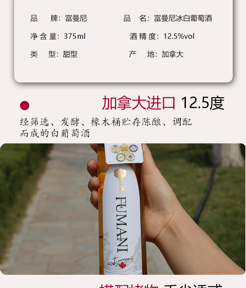 【加拿大进口】富曼尼·冰白葡萄酒 357ml/瓶