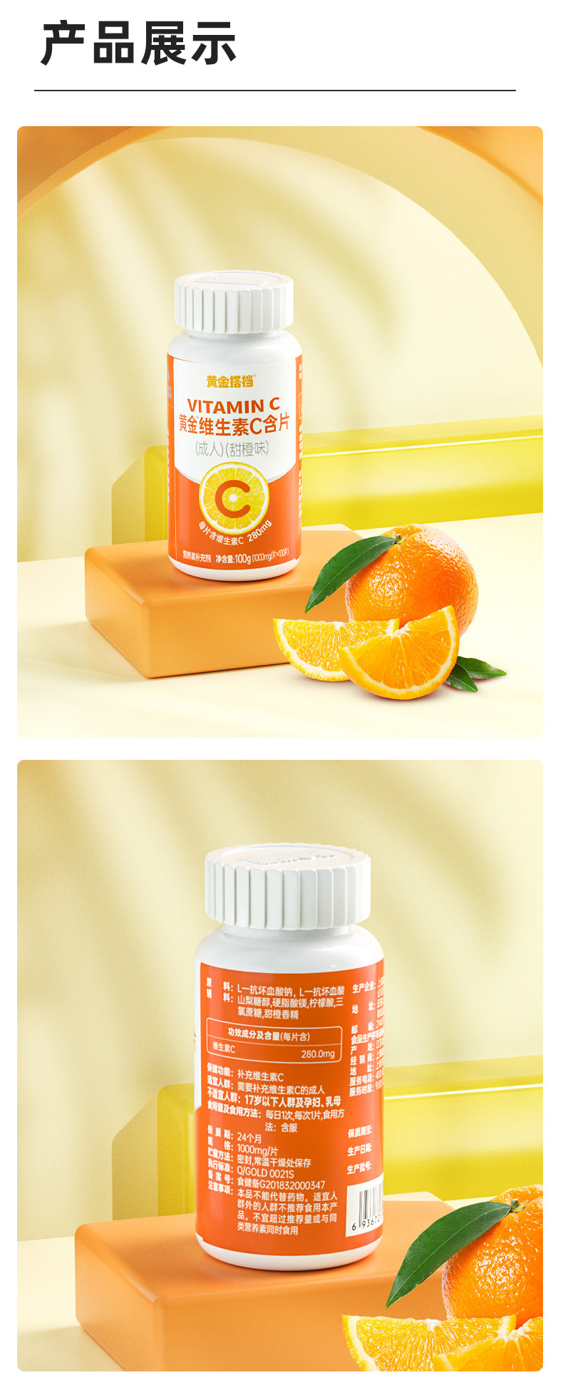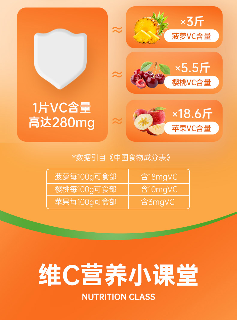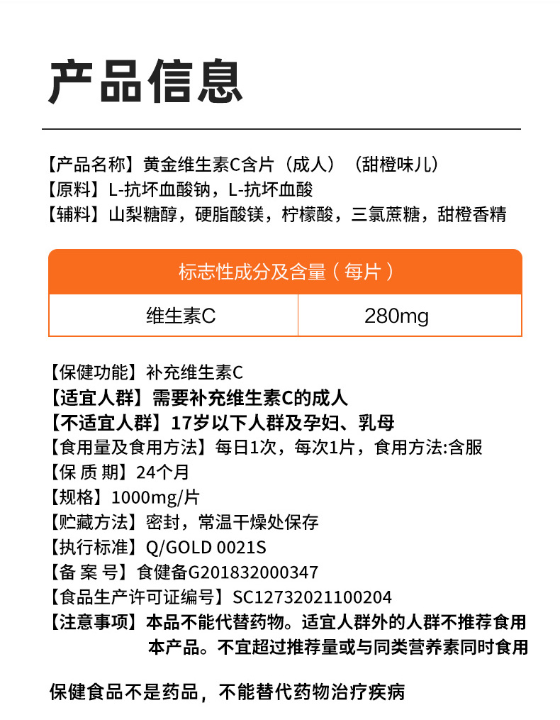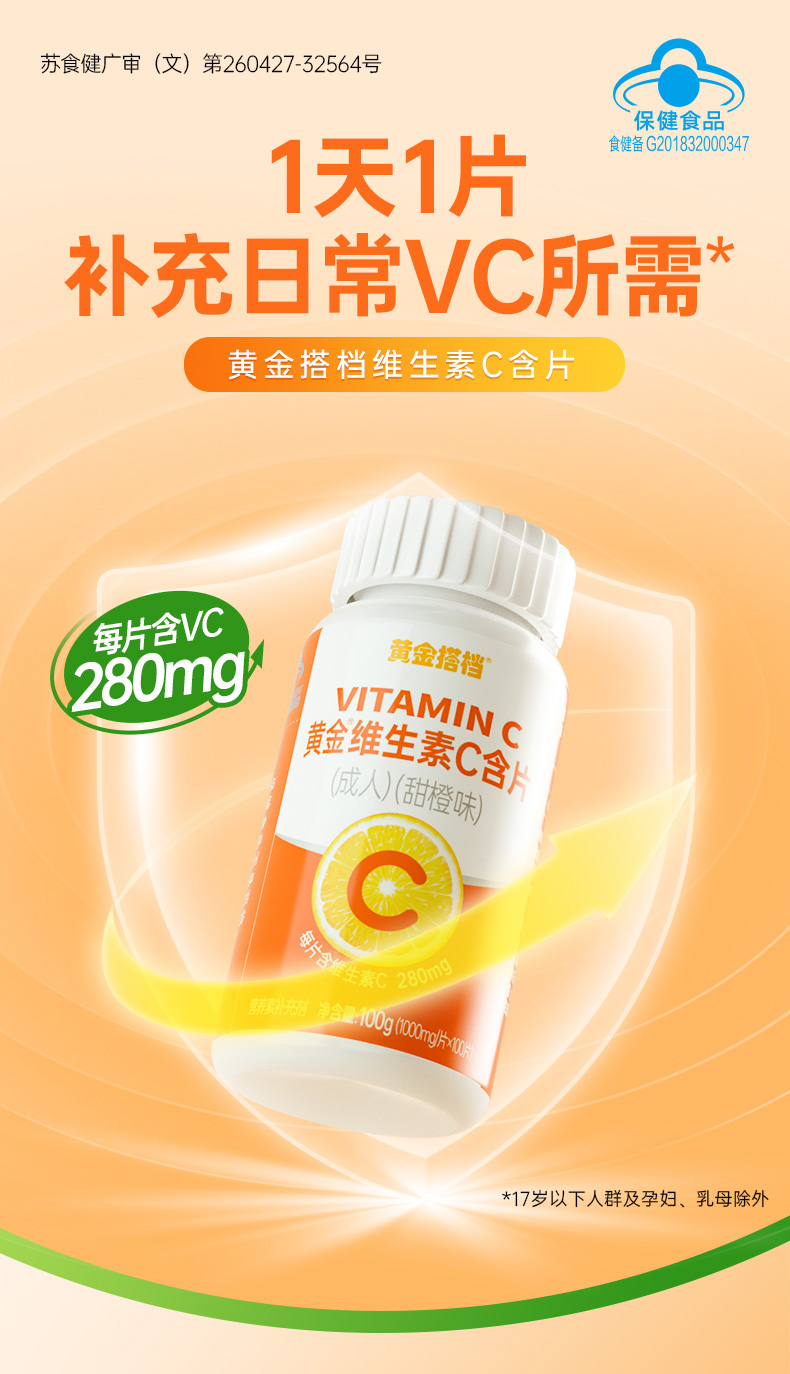 【拍1发3】黄金搭档维生素C维C咀嚼片维他命C成人VC