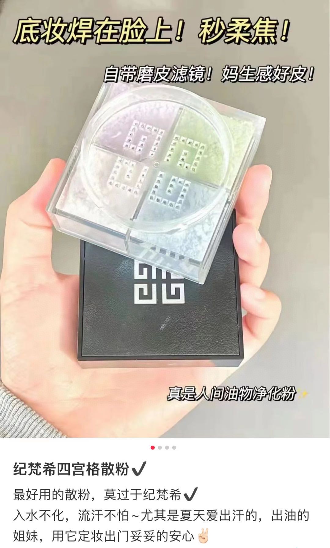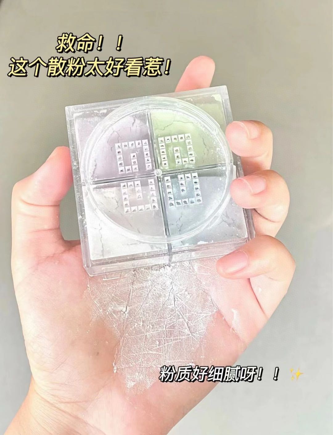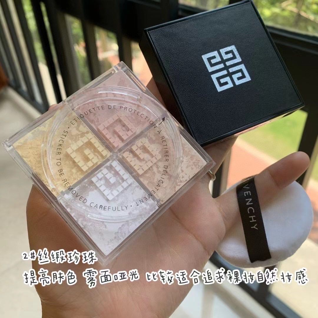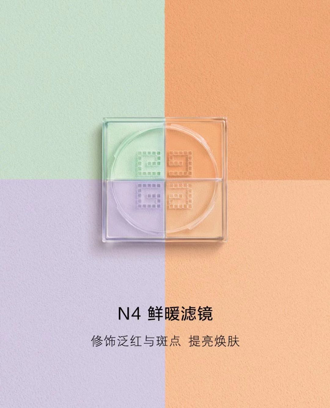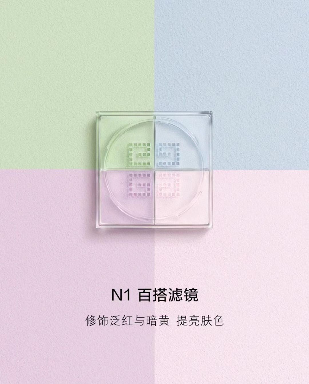 它是绿色十蓝色十紫色+白色。白色提亮,紫色提升气色,蓝色绿色修正肤色,偏白跟黄皮的肤色都非常适用!有了它还怕什么脱妆脸上的油一滴不剩都被它吸走了!纪纪梵希散粉可以算得上散粉界的扛把子了!粉质细腻丝滑压在脸上立刻哑光感觉脸蛋毛茸茸的~滑滑的摸着好酥服呀~而且1号色是无闪的,适合喜欢哑光丝绒感的妹子哦~
