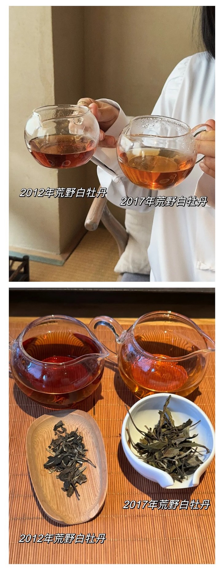我其实也挑选了15年的老白茶和同样是12年但是不是荒山野茶的老白茶,就算是同一年不同地方的老白茶口感也是完全不一样的,那两款喝着会有点紧涩的感觉,没有12和17年荒野的这两款好。