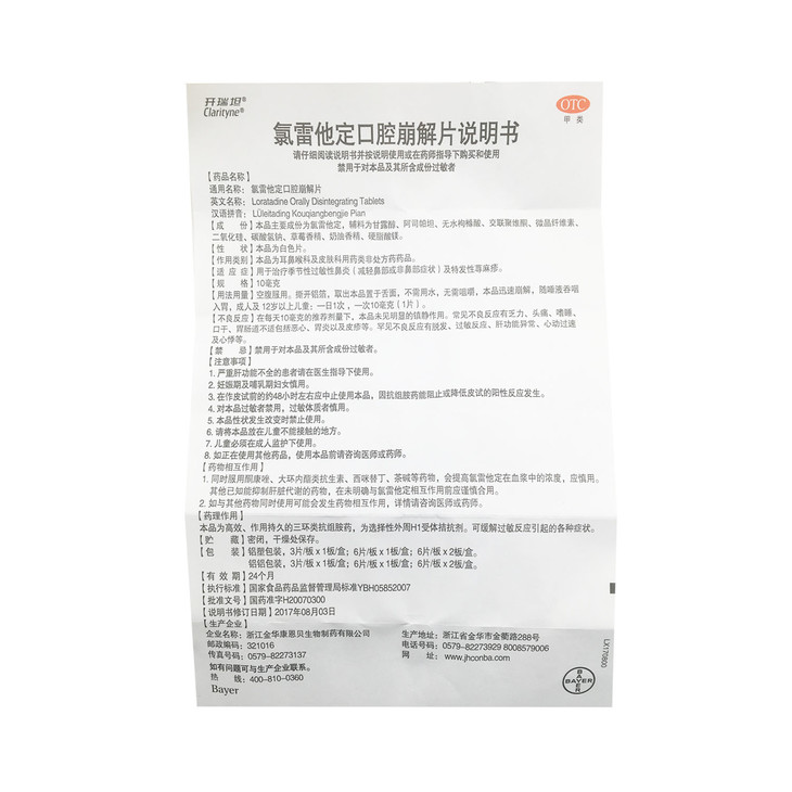 氯雷他定口腔崩解片 10mg*12片 康恩贝