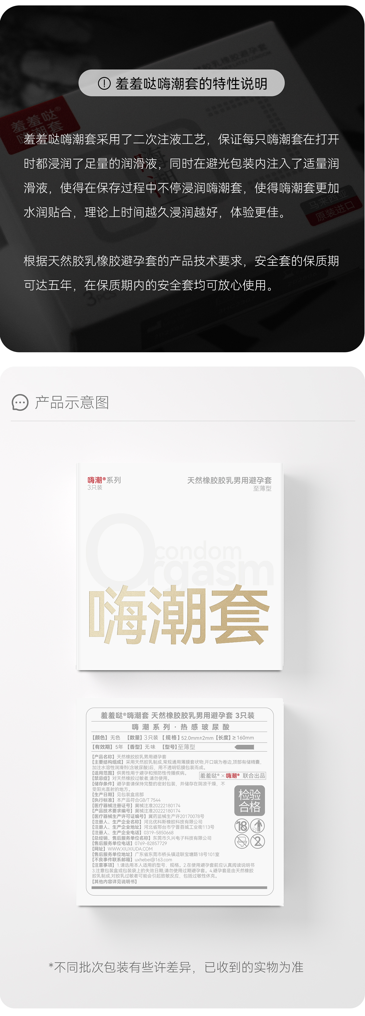 羞羞哒嗨潮套安全套避孕套超薄快感型玻尿酸不油腻夫妻情趣计生情趣用品