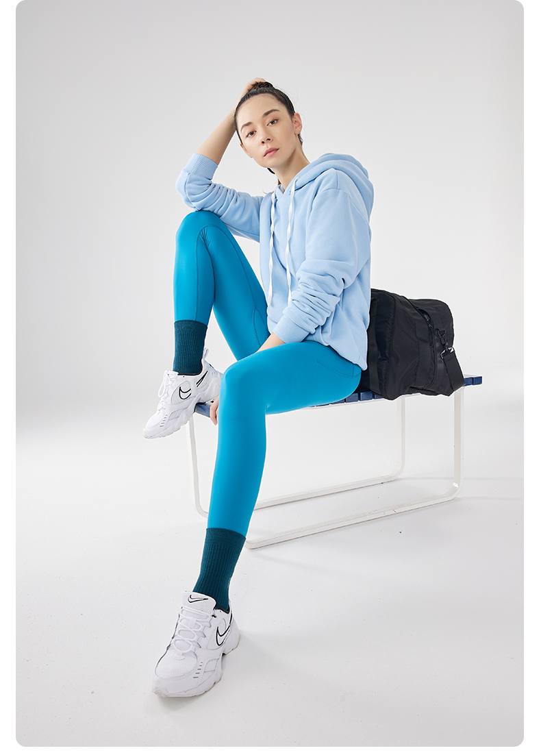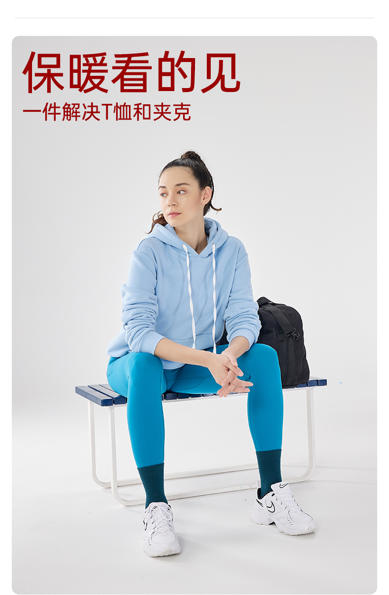 IYOGA珍珠绒长袖卫衣绒感保暖宽松遮肉显瘦落肩设计显窄肩罗纹下摆收腰T052+KS-003