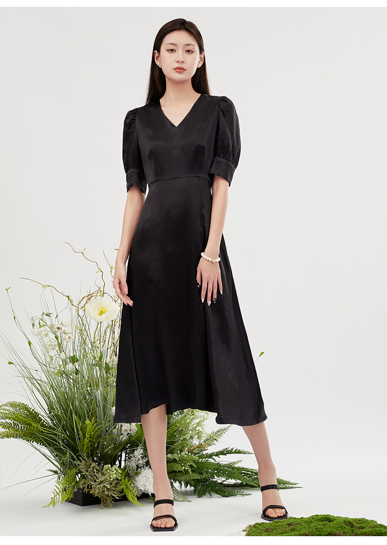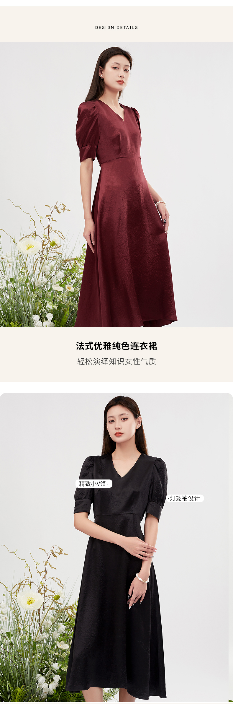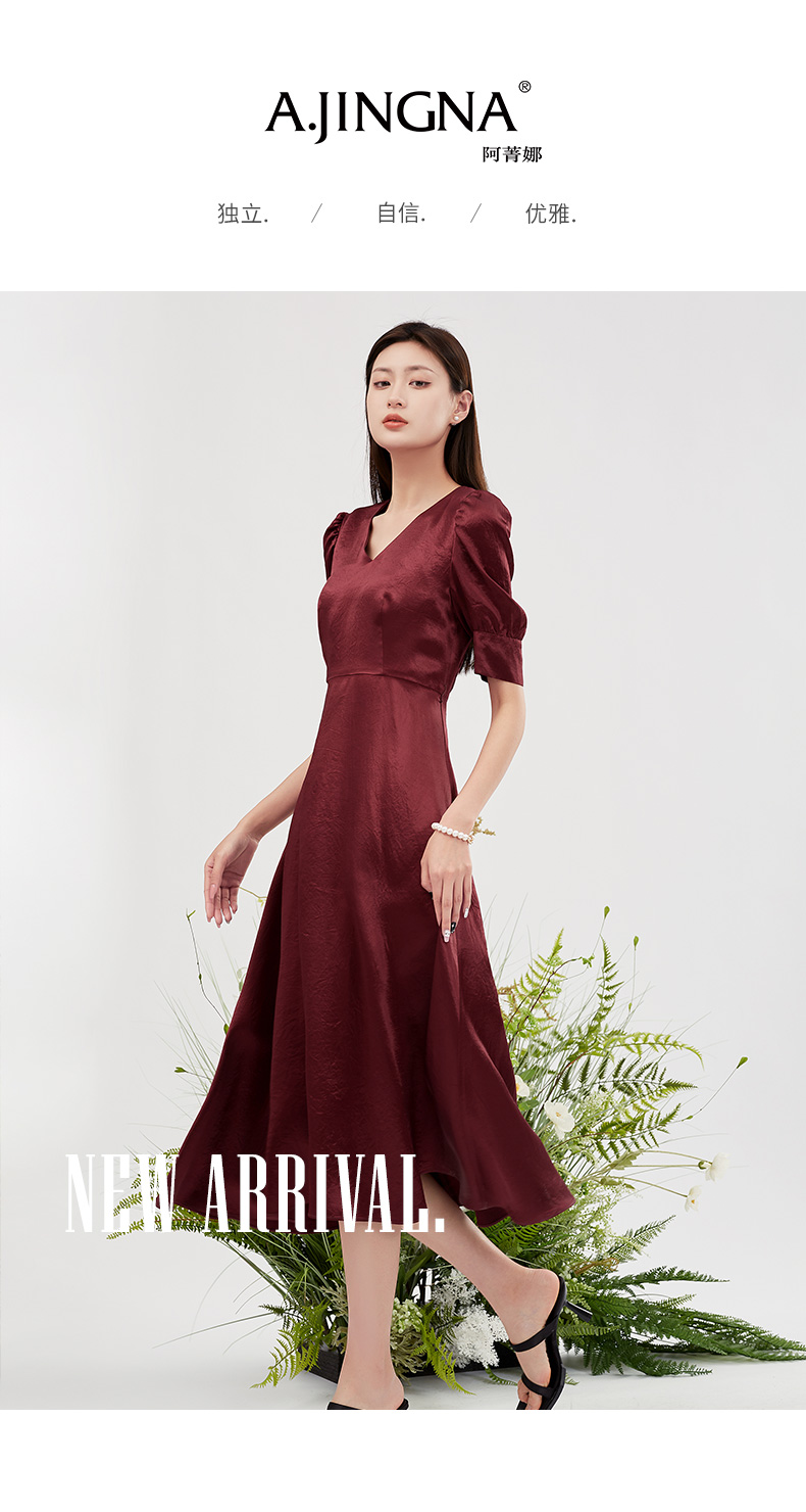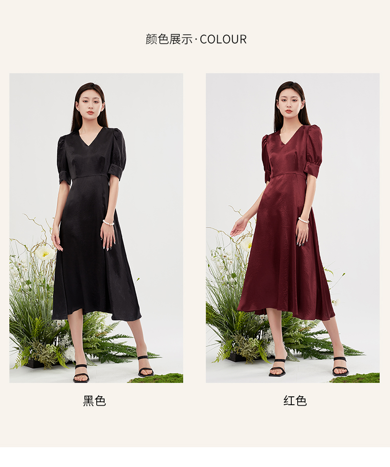 【商场同款】阿菁娜复古气质夏季泡泡袖连衣裙A30X112086