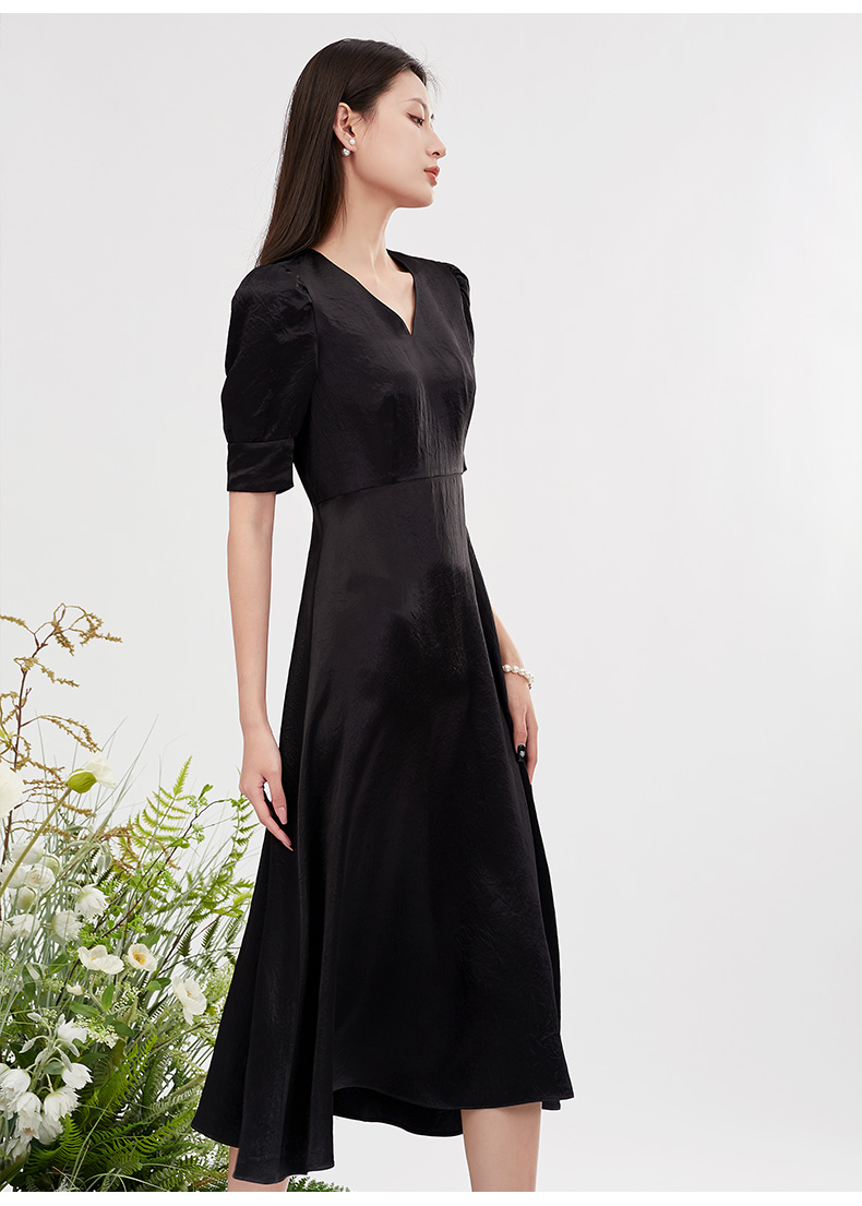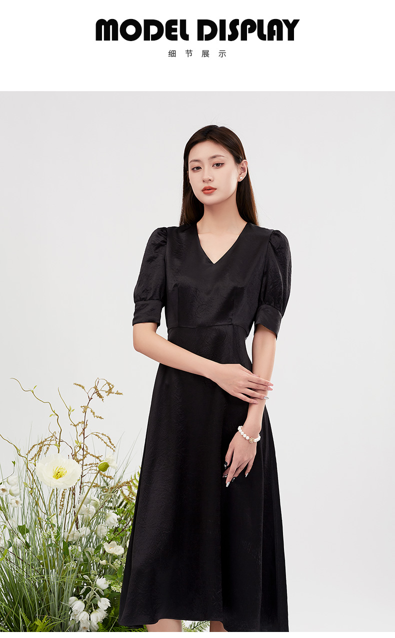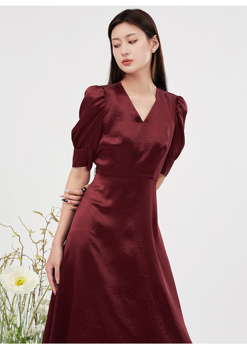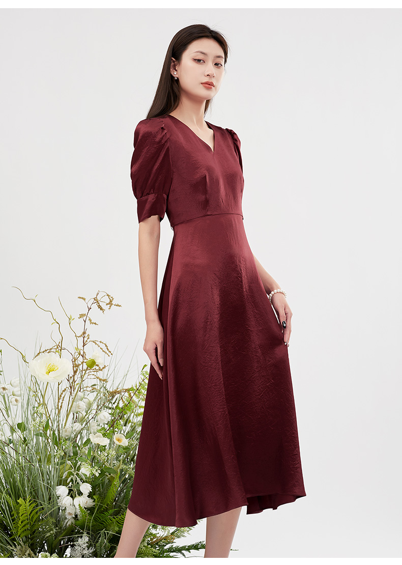 【商场同款】阿菁娜复古气质夏季泡泡袖连衣裙A30X112086