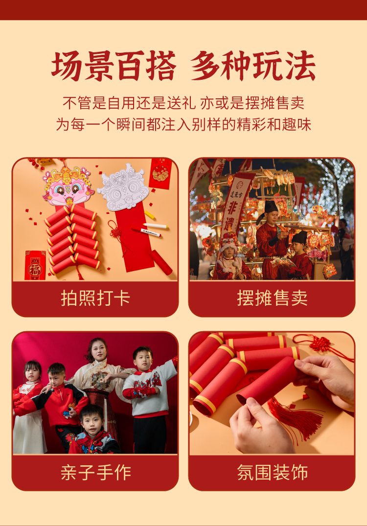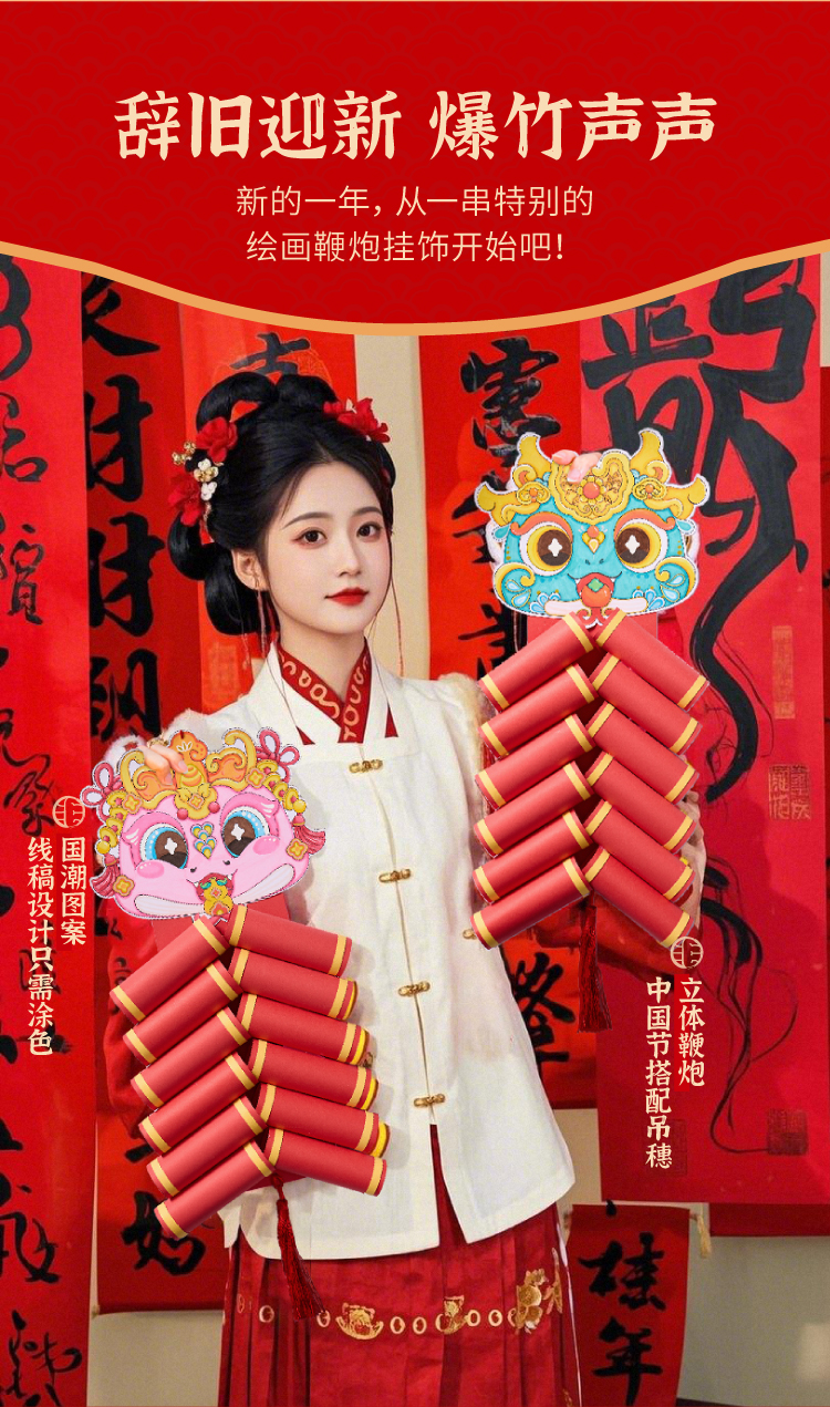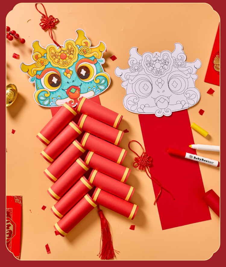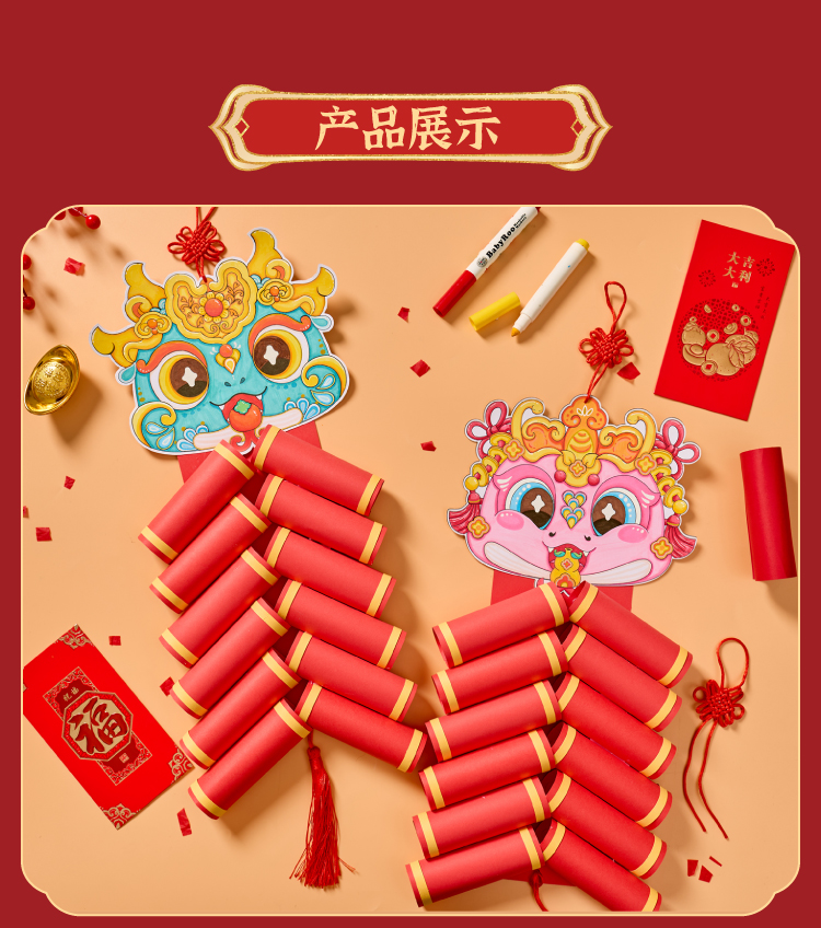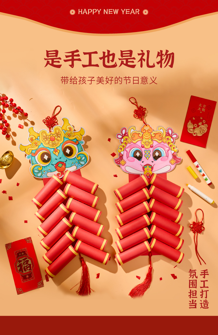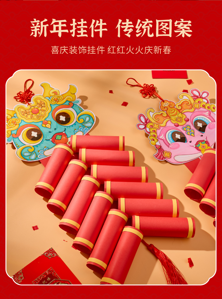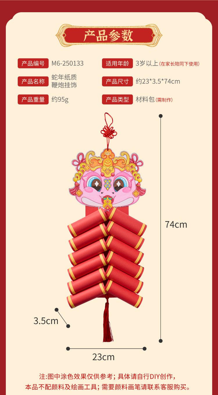 新年春节元旦蛇年纸质鞭炮挂饰手工diy创意美术儿童材料包幼儿园