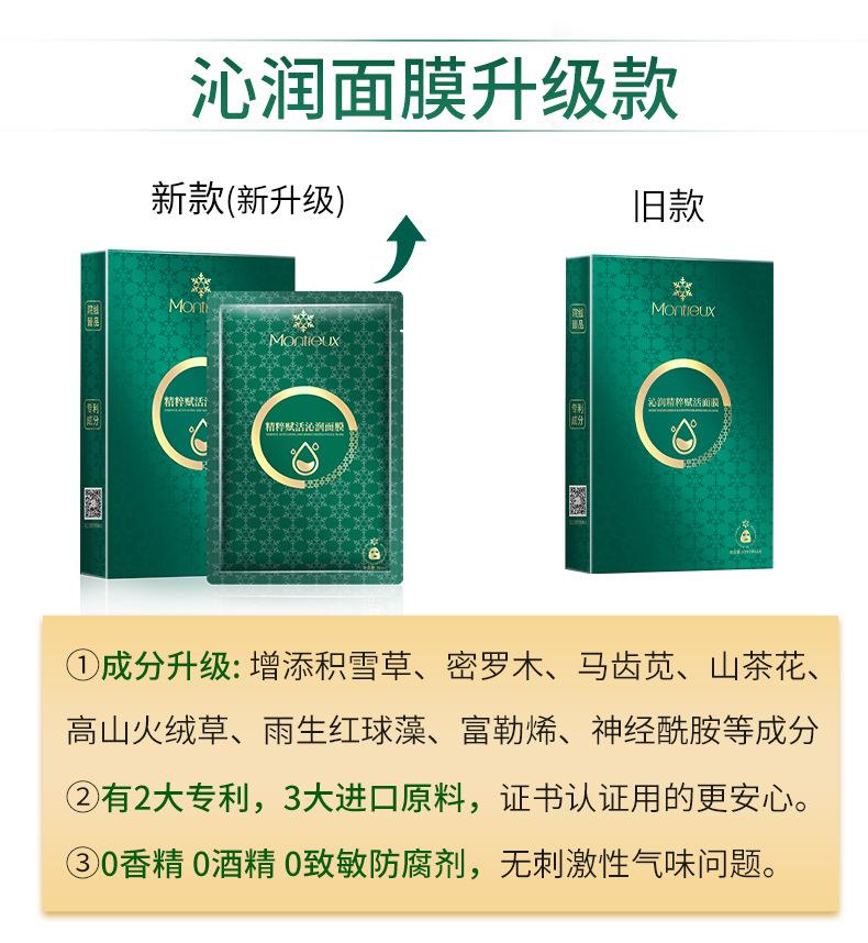 蒙投丽雪专利补水保湿面膜 海藻玻尿酸舒缓贴片面膜 护肤品