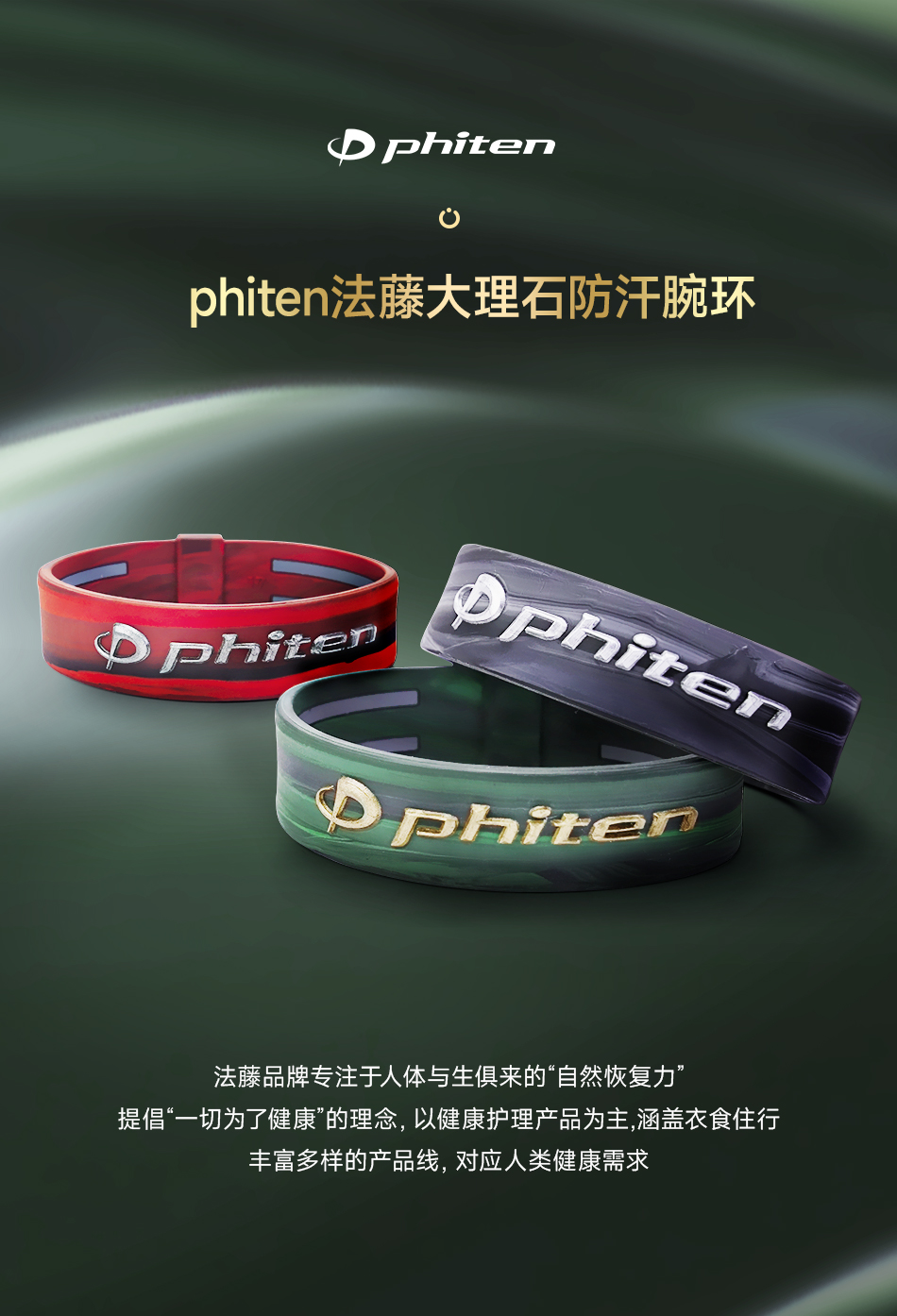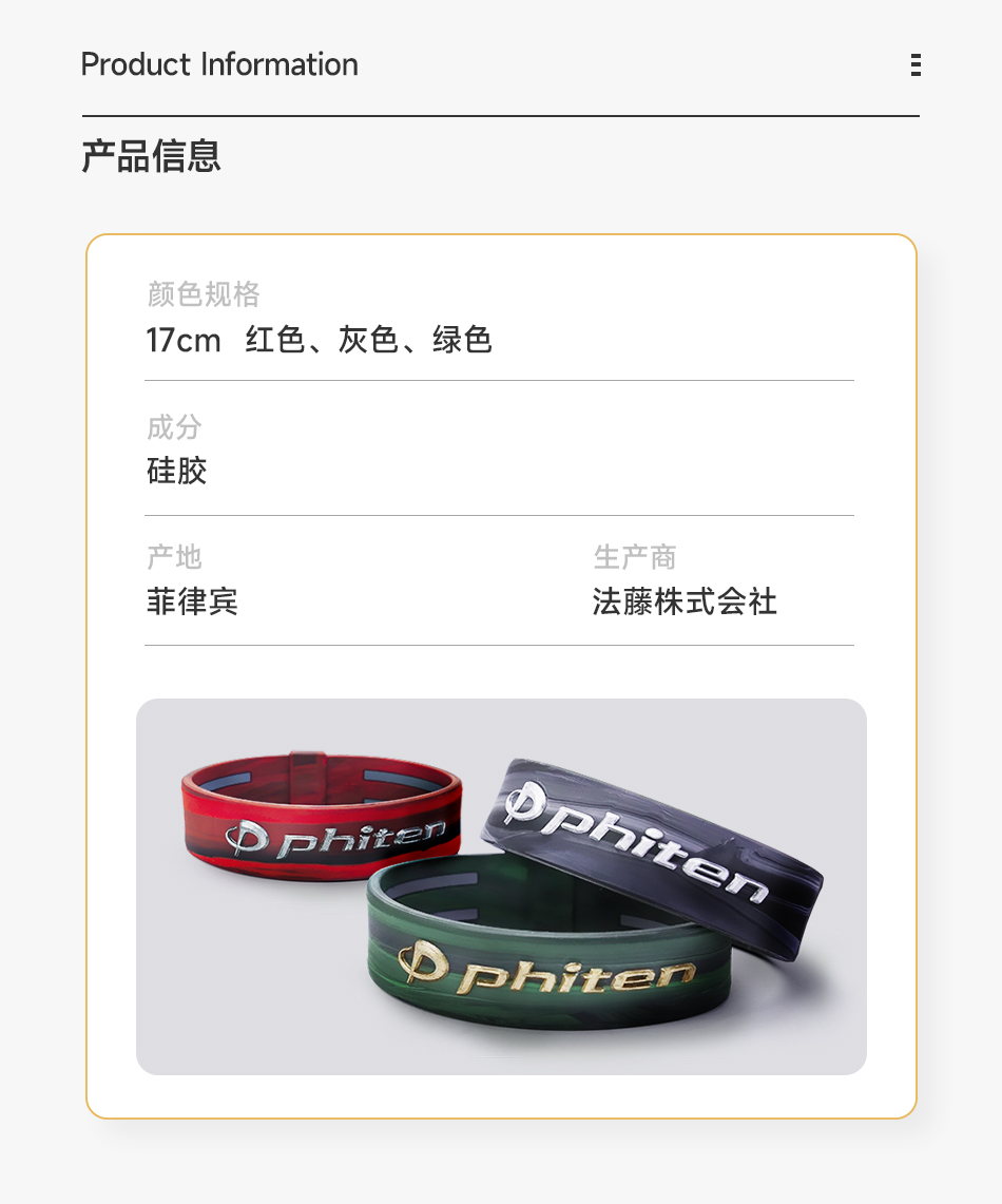 ⁶捡漏【日本】Phiten法藤 RAKUWA大理石水溶金技术手环 17cm 红、灰、绿三色可选 SS06-QTT-FT