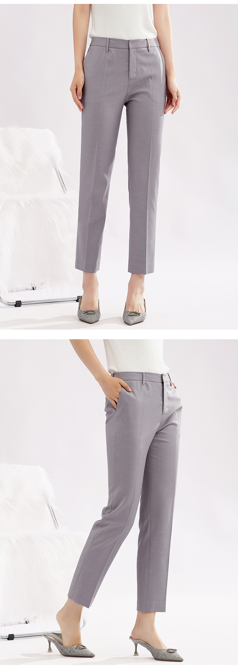 【商场同款】阿菁娜春夏莫兰迪色轻盈透气垂坠感休闲风西装裤A26C110009