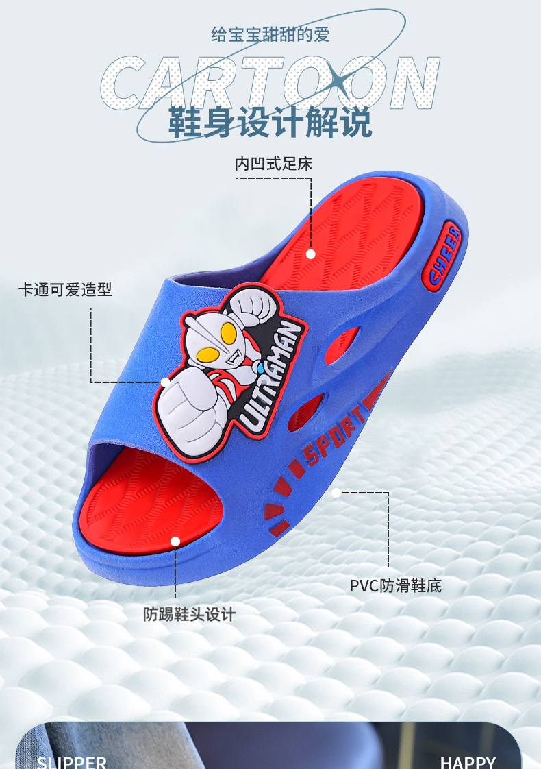 奥特曼儿童凉拖鞋亲子男女新款夏季卡通软底防滑居家洗澡浴室户外