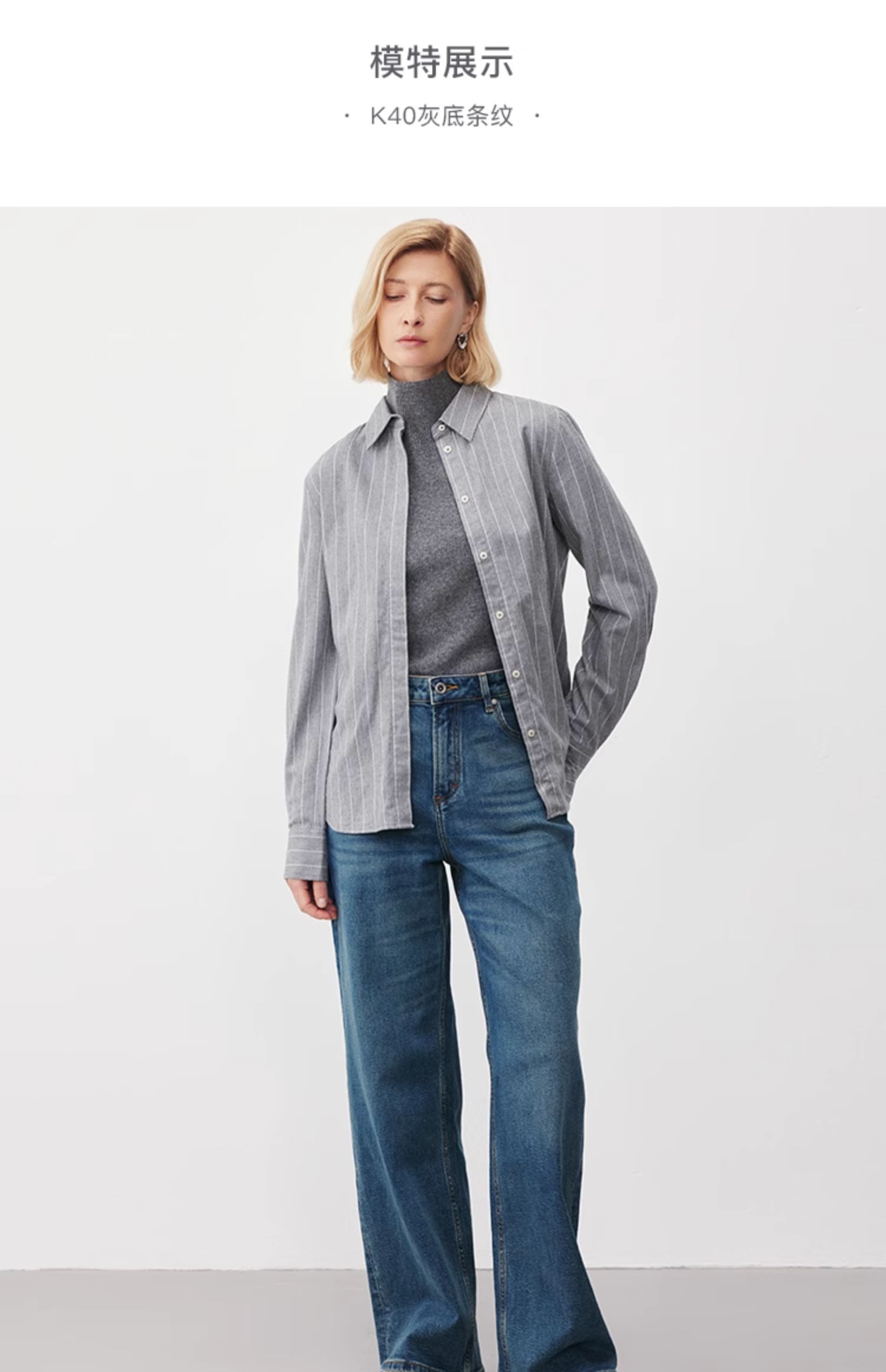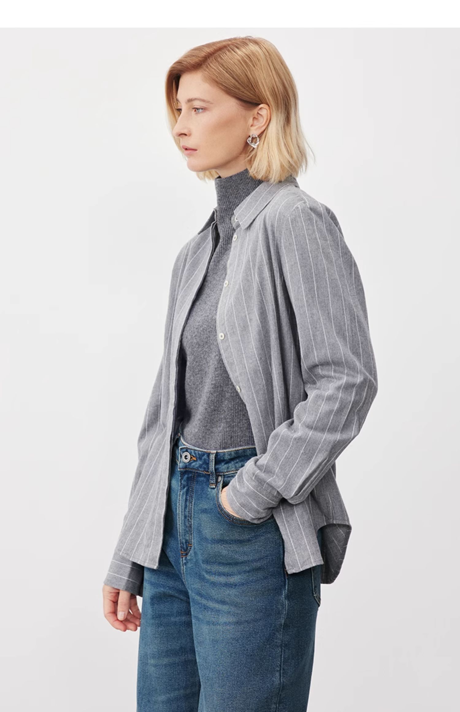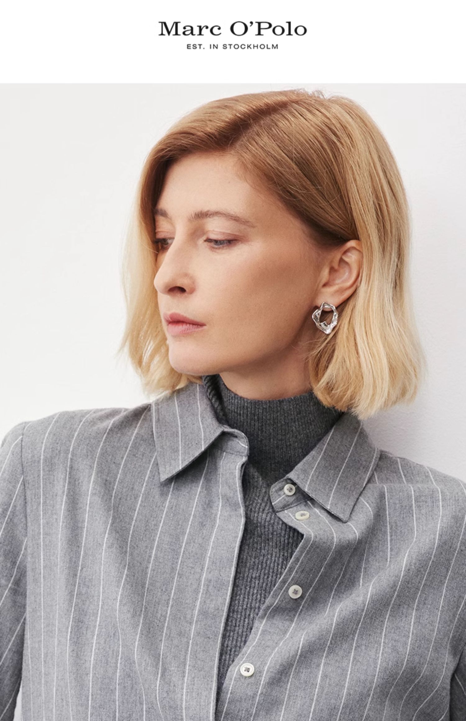 Marc O'Polo/MOP【商场同款】冬新款轻奢时尚条纹磨毛长袖衬衫女