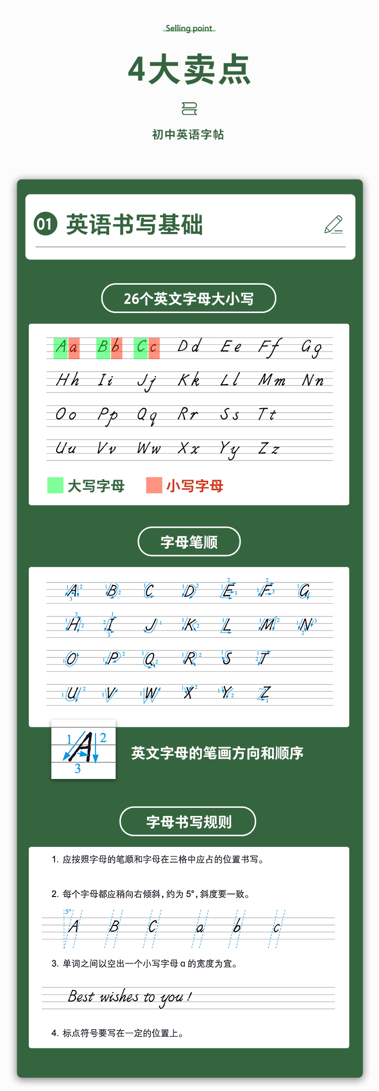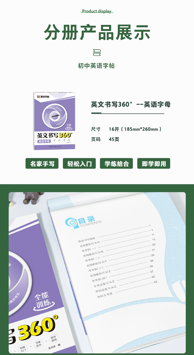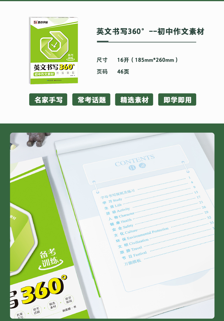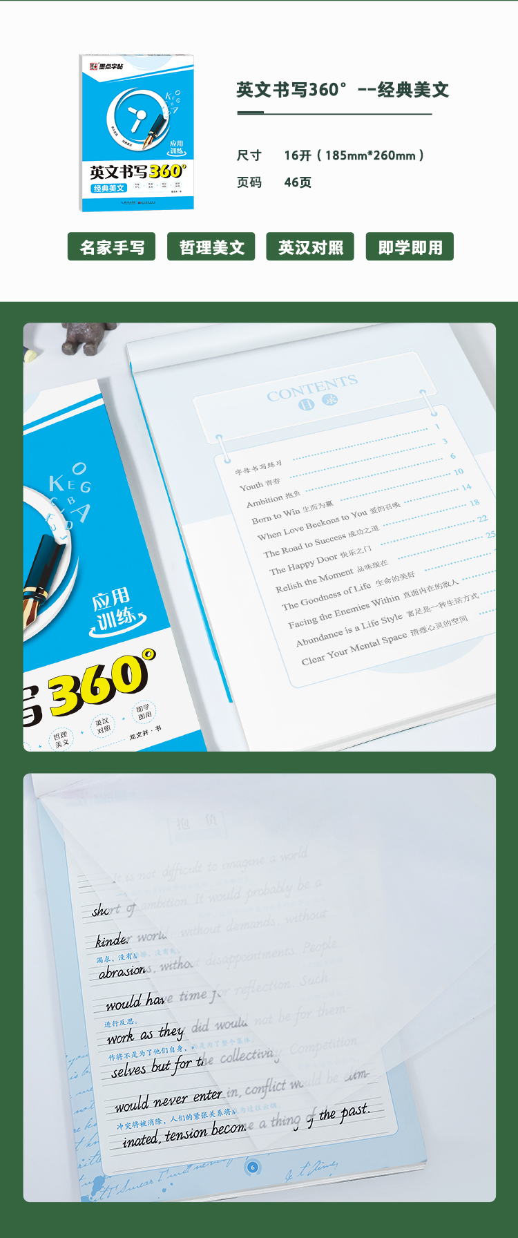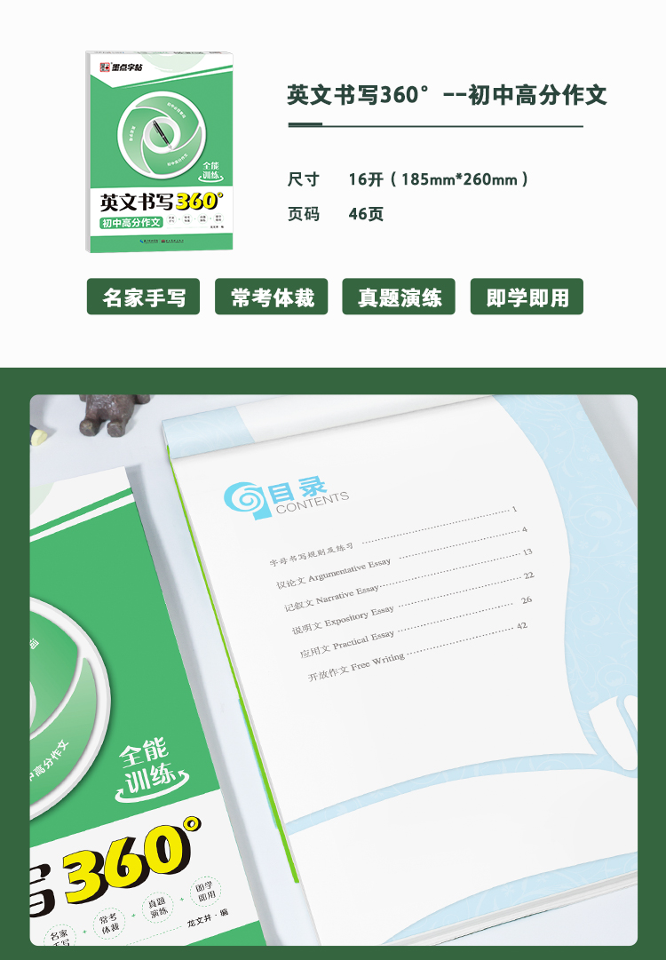 墨点【初中/高中生英语字帖】意大利斜体英语360训练系列字母单词语法高分作文素材美文