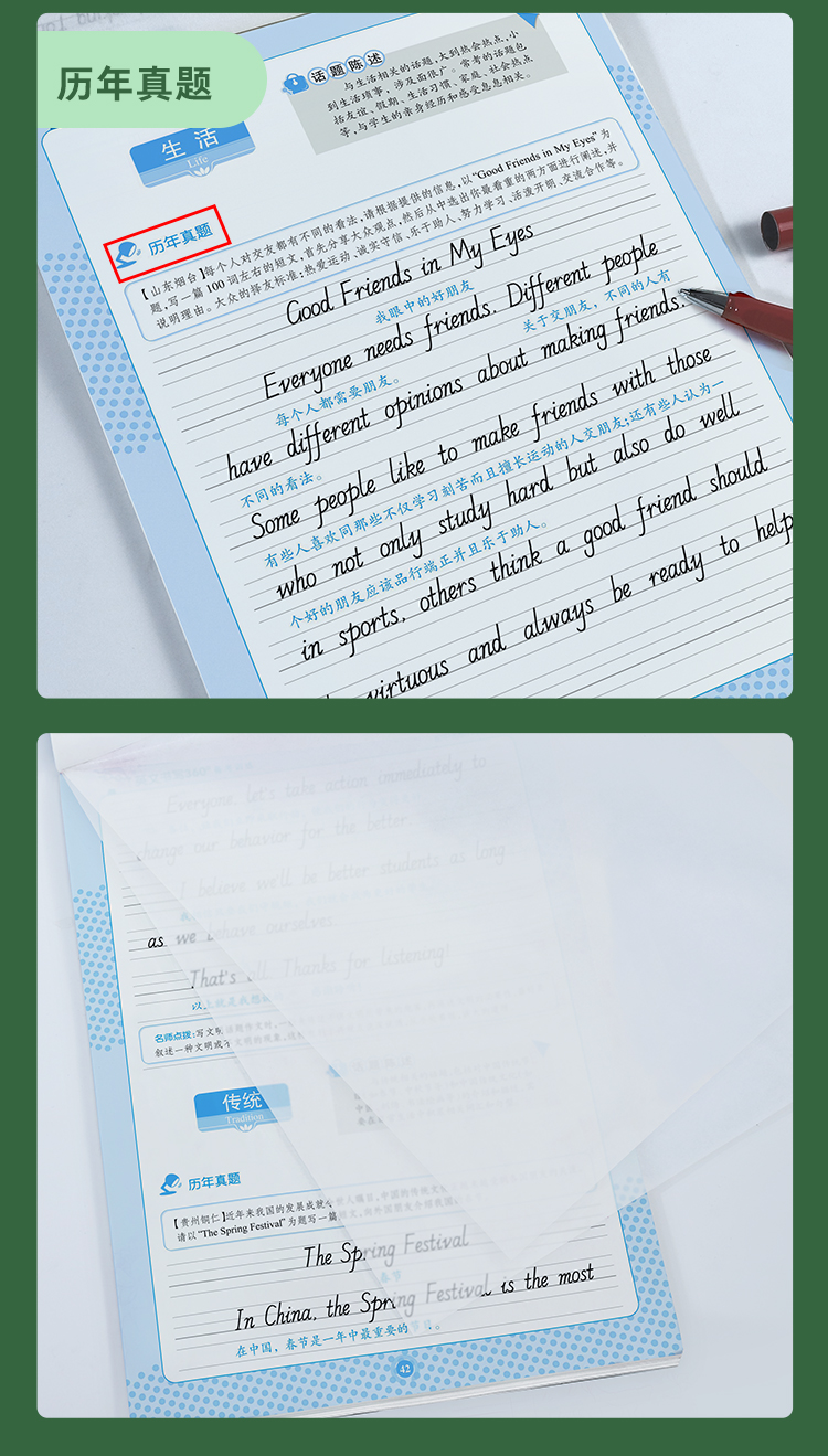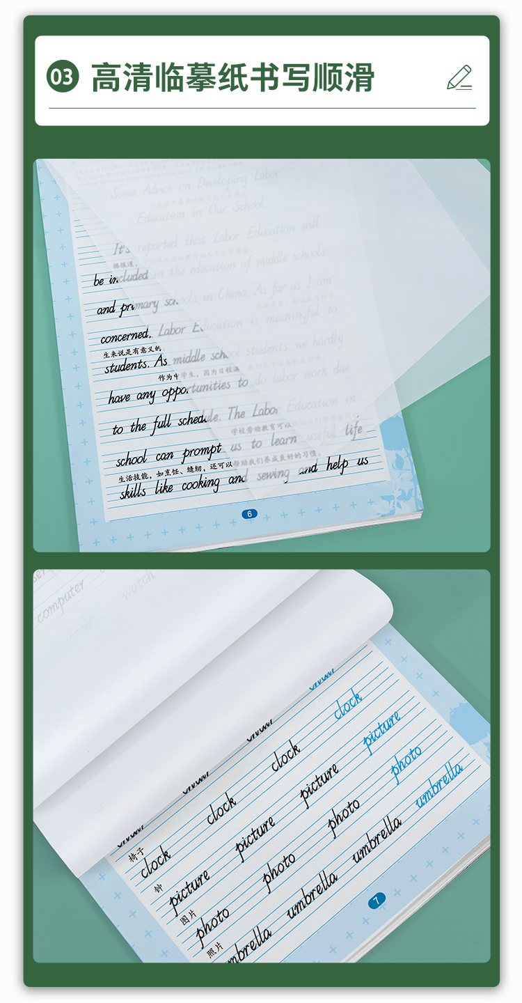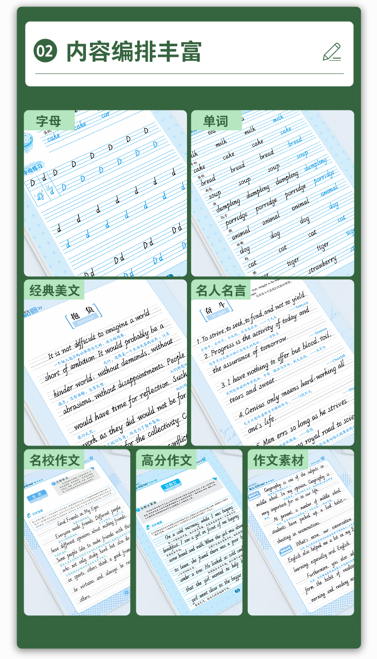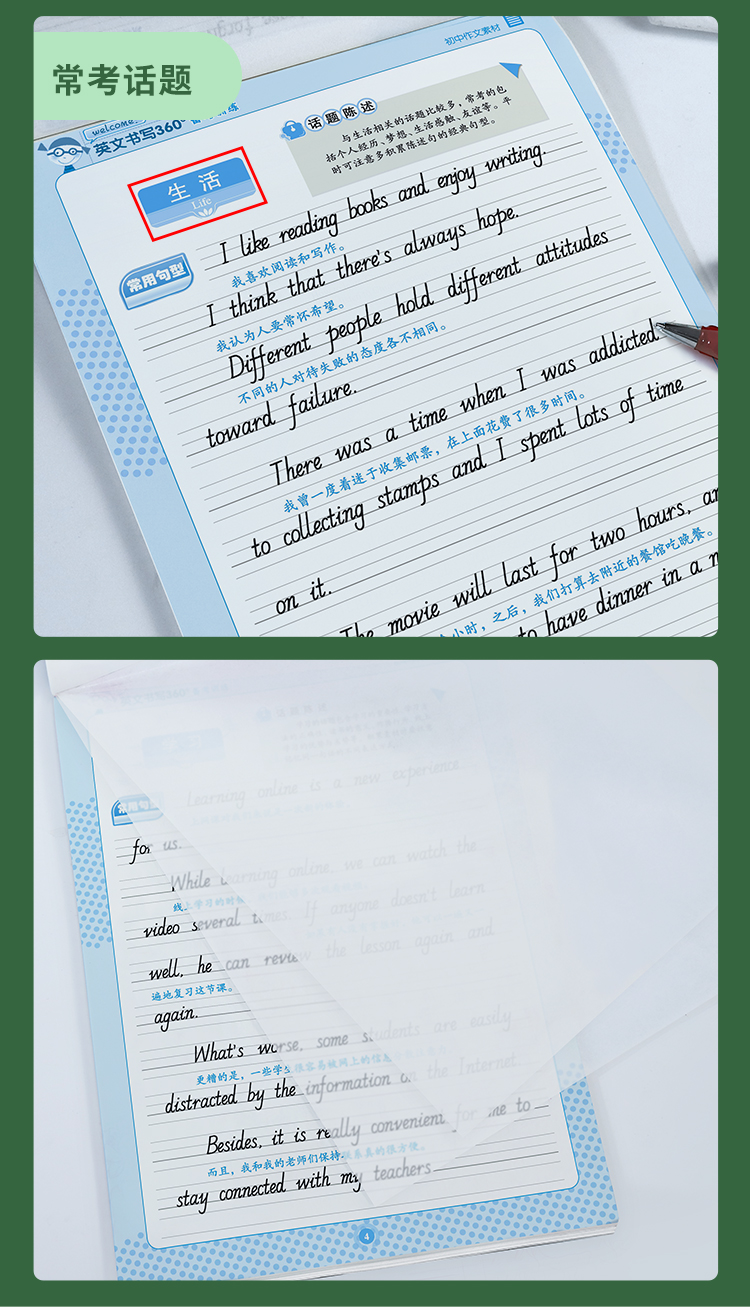 墨点【初中/高中生英语字帖】意大利斜体英语360训练系列字母单词语法高分作文素材美文