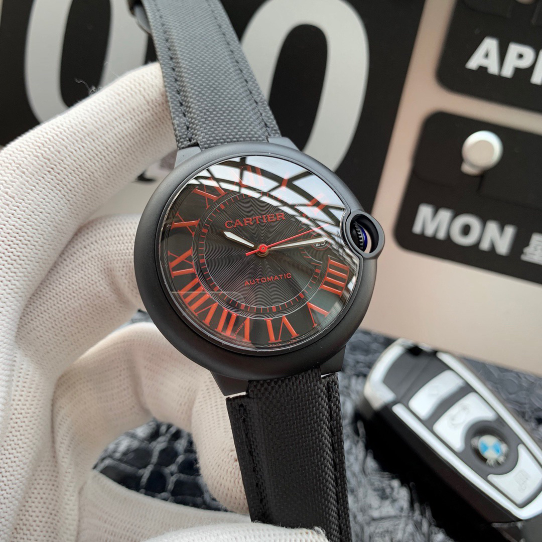 卡地亚 蓝气球系列【黑骑士】男款大号42mm 316L精钢表壳,蓝宝石镜面 搭载定制全自动机械机芯