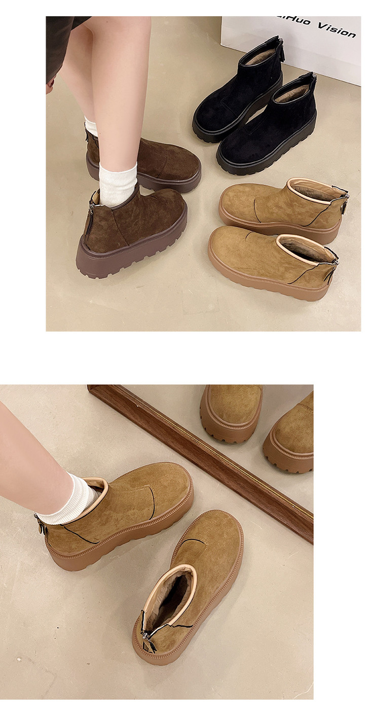 秋冬新款小个子增高马丁靴女舒适百搭后拉链加绒保暖厚底短靴棉靴