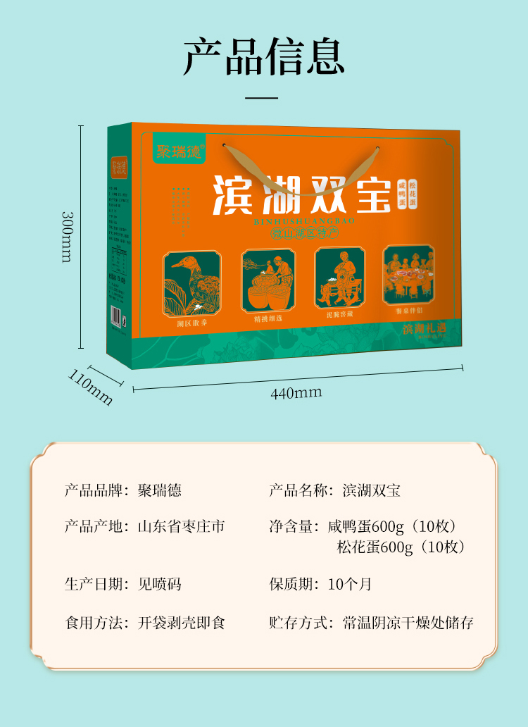 聚瑞德 滨湖双宝流油熟咸蛋鲜香流油 咸鸭蛋10枚+松花蛋10枚 1.2kg