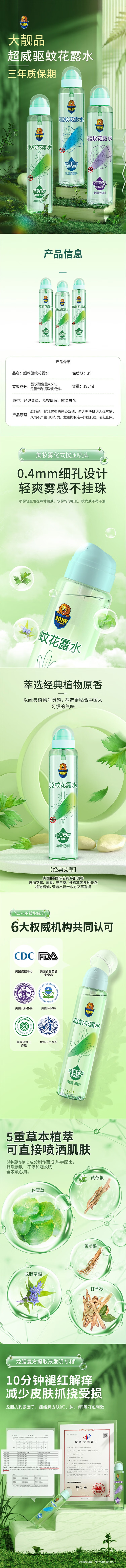 超威驱蚊艾草花露水195ml 户外可用便携植物防蚊虫舒缓喷雾