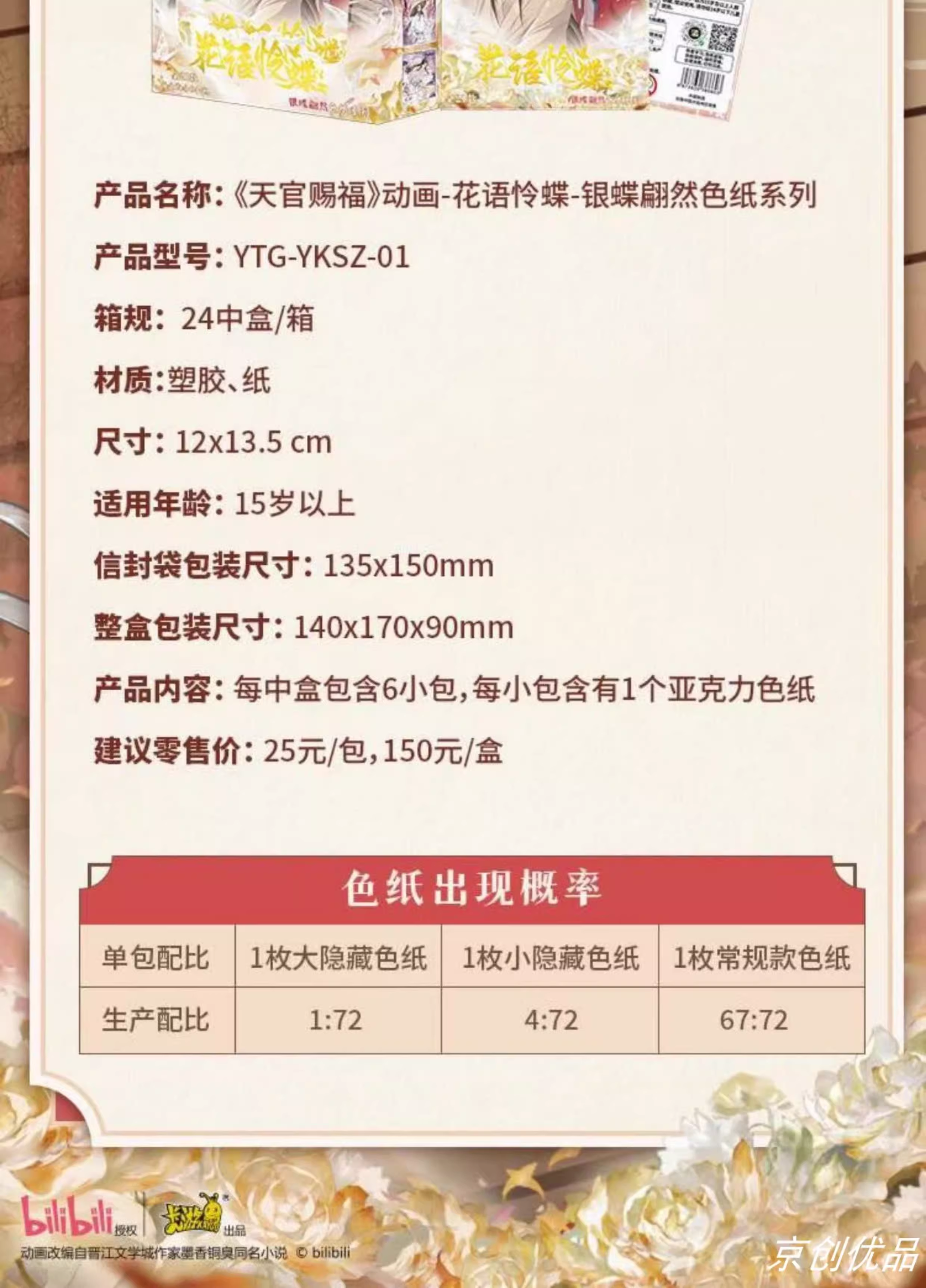 卡游 《天官赐福》动画-花语怜蝶-银蝶翩然色纸系列KAYCYTG-YKSZ-01