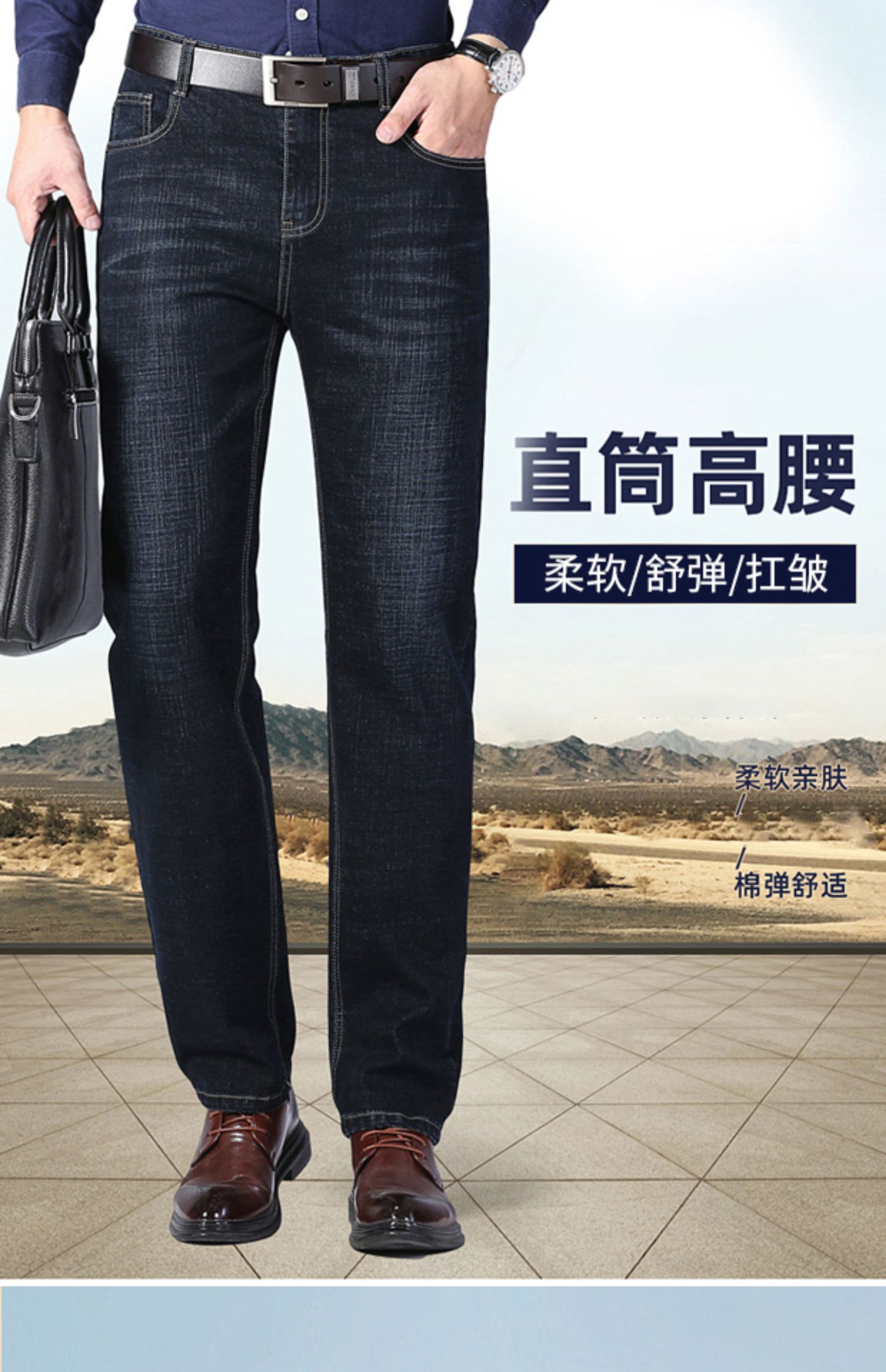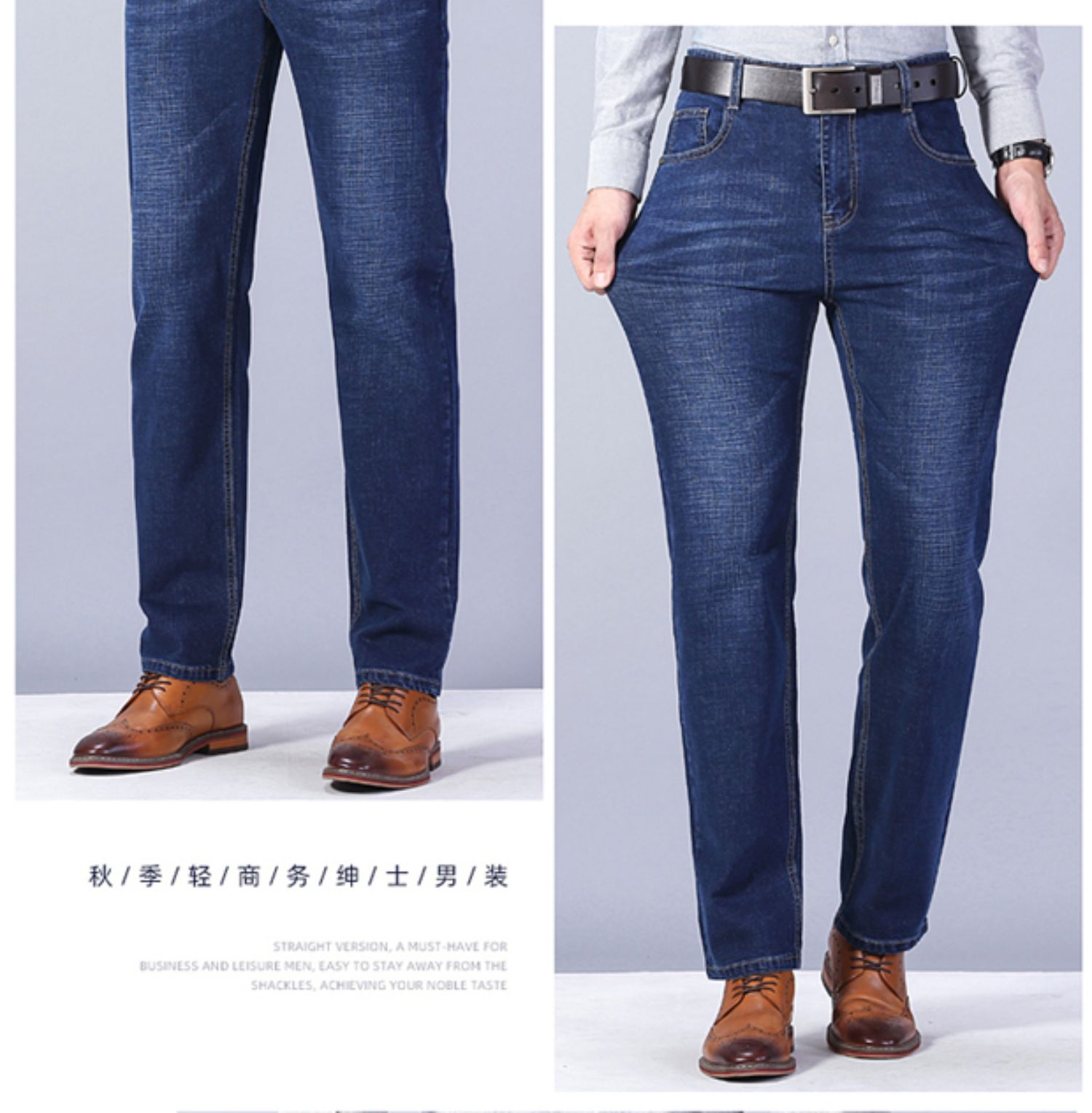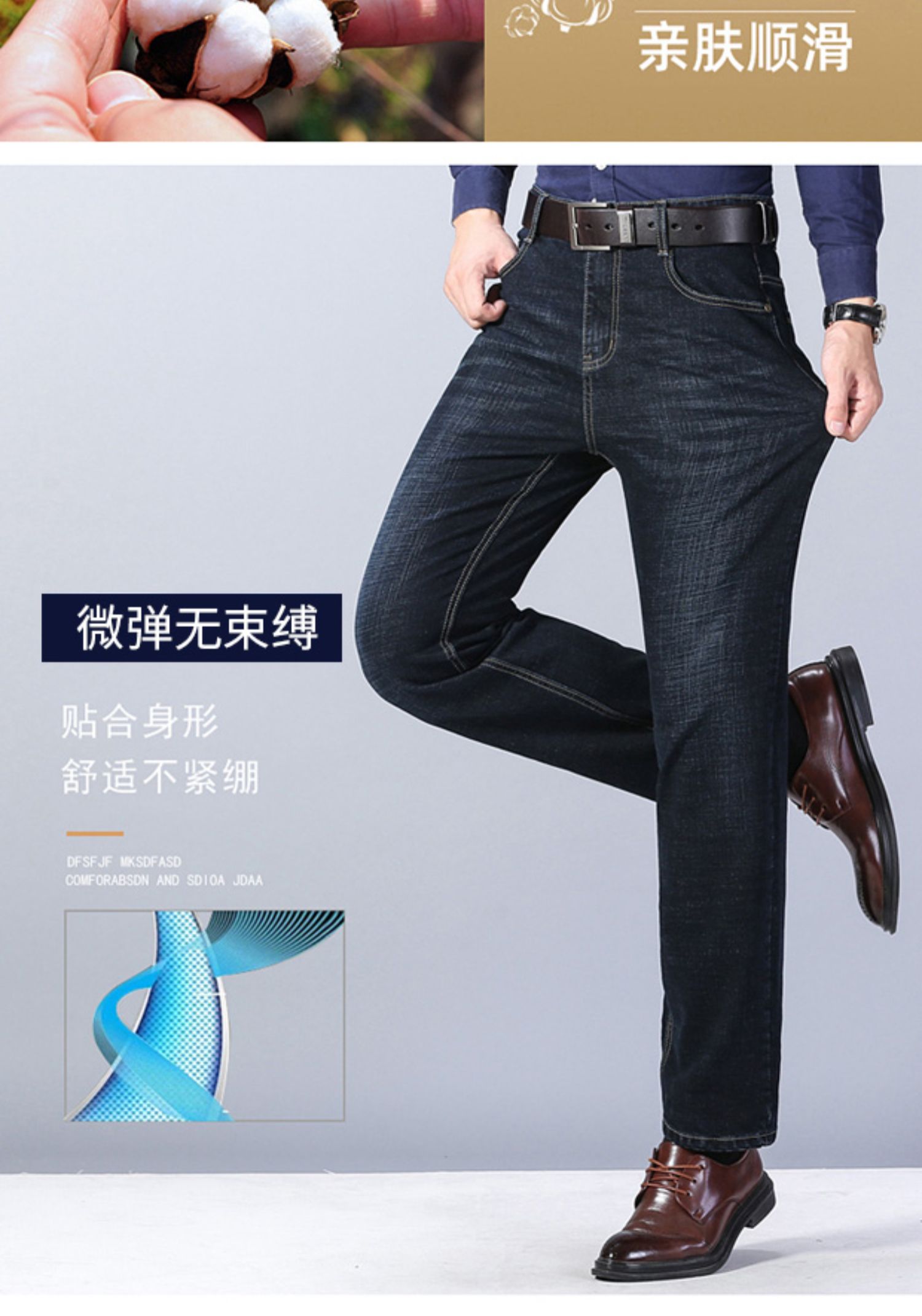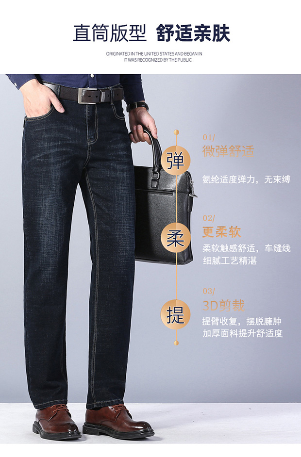 圣得西男士牛仔裤2025秋季新款中青年宽松直筒加厚棉弹休闲长裤