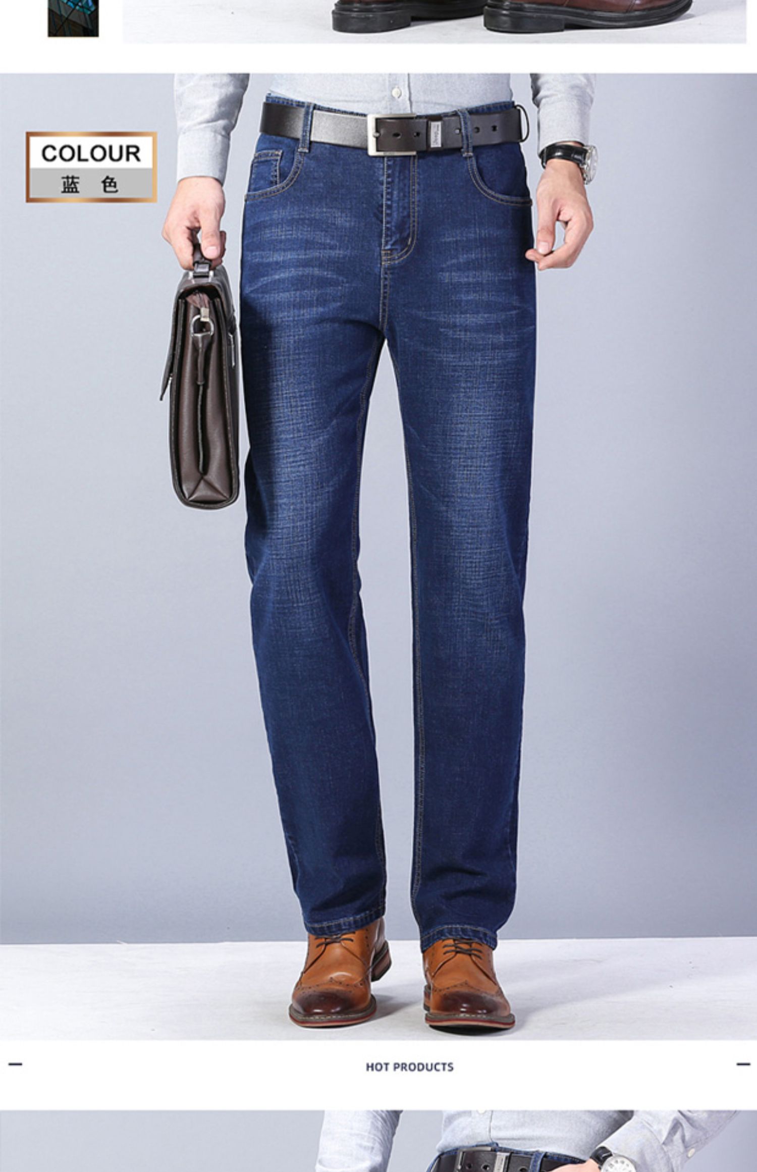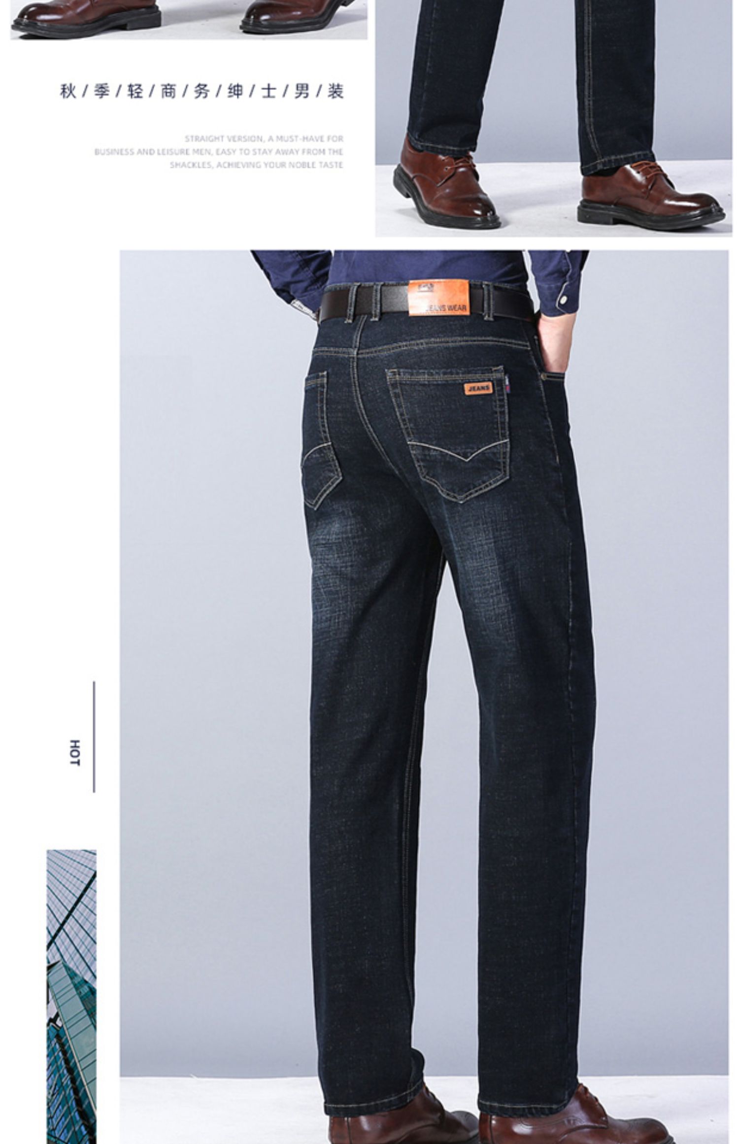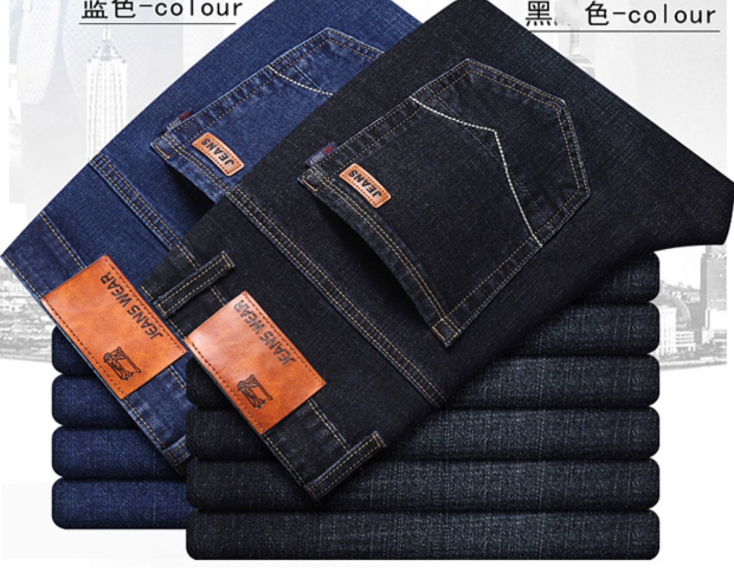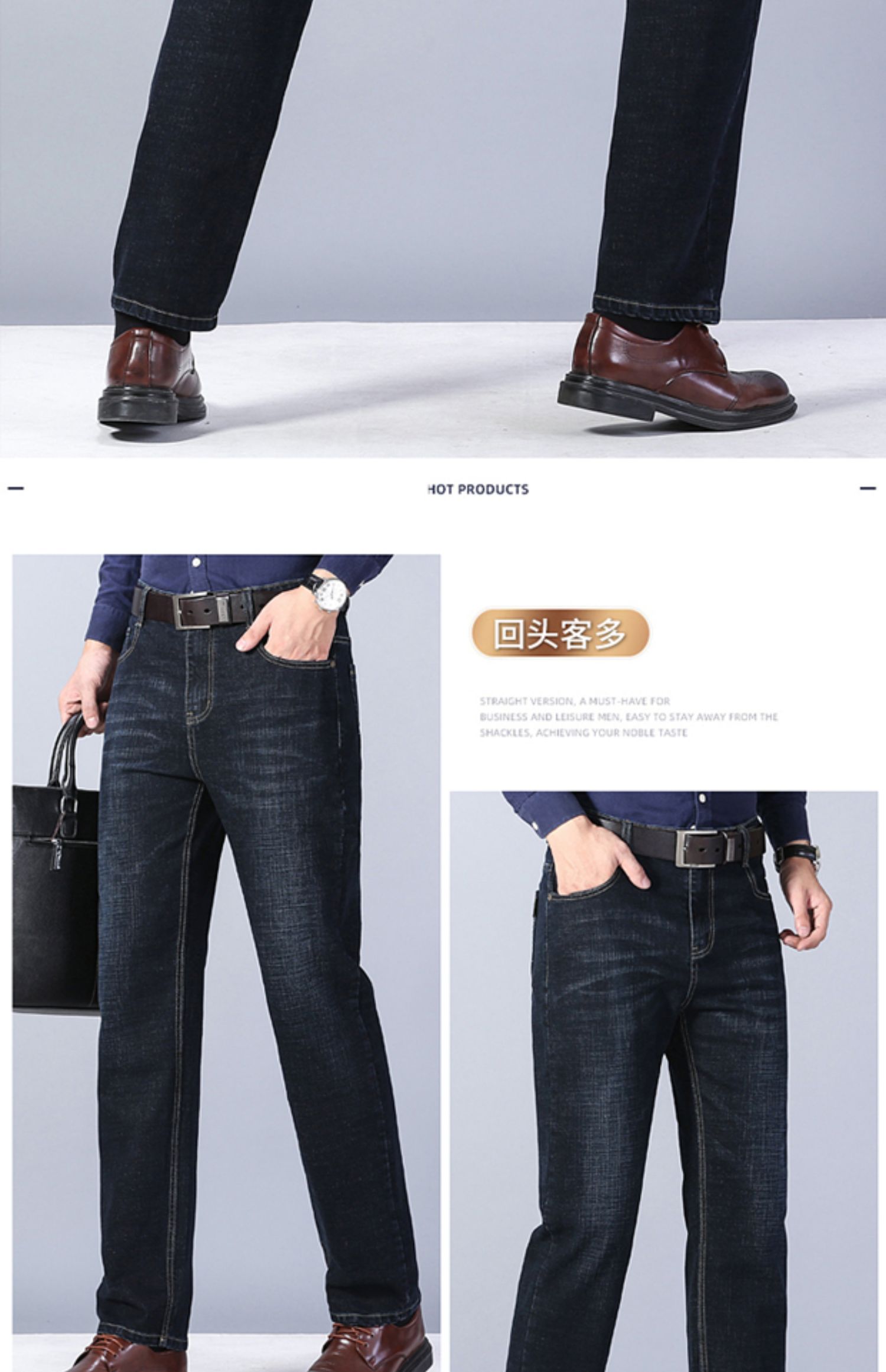 圣得西男士牛仔裤2025秋季新款中青年宽松直筒加厚棉弹休闲长裤