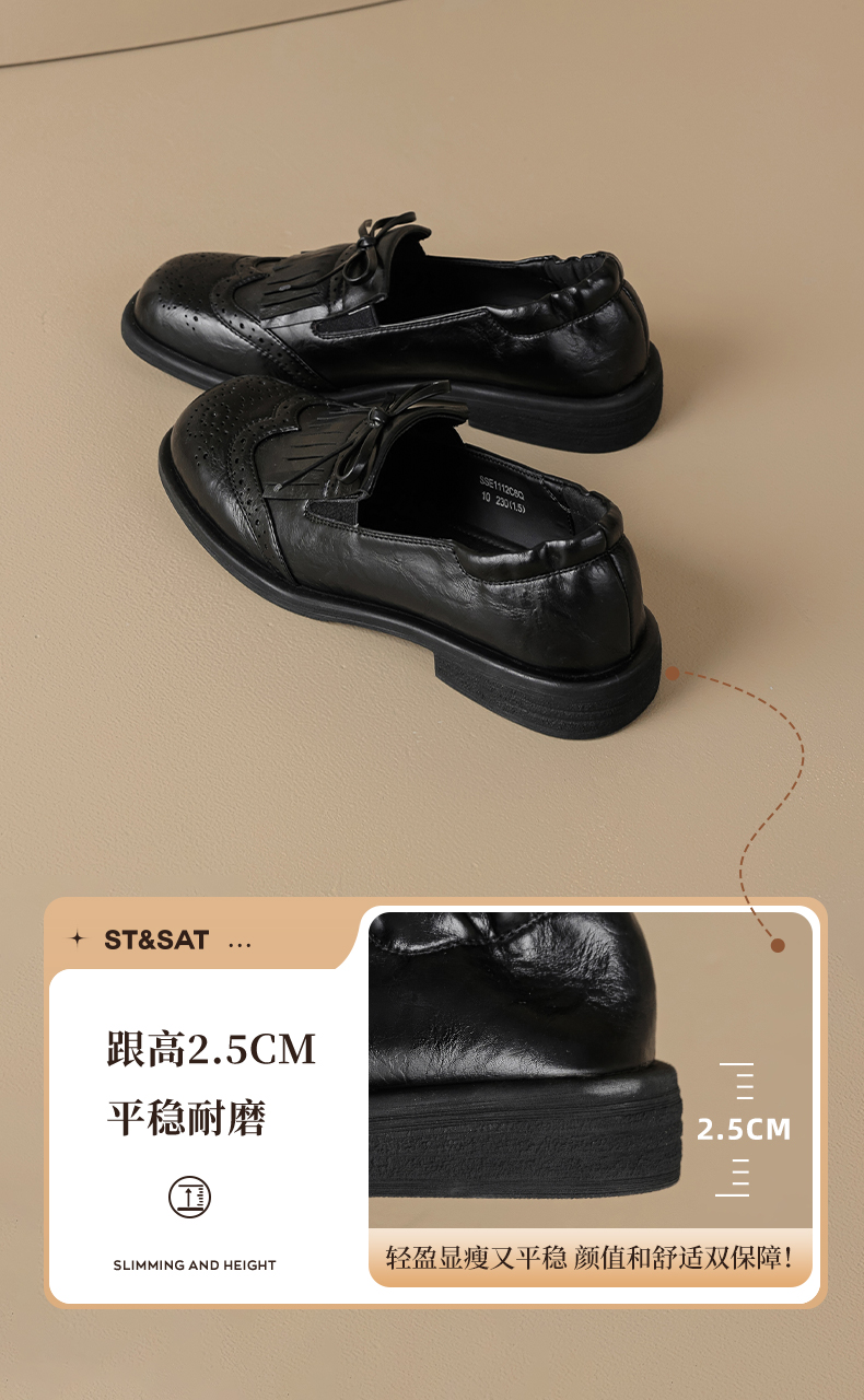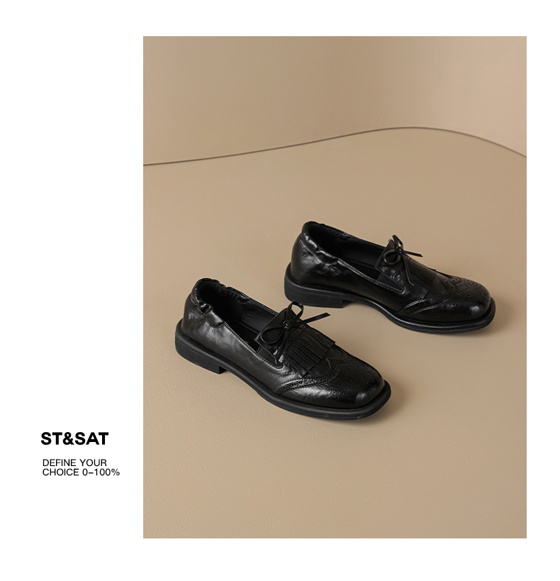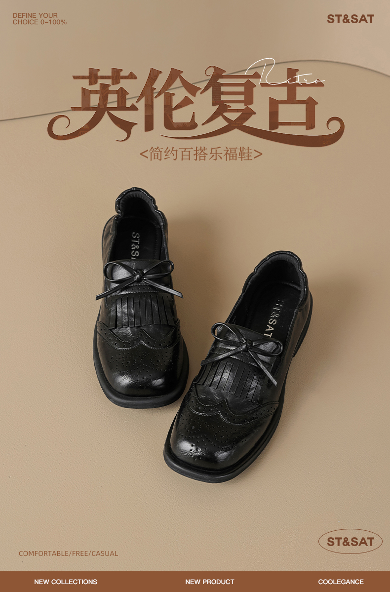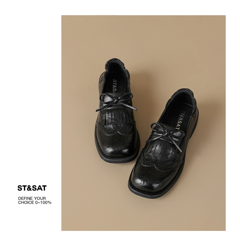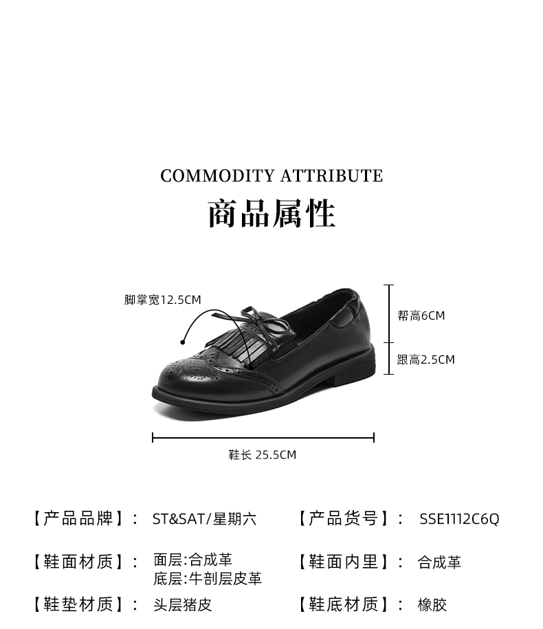 星期六26春新款英伦风蝴蝶结软底乐福鞋SSE1112C6Q