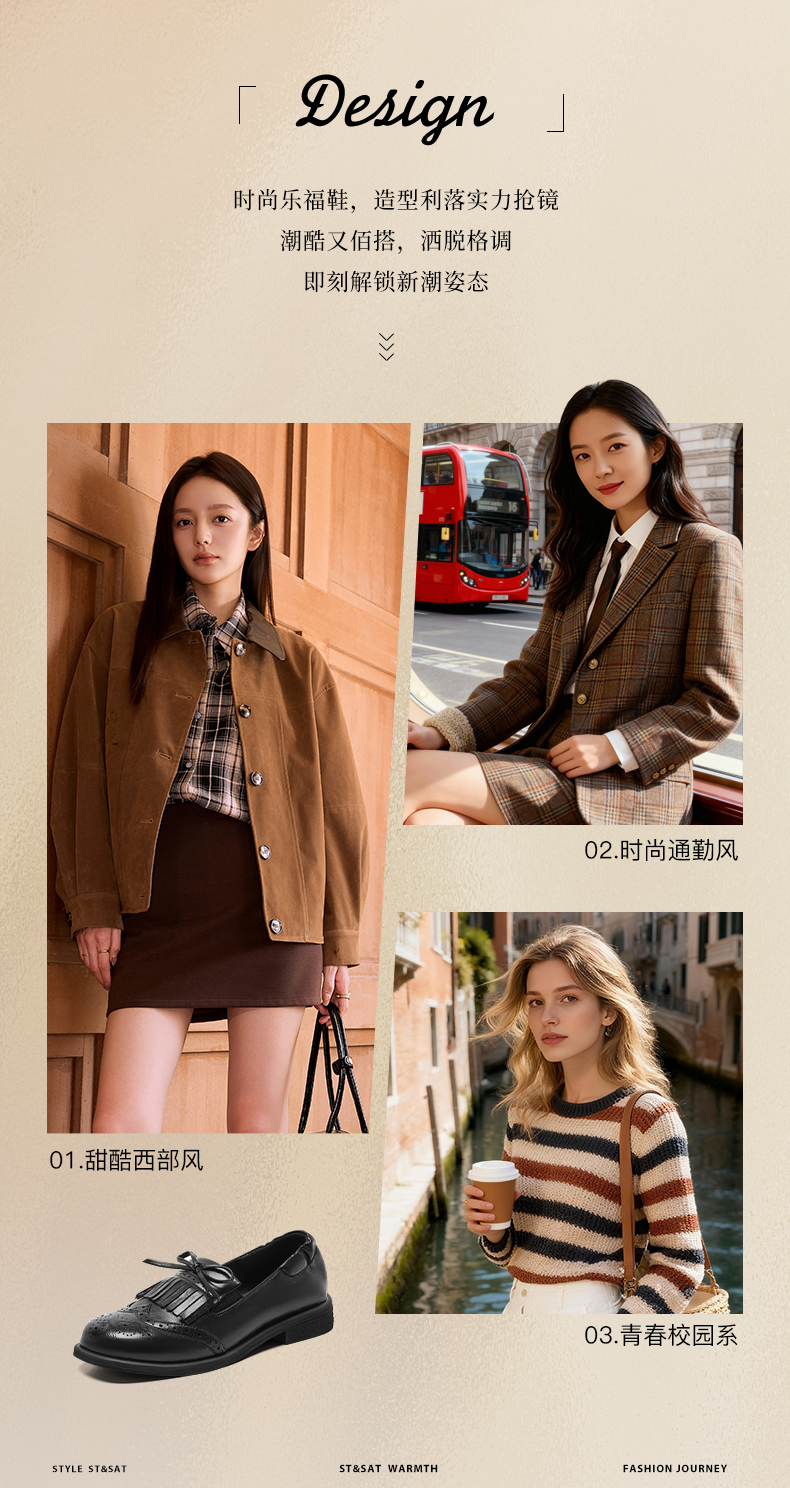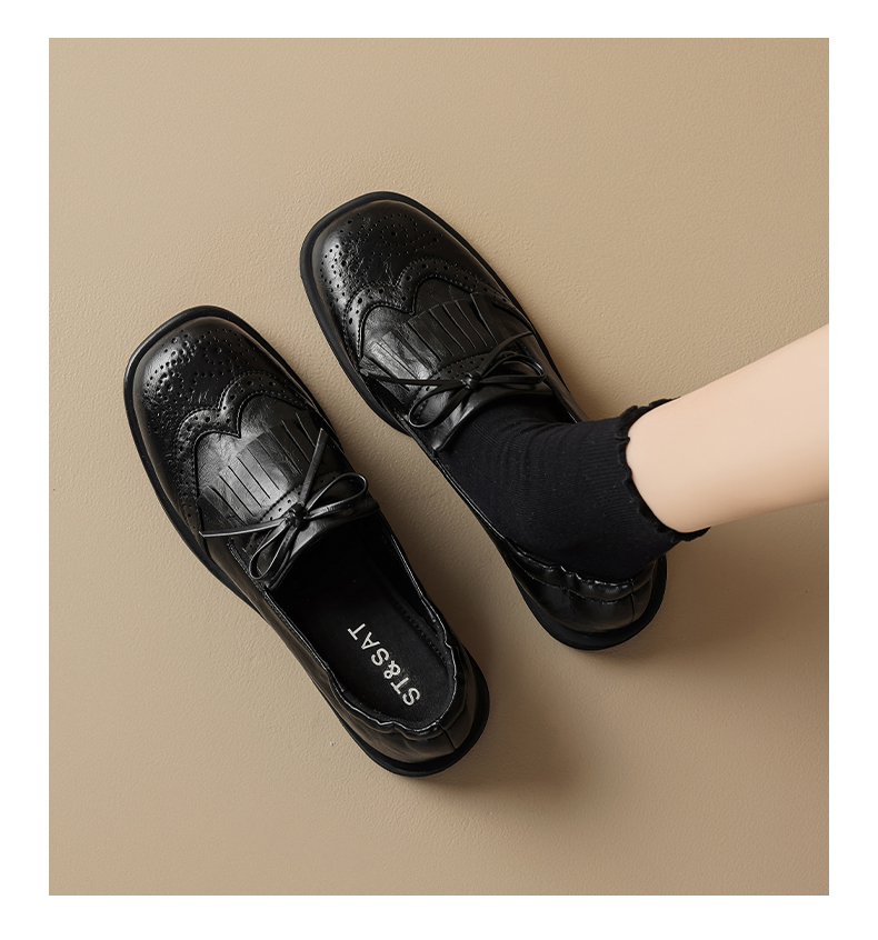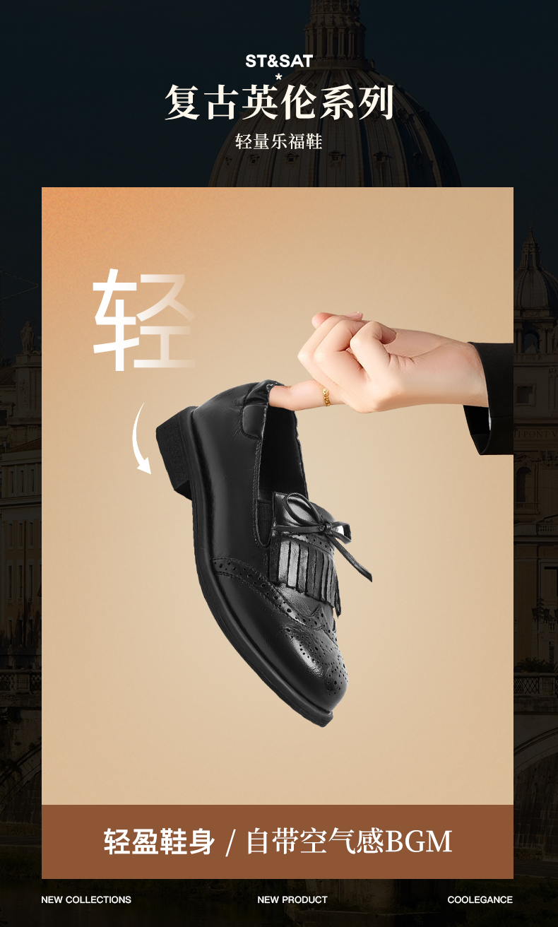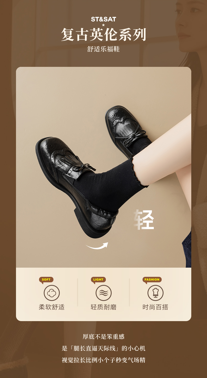 星期六26春新款英伦风蝴蝶结软底乐福鞋SSE1112C6Q