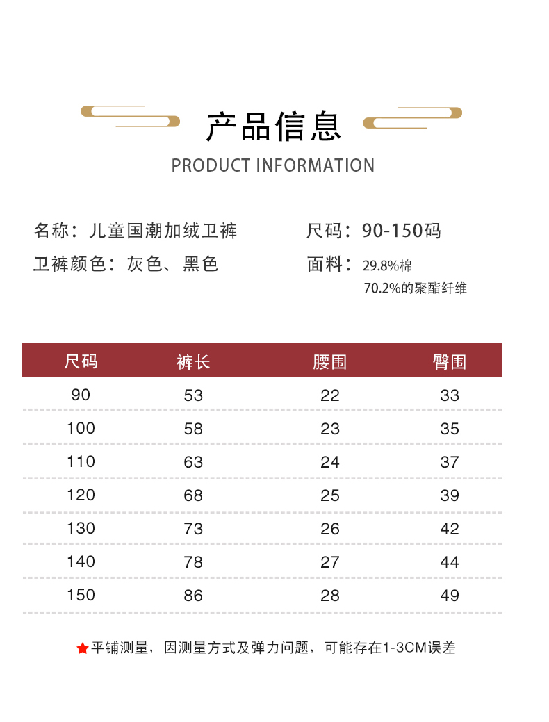 【老虎专用 请勿下架】龙之涵 国潮风儿童加绒卫裤 2022新款年服 婴幼儿A类标准