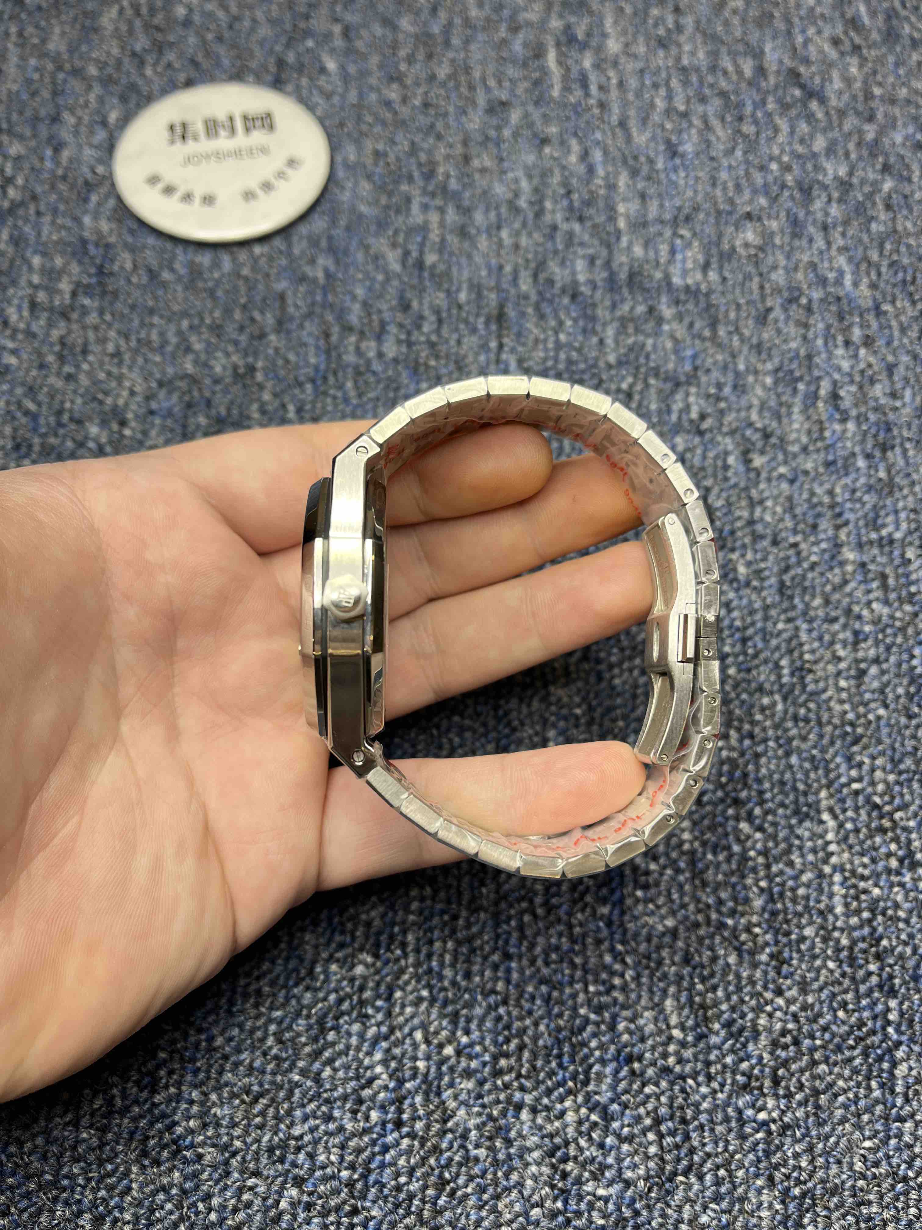 316L精钢表链同步表壳拉丝纹路,配三折式按压式扣。