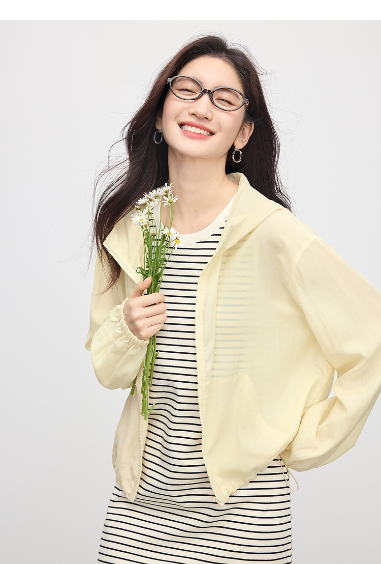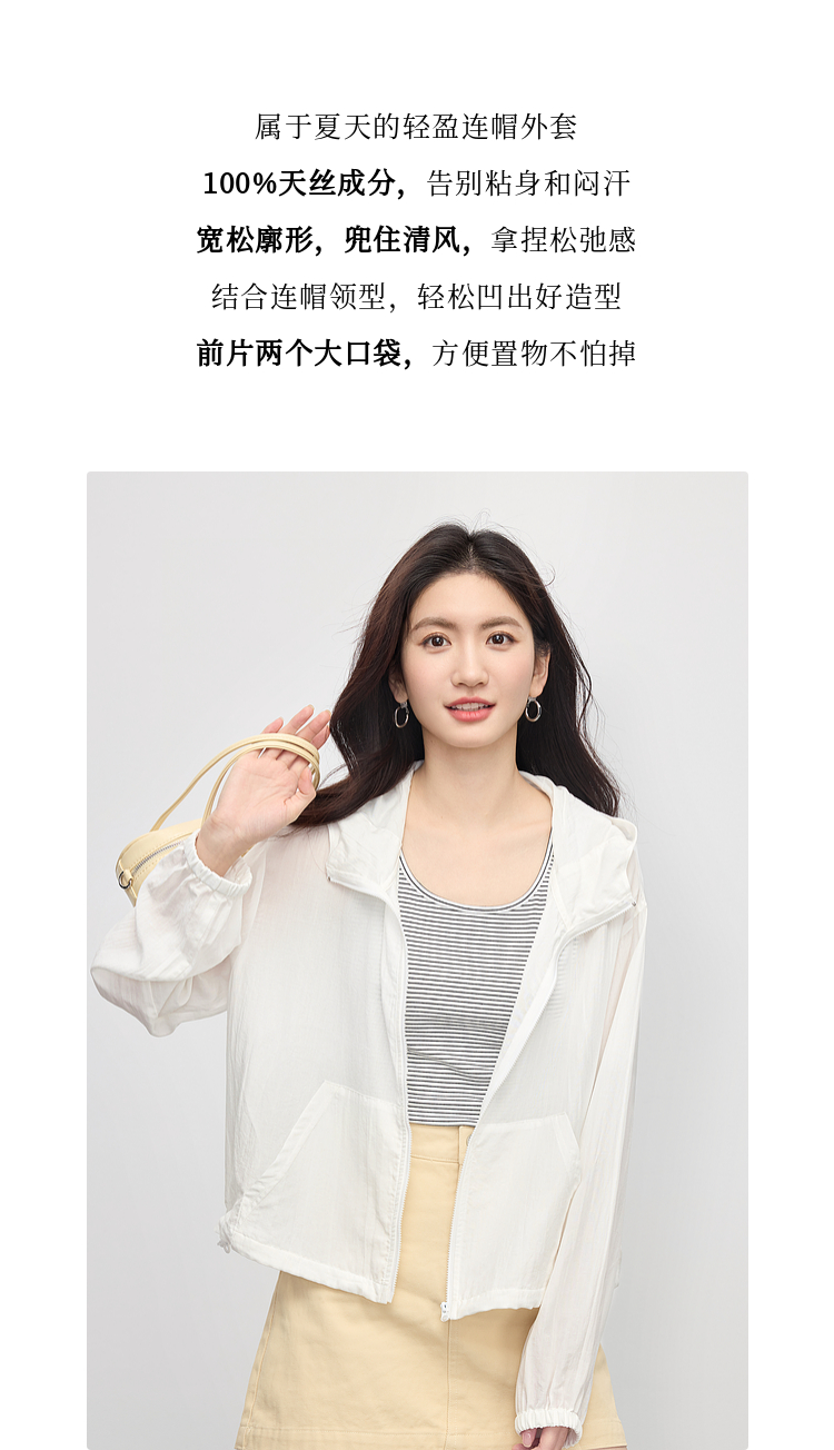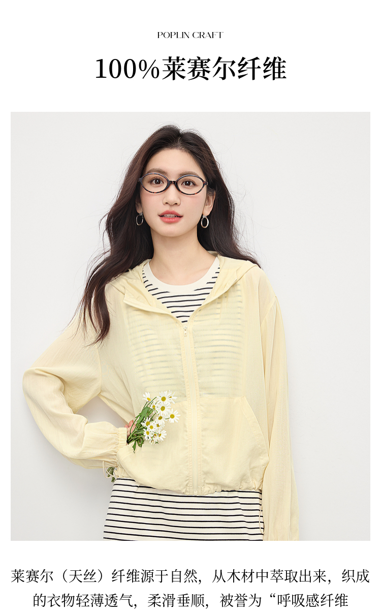 【周末秒杀】熙世界100%莱赛尔防晒短外套女薄款遮阳天丝开衫上衣2025夏季新款