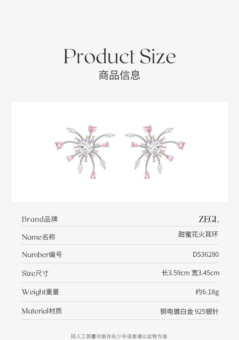 ZEGL设计师甜蜜梦境系列花火耳环女小众设计感高级耳钉银针耳饰品