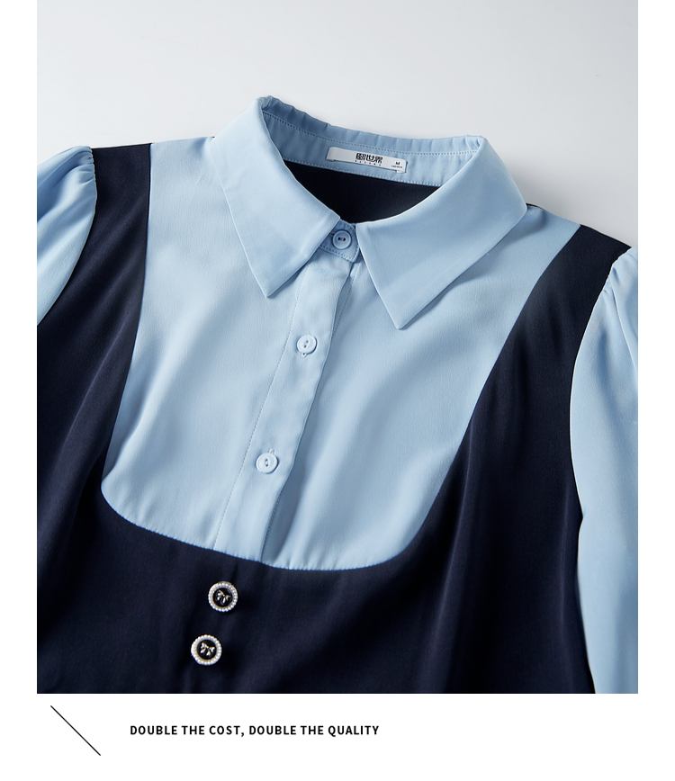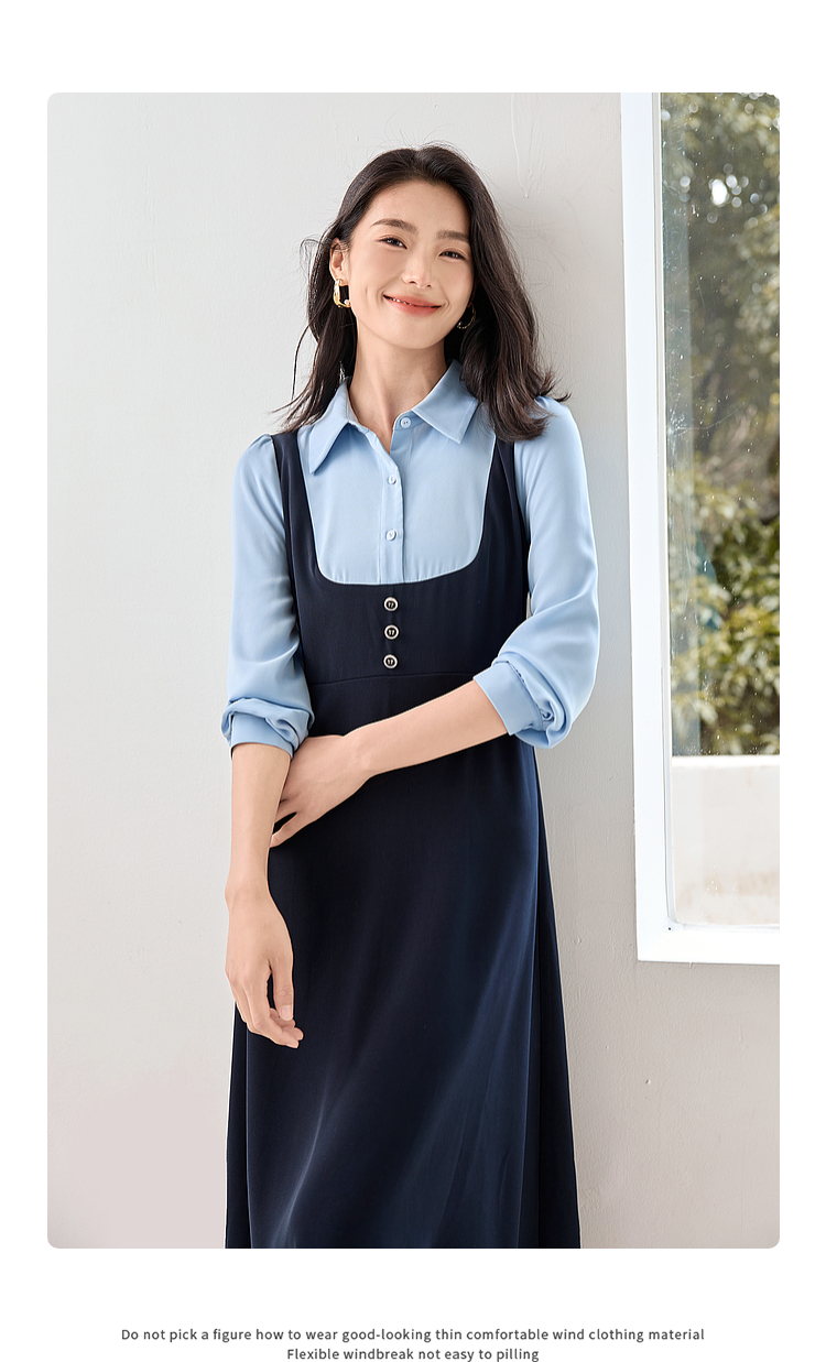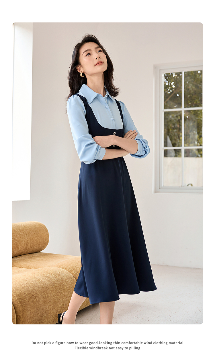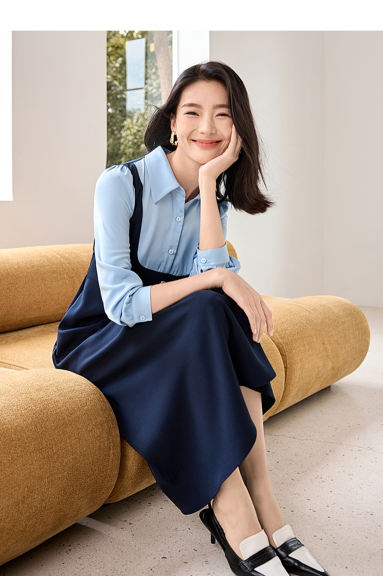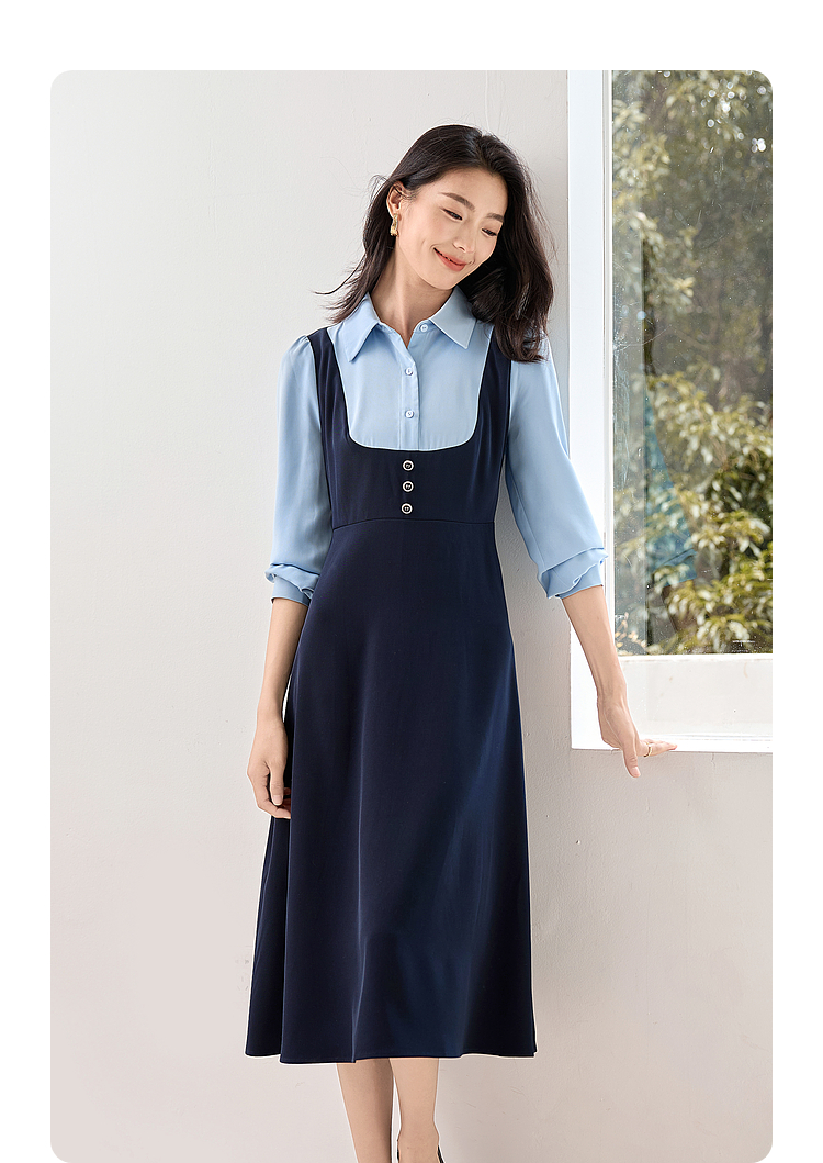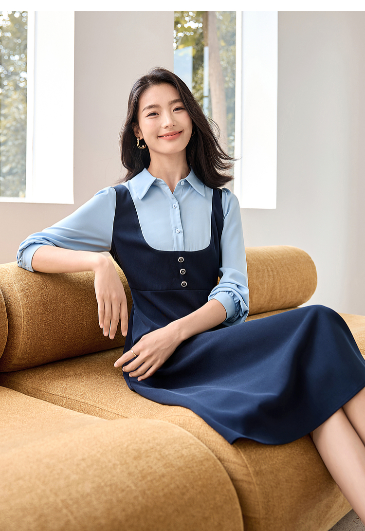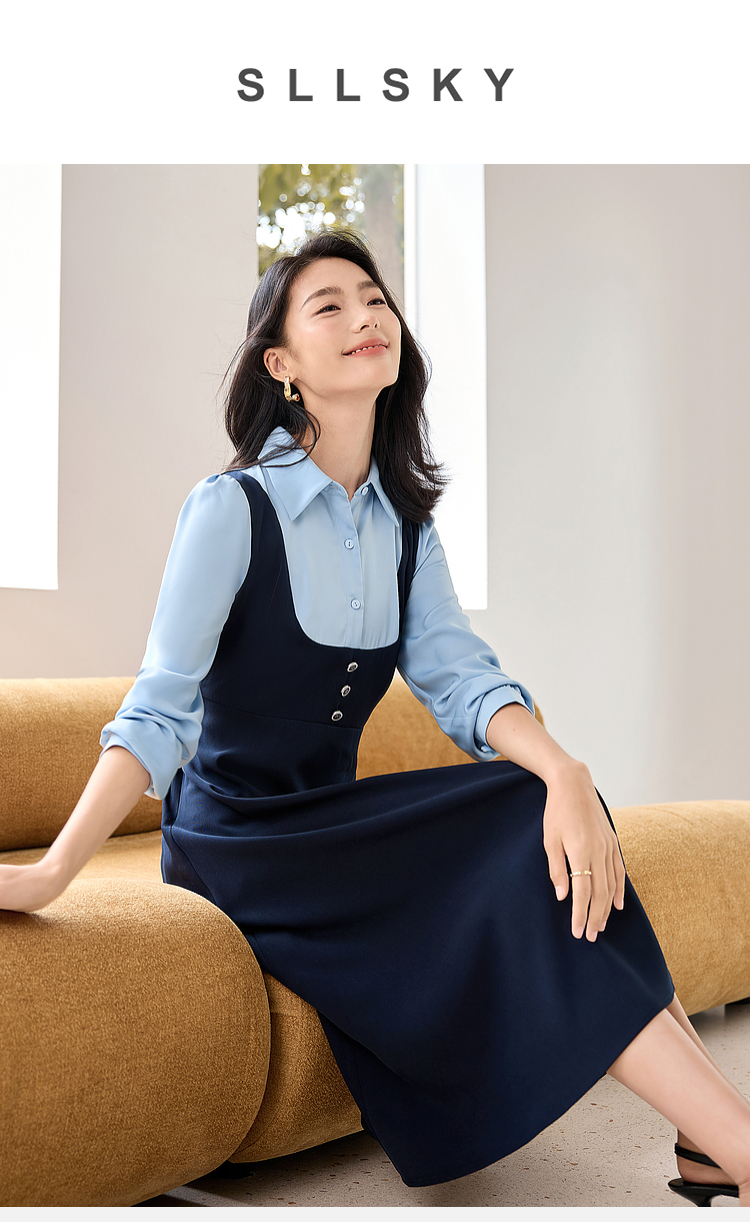 【1件72折】熙世界学院风假两件衬衫连衣裙2025秋装新款通勤气质收腰中长裙