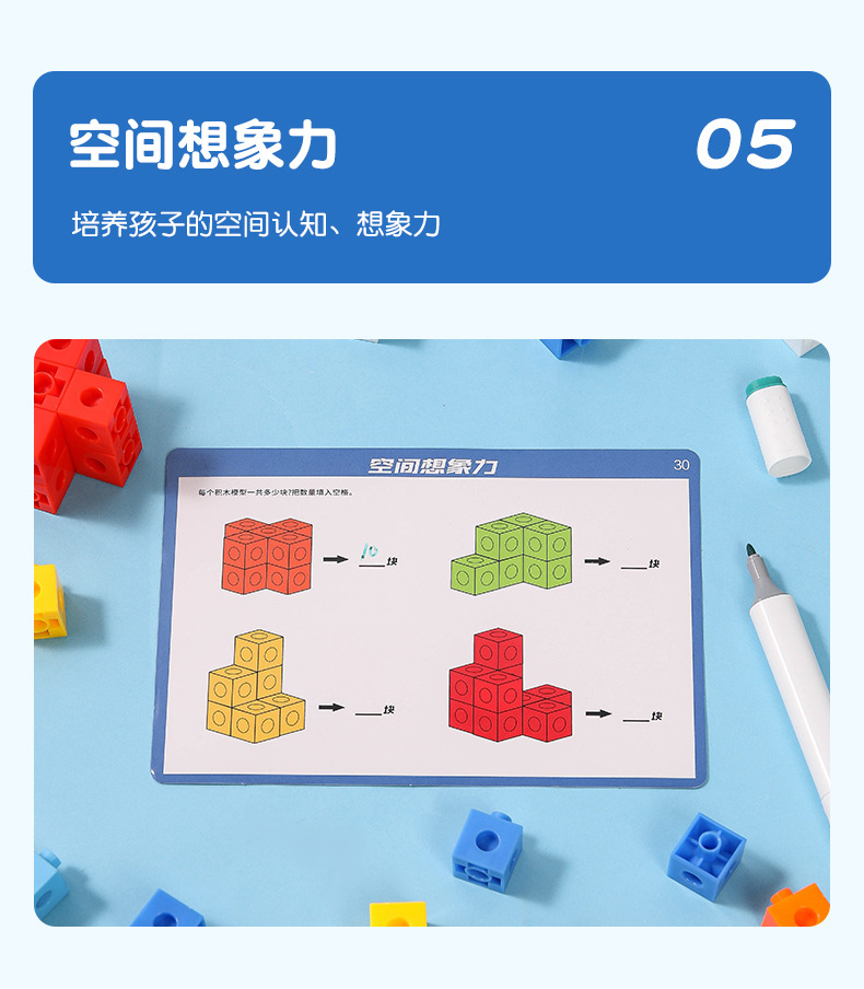 【赠收纳盒+学习题卡】数感启蒙教具 正方体积木教具 数学立体几何模型 小方块拼搭儿童益智玩具