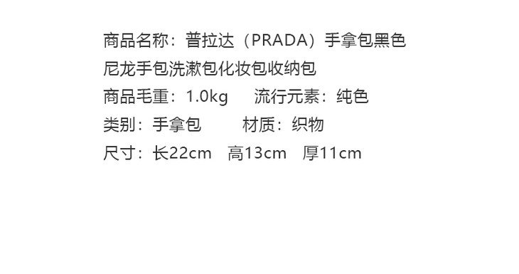 PRADA 普拉达 手拿包黑色尼龙手包化妆包收纳包 黑色 2NA819 064 F0002