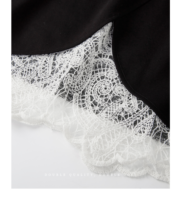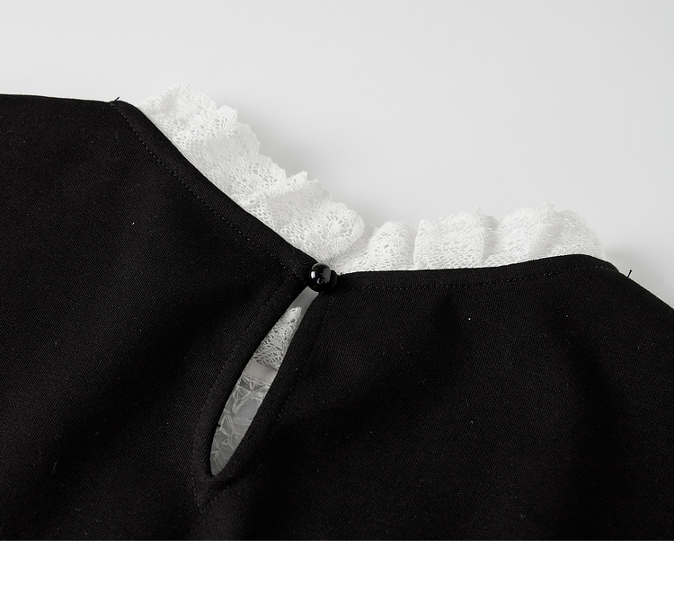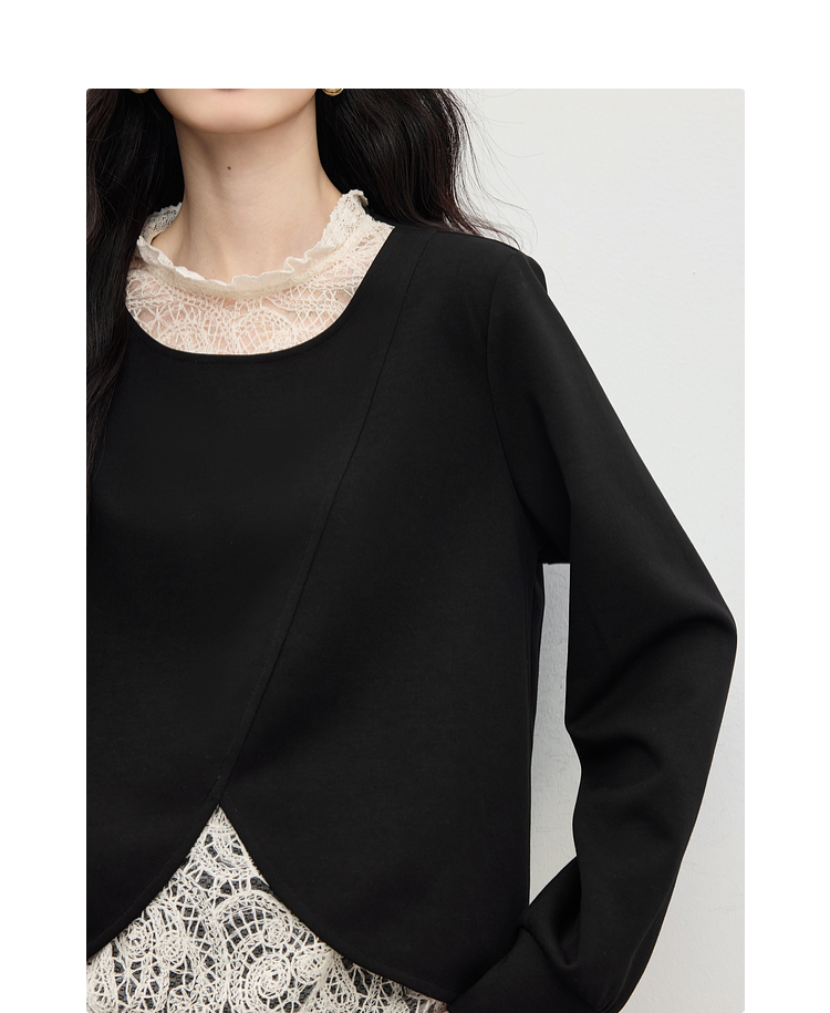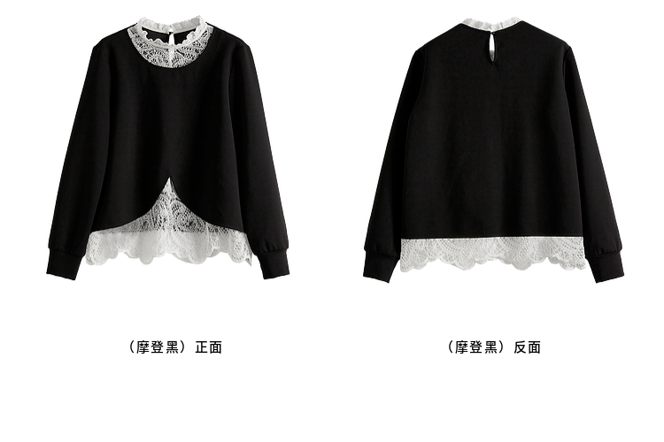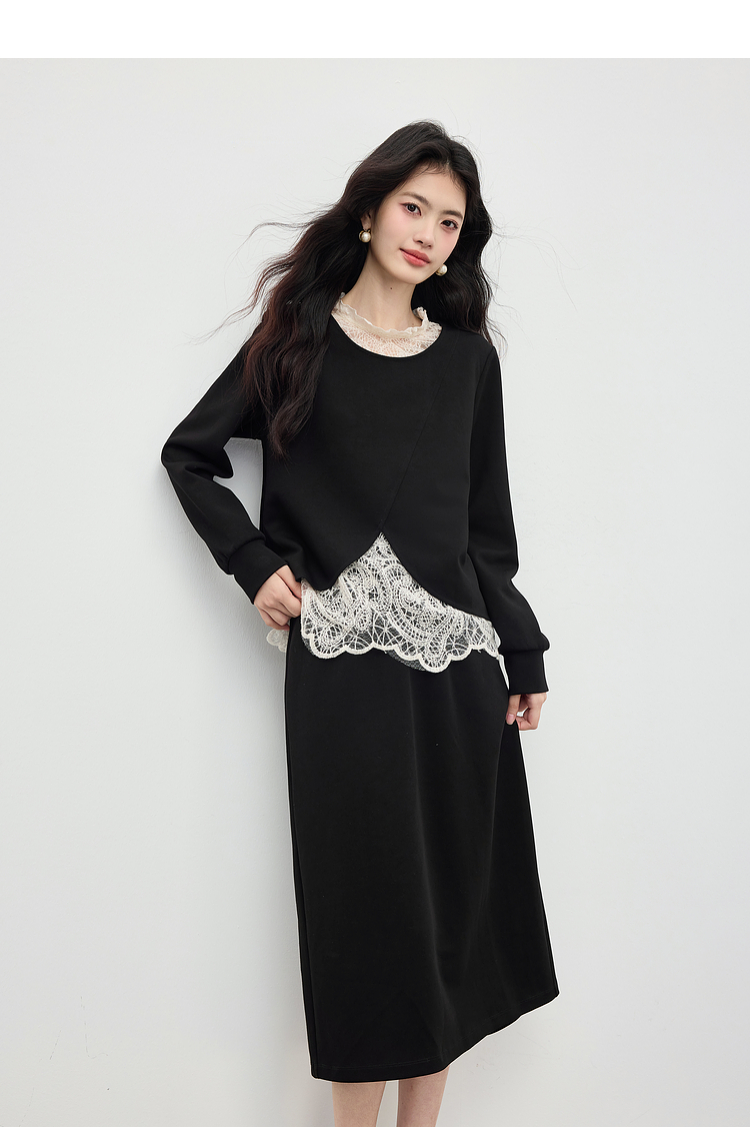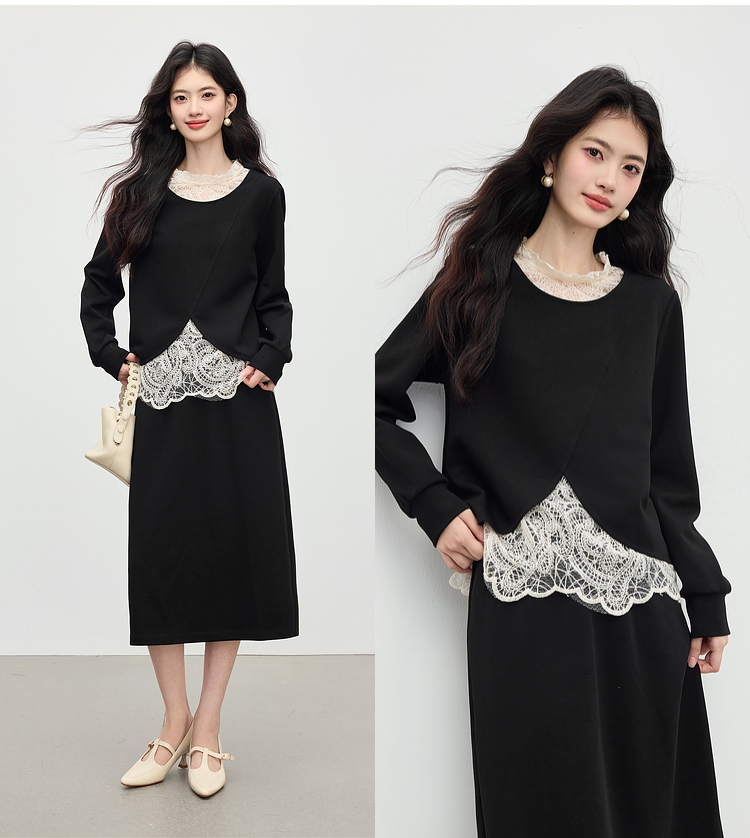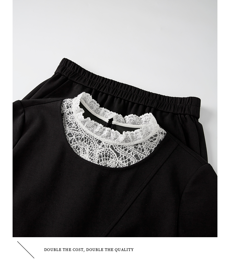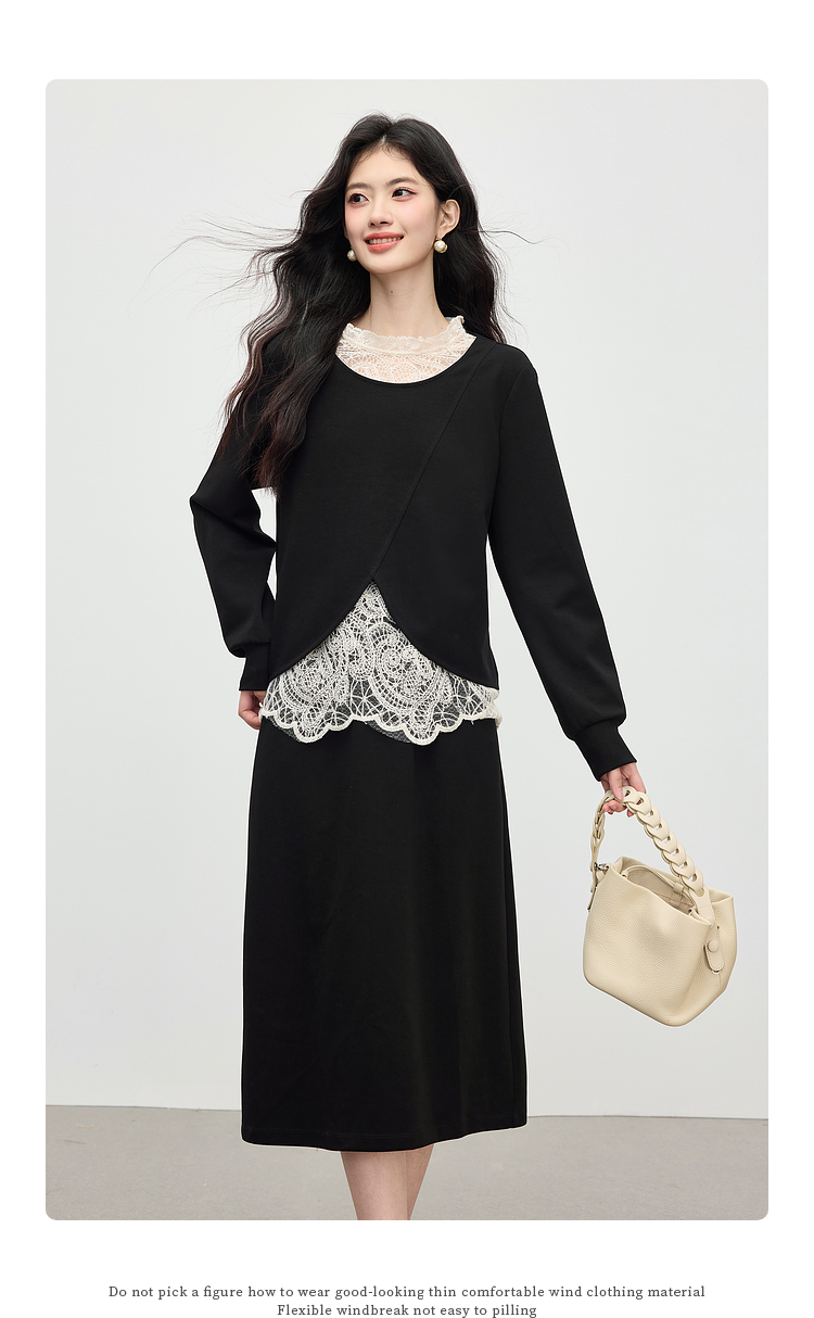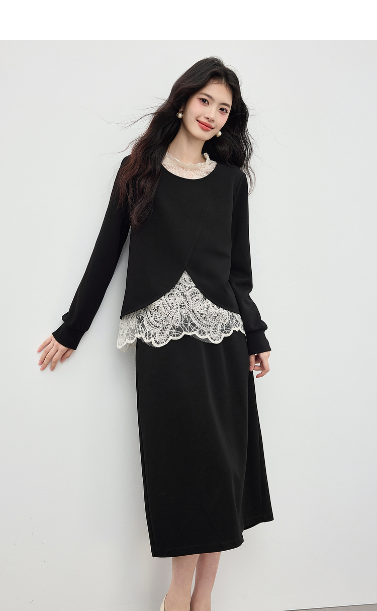 【08/27新品】熙世界千金赫本风套装女秋季新款蕾丝拼接假两件上衣半身裙两件套