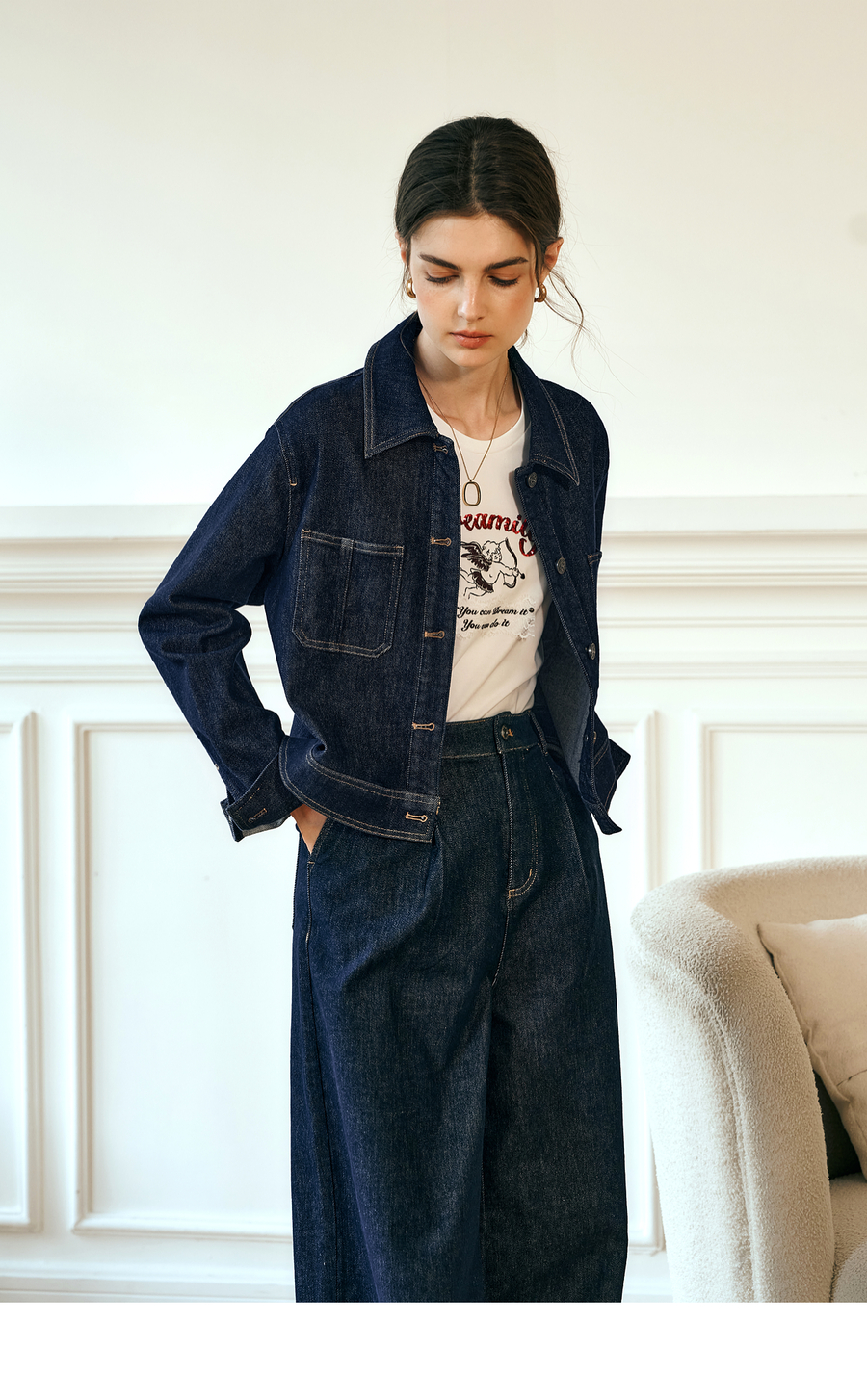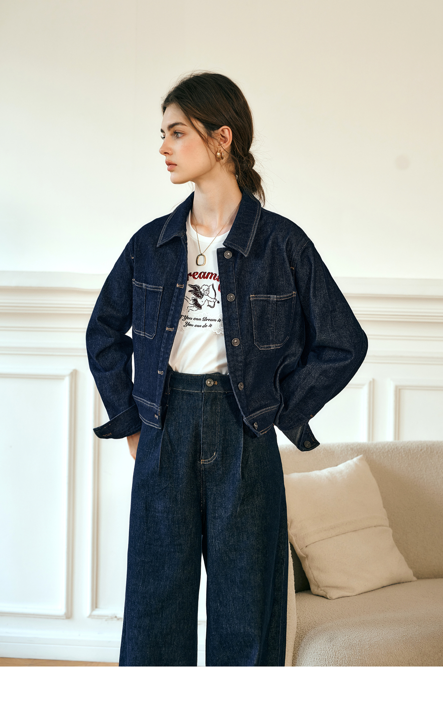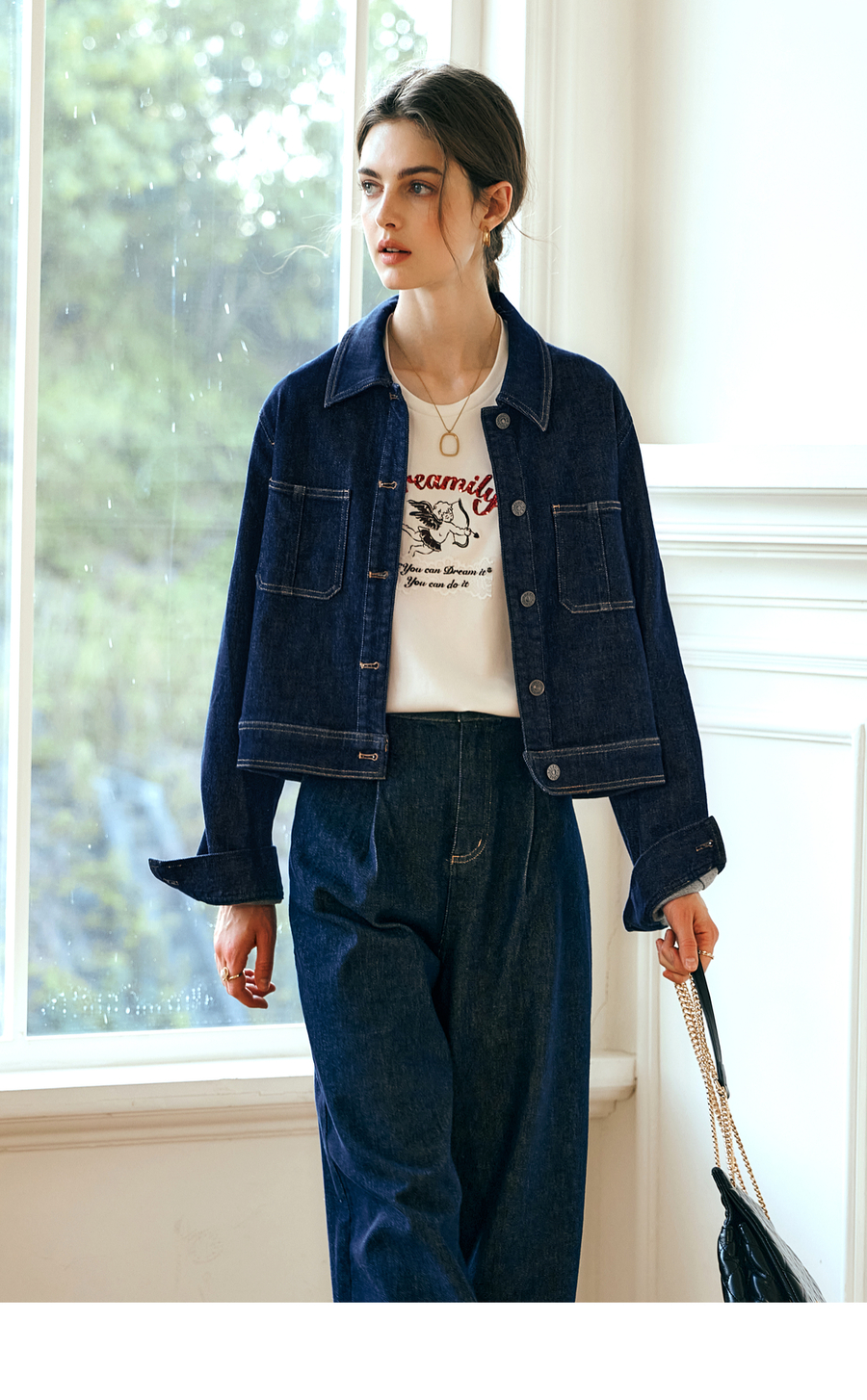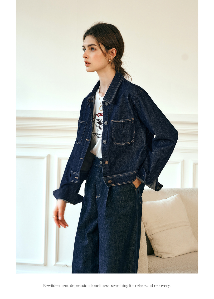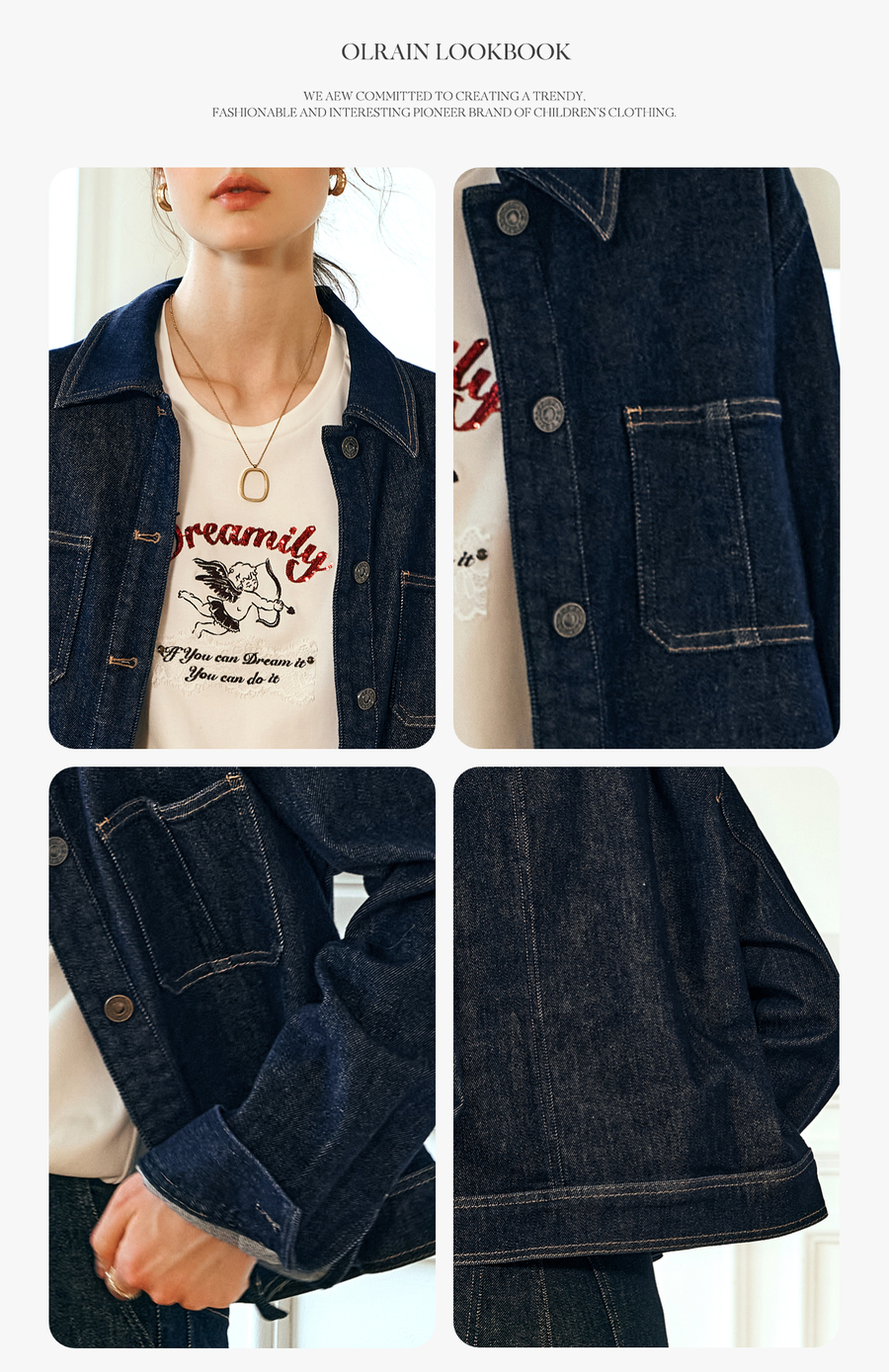 OLrain欧芮儿深蓝色牛仔外套女春季2025年新款小个子港风复古上衣