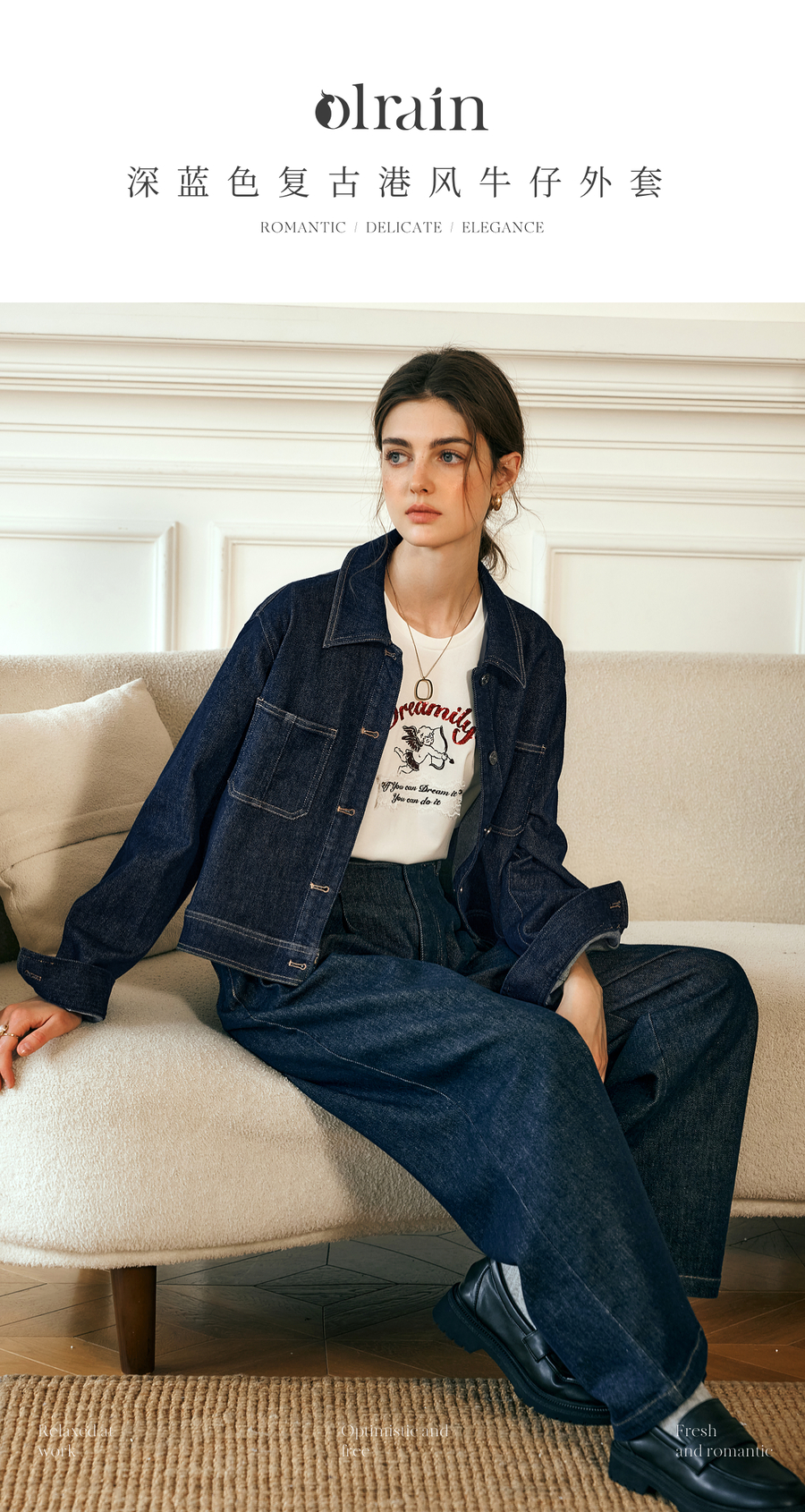 - “精致”是欧芮儿olrain品牌文化的核心,欧芮儿认为,精致的女人,不但要外在动人,更要内在迷人,内外兼修,有魅力、有气质、有内涵,自信而不自傲,优雅而不矫揉,自有万种风情而不轻浮,更不故作矜持。