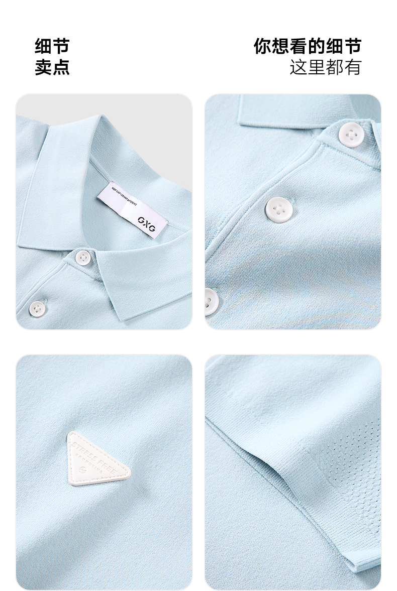 GXG男装 灰蓝色经典皮标POLO衫通勤时尚短袖上衣 2025春季热卖