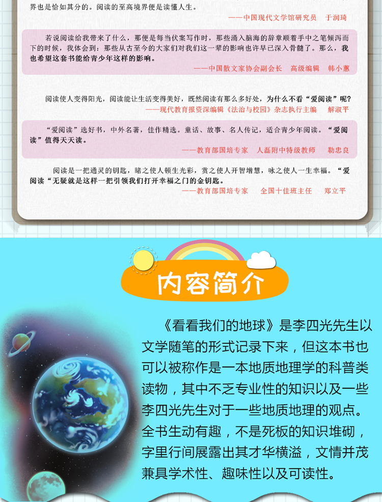 好的阅读就如一缕阳光。当我们打开这套书,就会发现和阳光撞了个满怀,你会发现它表达了我们对过往生活的梳理和怀恋。《爱阅读》从内容到形式,从文字到语言,都焕发着纯粹的理想的光辉,将成为你受益一生的人生财富。