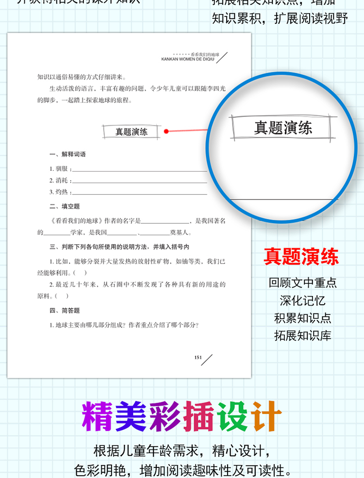在书的结尾处,有的还设置了“阅读总结”“阅读训练”栏目,集合了“名家心得”“读者感悟”“真题演练”等栏目,这些内容是对整本书内容的回溯,读者也可以检验自己的阅读效果。