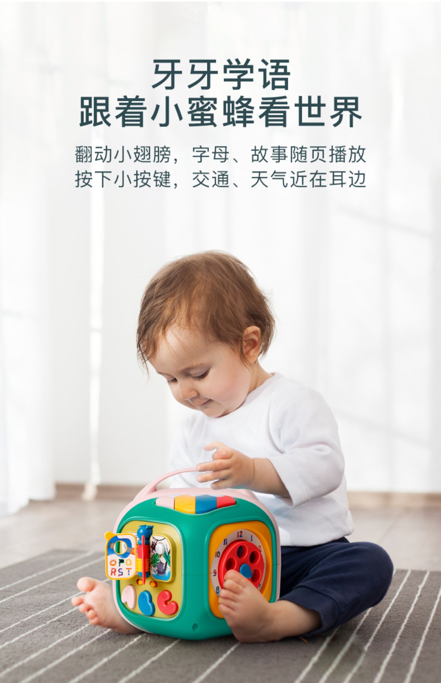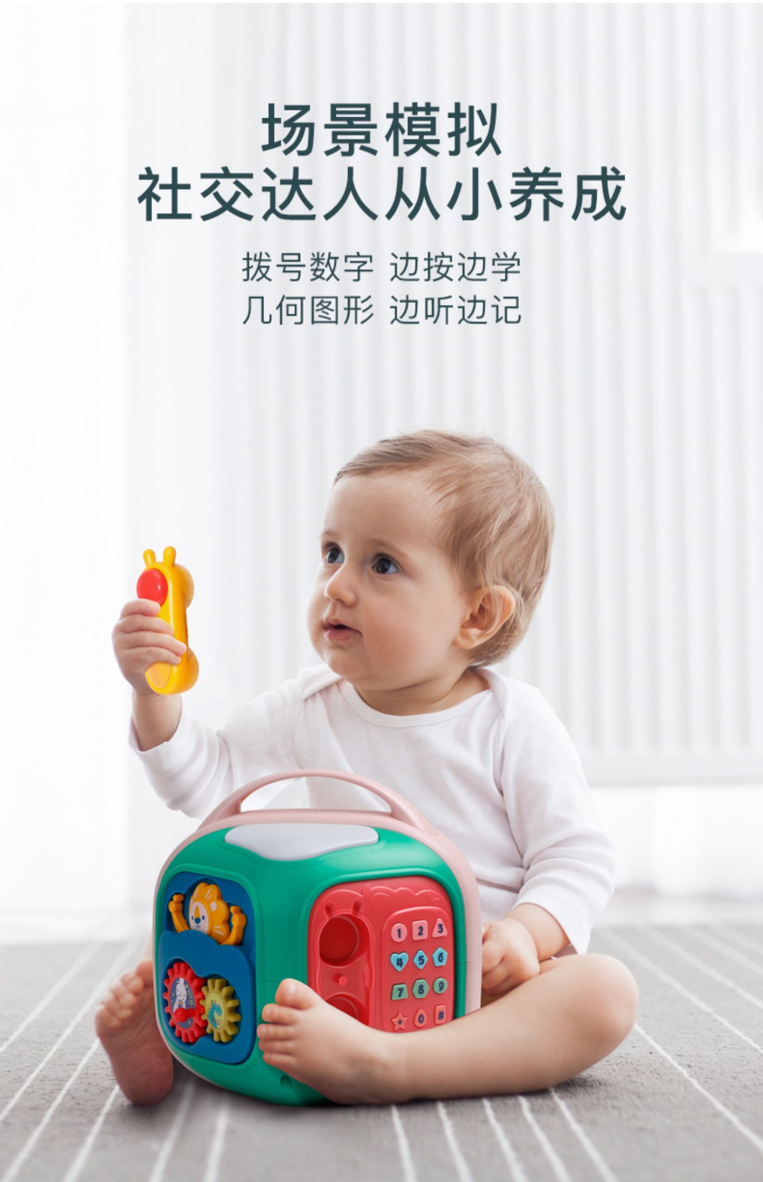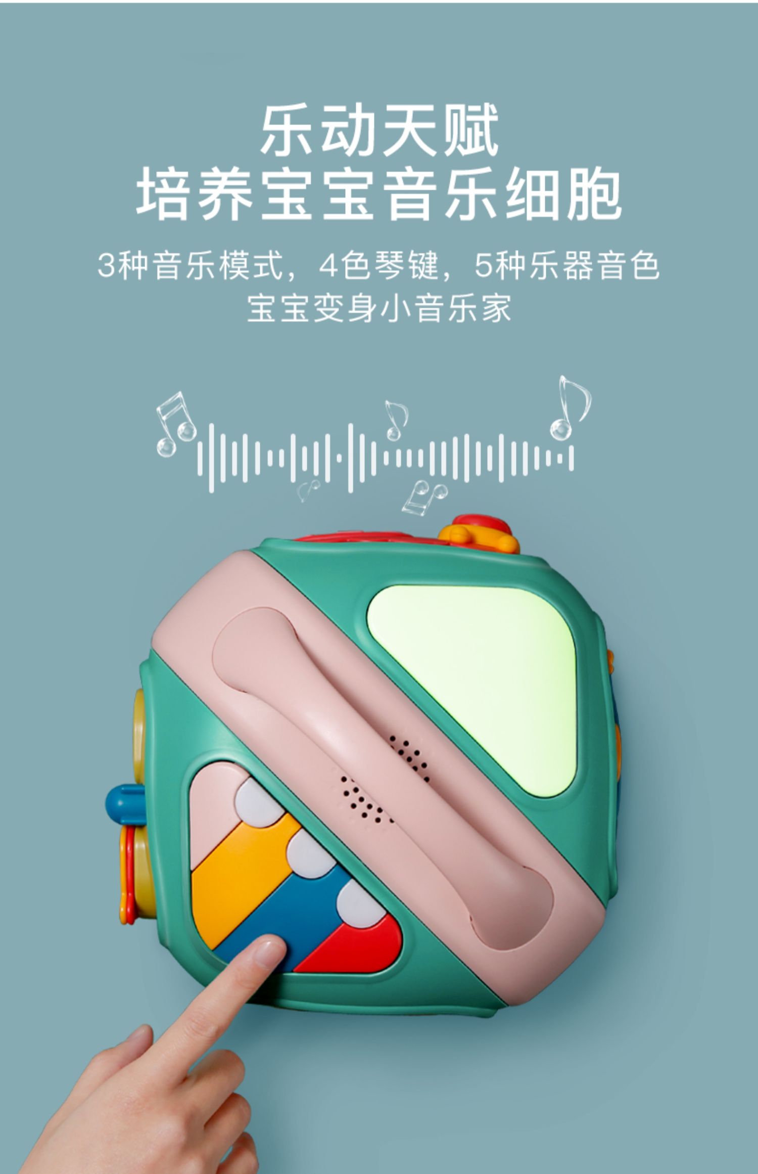 贝恩施六面体益智玩具 婴儿手拍鼓一岁宝宝音乐早教拍拍鼓0-1-2岁